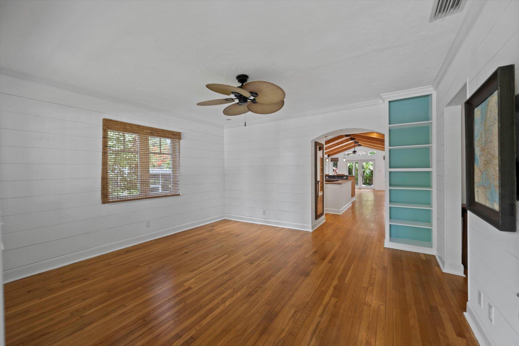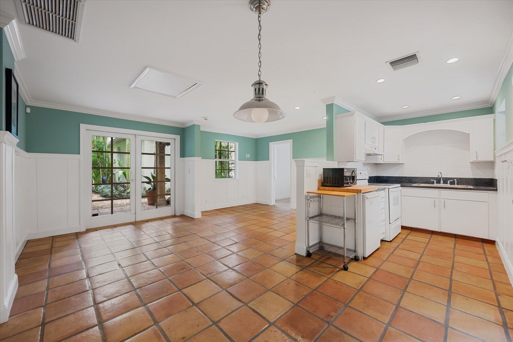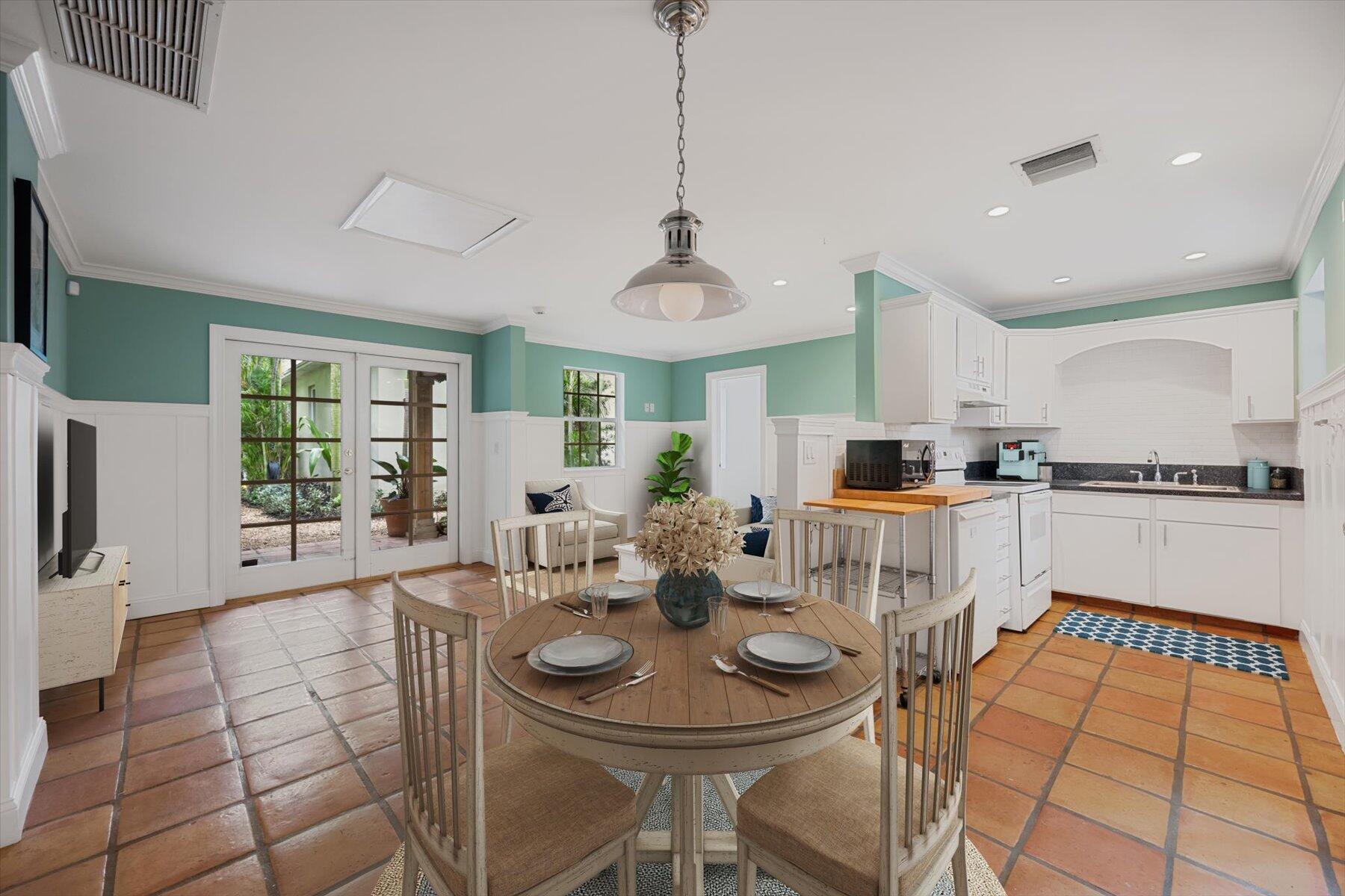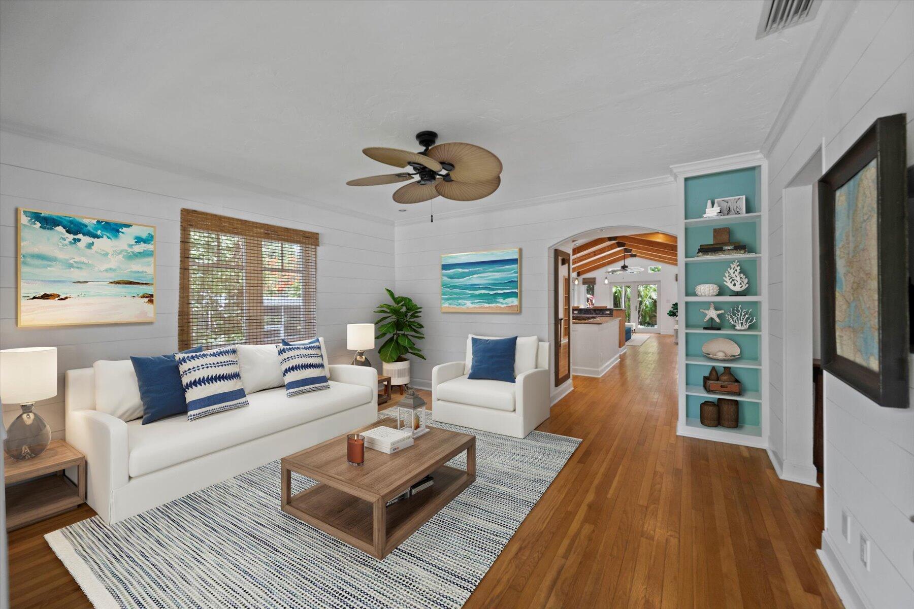 Welcome to this charming home at 729 Biscayne Drive in West Palm Beach's historic Flamingo Park district, where warmth and character greet you at every turn. This exceptional property features an open floor plan that seamlessly connects the kitchen and great room. Vaulted ceilings with grand wood beams and metal brackets create a striking focal point. The kitchen is a chef's dream, boasting custom wood cabinetry with glass doors, stone countertops, a gas stovetop, stainless steel appliances, and ample space for entertaining.
