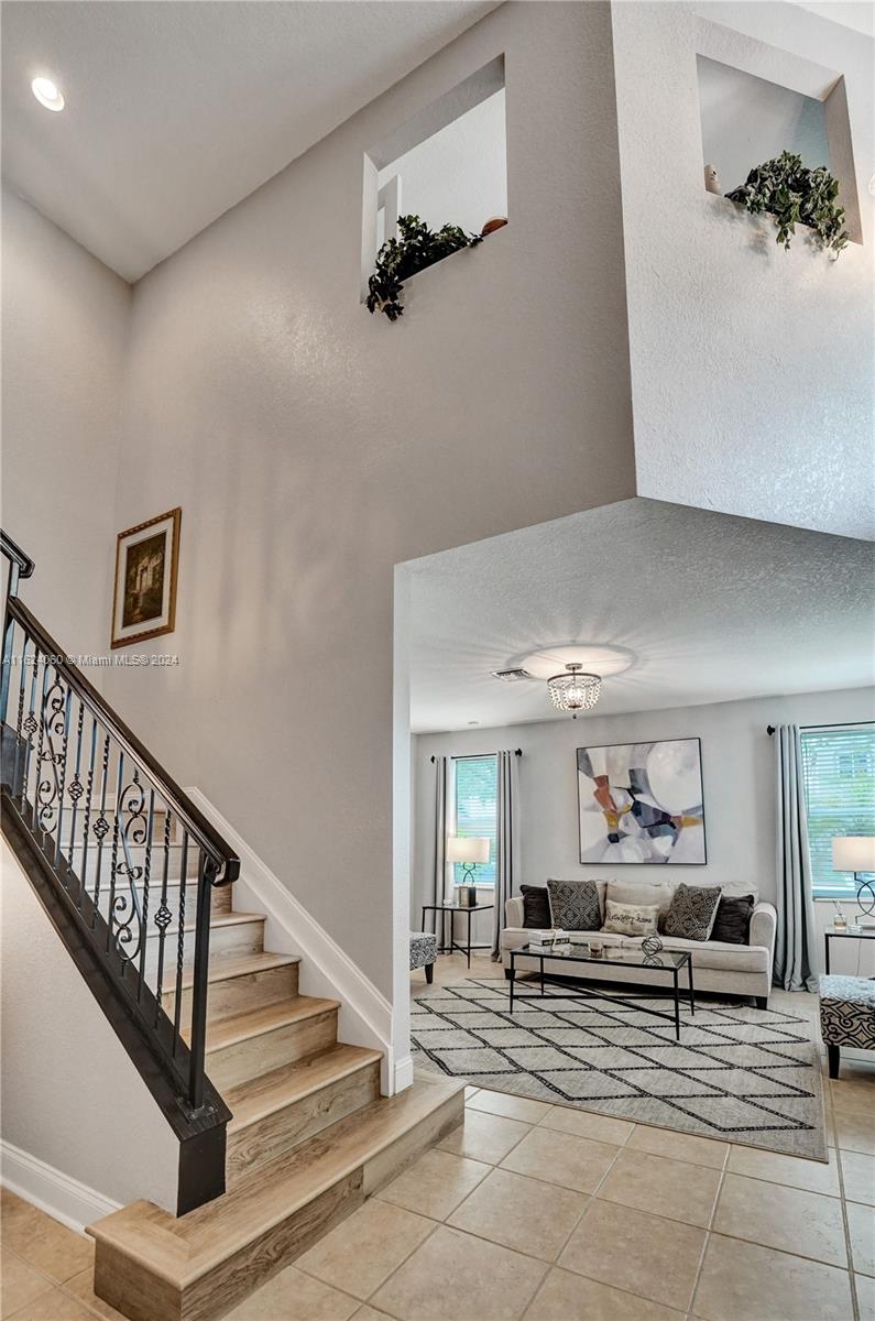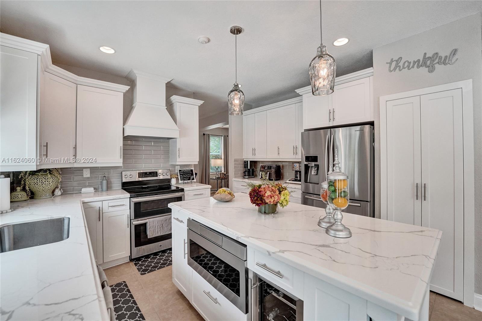 Introducing the home of your dreams in the gated community of The Ridges at Weston Pond. Located in a quiet cul-de-sac on a corner lot, this modern 5 BD / 3 BA home offers a 2-car garage, impact windows & a newer roof (2020). Enjoy neutral tone ceramic flooring on the first level, luxury vinyl wood flooring on the stairs/hallways & new railings for the stairs. The renovated kitchen features shaker white cabinets, quartz countertops, a center island, a wine fridge, stainless steel appliances, & a double oven. First floor features an office with a bathroom. Primary bedroom includes an office with white french doors. Additional features include a re-designed laundry room with LG washer/dryer, screened pool & patio area with a diamond brite resurfaced chlorine pool. Light fixures will remain.