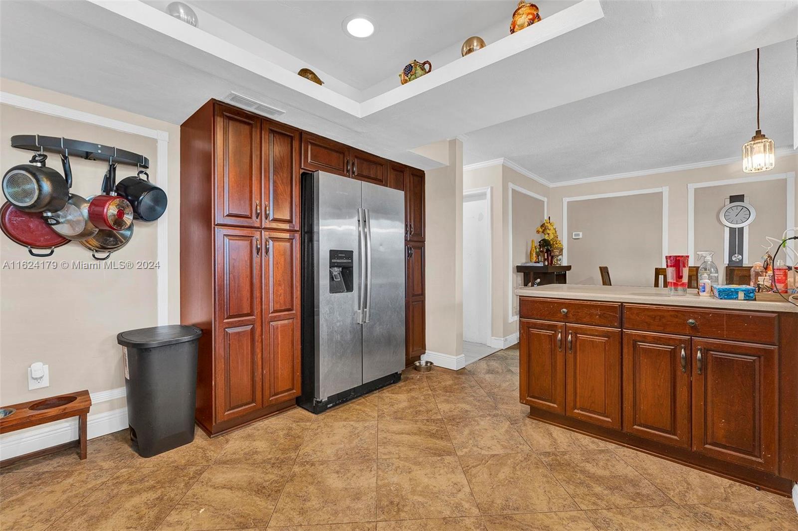 Nestled in a peaceful neighborhood without HOA restrictions this property offers your creativity several layout possibilities for your living, dining & office areas. The kitchen connects to the patio via large sliding pass thru windows, perfect for entertaining your friends & family. It features a gas stove, so useful during power outages! The back yard is your private oasis with the pool & vegetation providing a tropical feeling. The pool is large enough for you to get some laps completed for exercise and it has the safety provided by a child proof gate. Upgraded baseboards & crown molding thru out the house. In the garage you’ll find not only the washer & dryer but also the convenience of a utility sink. At buyers’ request, furniture may be included in the sale.