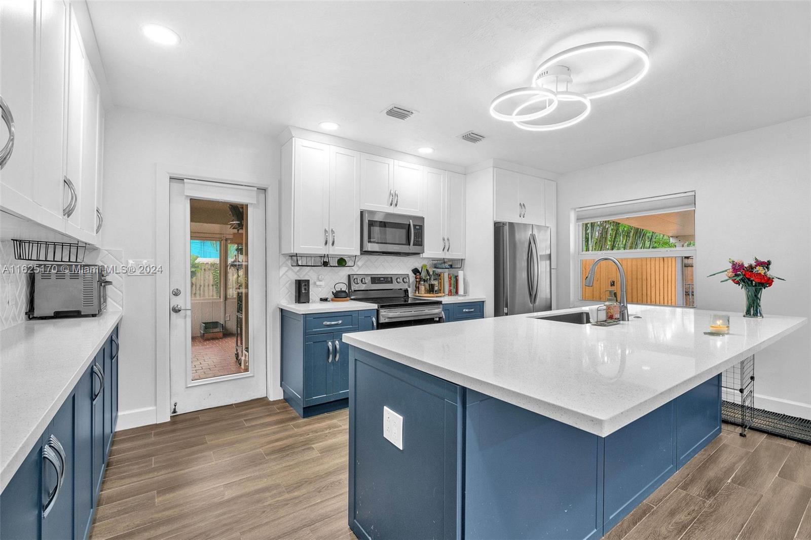 Welcome to this modern and warm 2/1 fully renovated home situated on an oversized lot in the desirable Hibiscus Park neighborhood of East Fort Lauderdale. Located 15mins from downtown, the beach, major highways, and the FLL airport. This home offers convenience and a prime location! This charming home completed its’ full renovation in 2023. Starting with a screen enclosed front porch,open floor plan with new kitchen appliances; new A/C, electrical panel. Wait, there’s more! Tankless water heater, new washer and dryer set, ceramic wood-style tile floors, all impact-resistant doors and windows and a new roof installed in 2017. Enjoy the spacious front and back yards, surrounded by beautiful trees. The sale also includes architectural plans to expand an additional 500 sqft of living space.