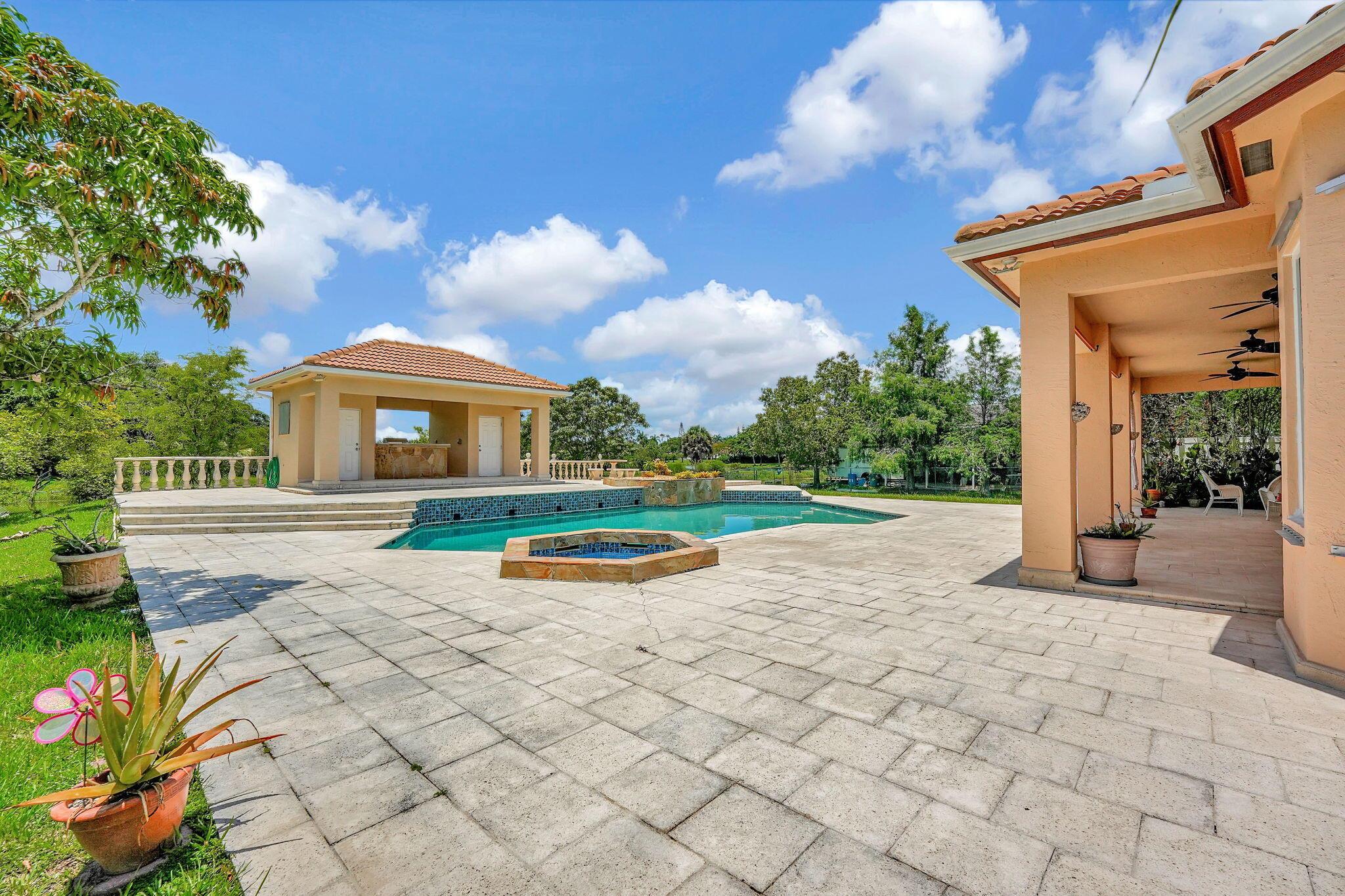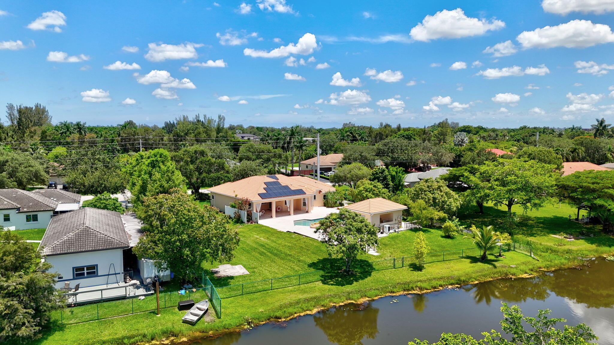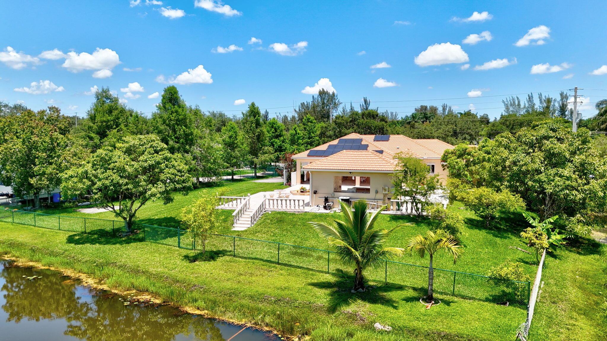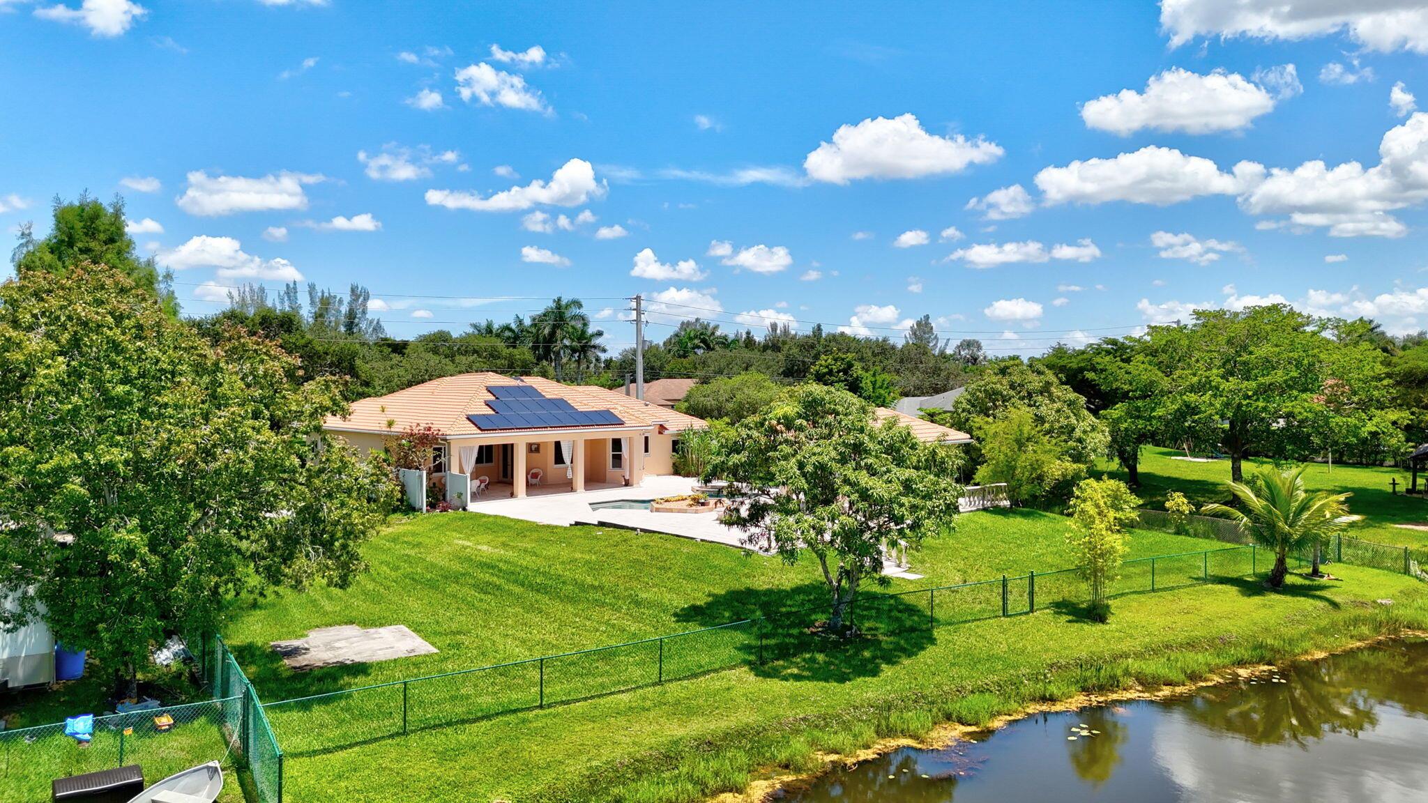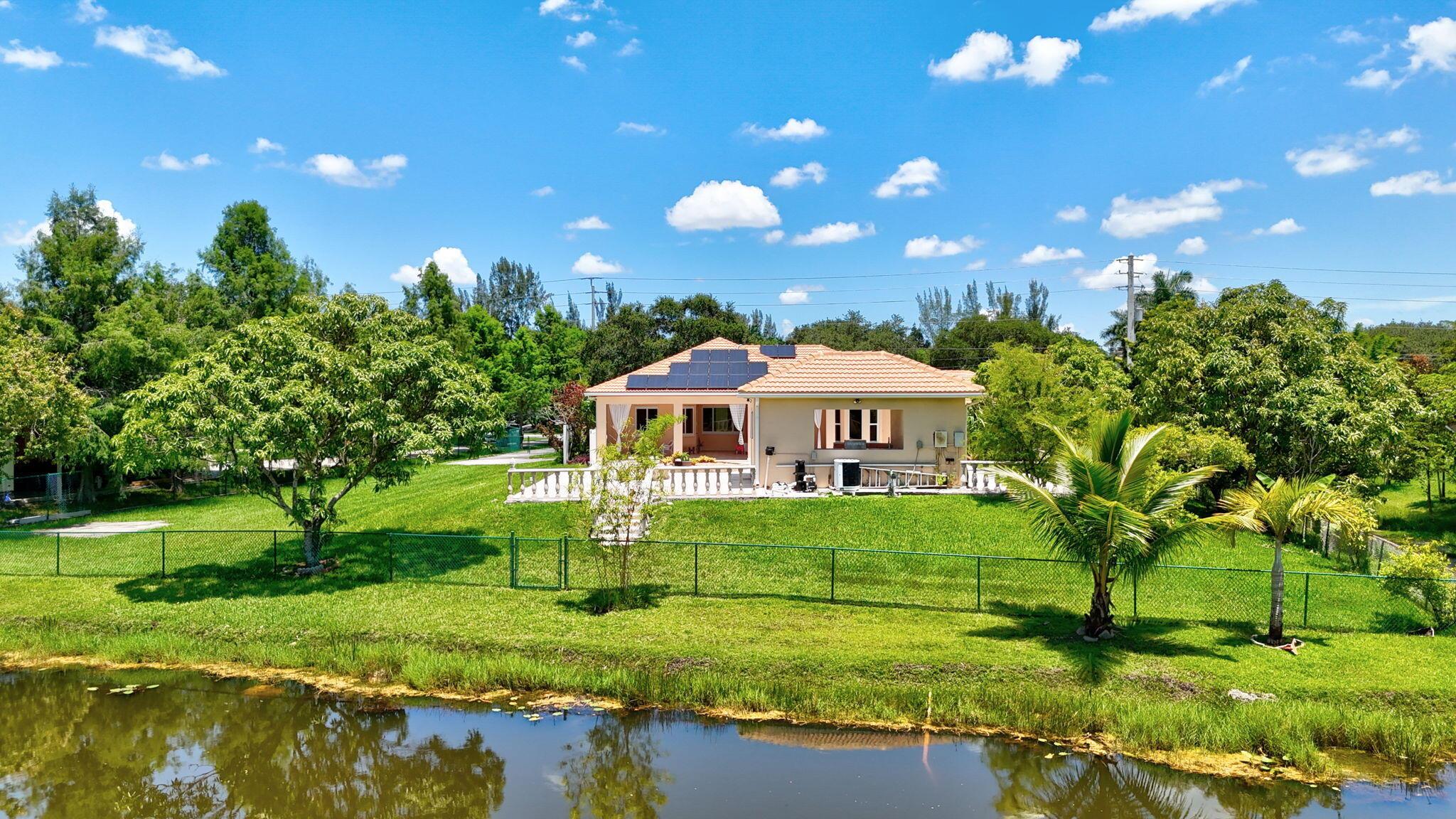 Welcome to this stunning Southwest Ranches home! Featuring 4 bedrooms and 3 baths, this residence boasts an expansive floor plan with lakefront access and views, solar panels, and a 3-car garage. The kitchen is equipped with granite countertops, and the entire property is tiled throughout.The spacious backyard, complete with a pool, creates a perfect oasis. The outdoor area includes a cabana with running water, its own bathroom, an outdoor shower, and a barbecue, ideal for entertaining friends and family. This home is situated on over an acre of land, providing ample space and privacy.