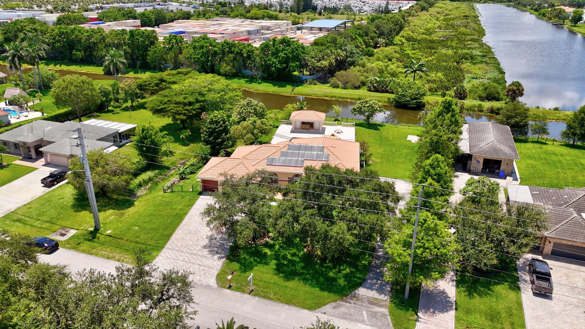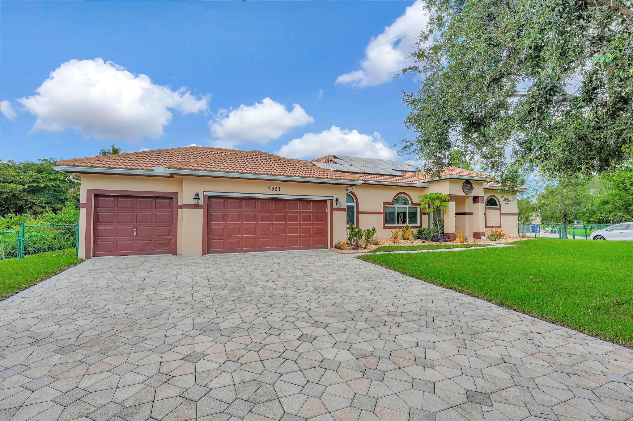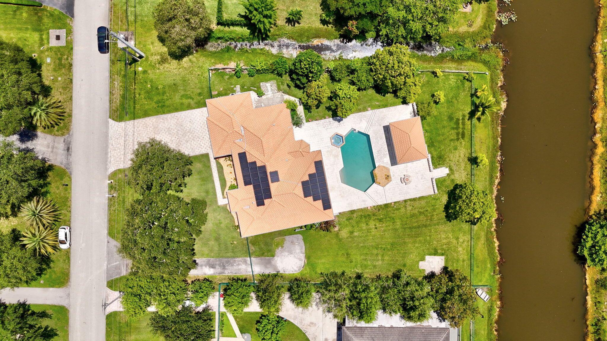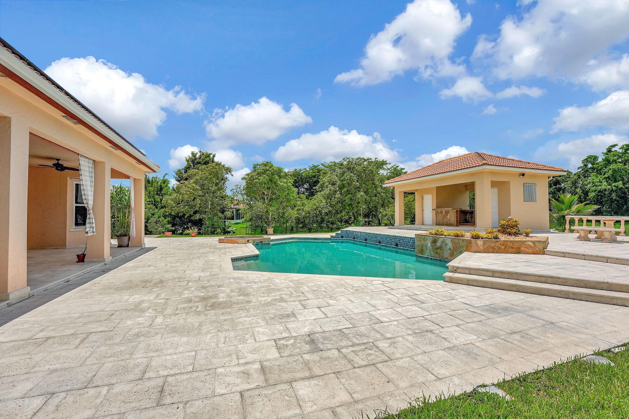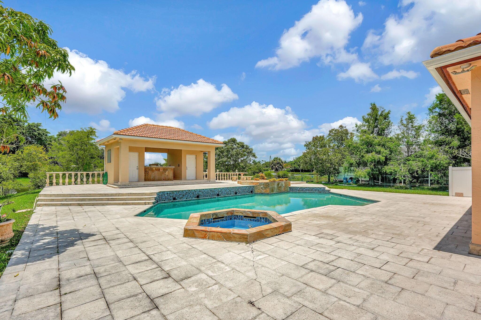 Welcome to this stunning Southwest Ranches home! Featuring 4 bedrooms and 3 baths, this residence boasts an expansive floor plan with lakefront access and views, solar panels, and a 3-car garage. The kitchen is equipped with granite countertops, and the entire property is tiled throughout.The spacious backyard, complete with a pool, creates a perfect oasis. The outdoor area includes a cabana with running water, its own bathroom, an outdoor shower, and a barbecue, ideal for entertaining friends and family. This home is situated on over an acre of land, providing ample space and privacy.
