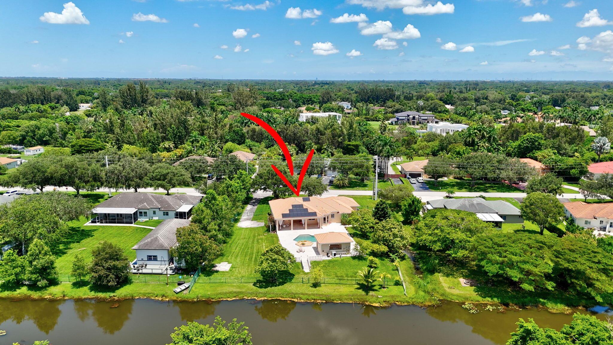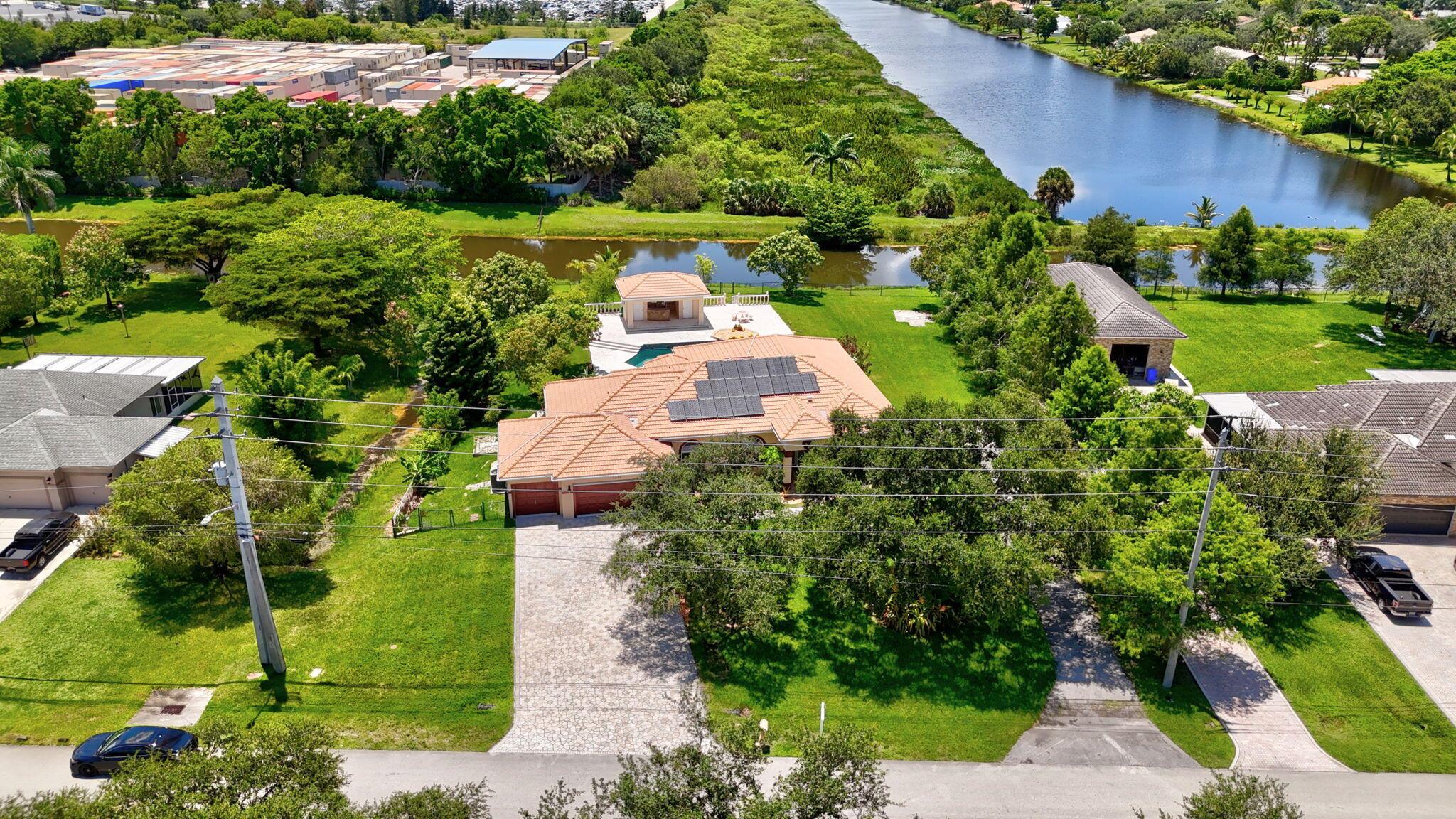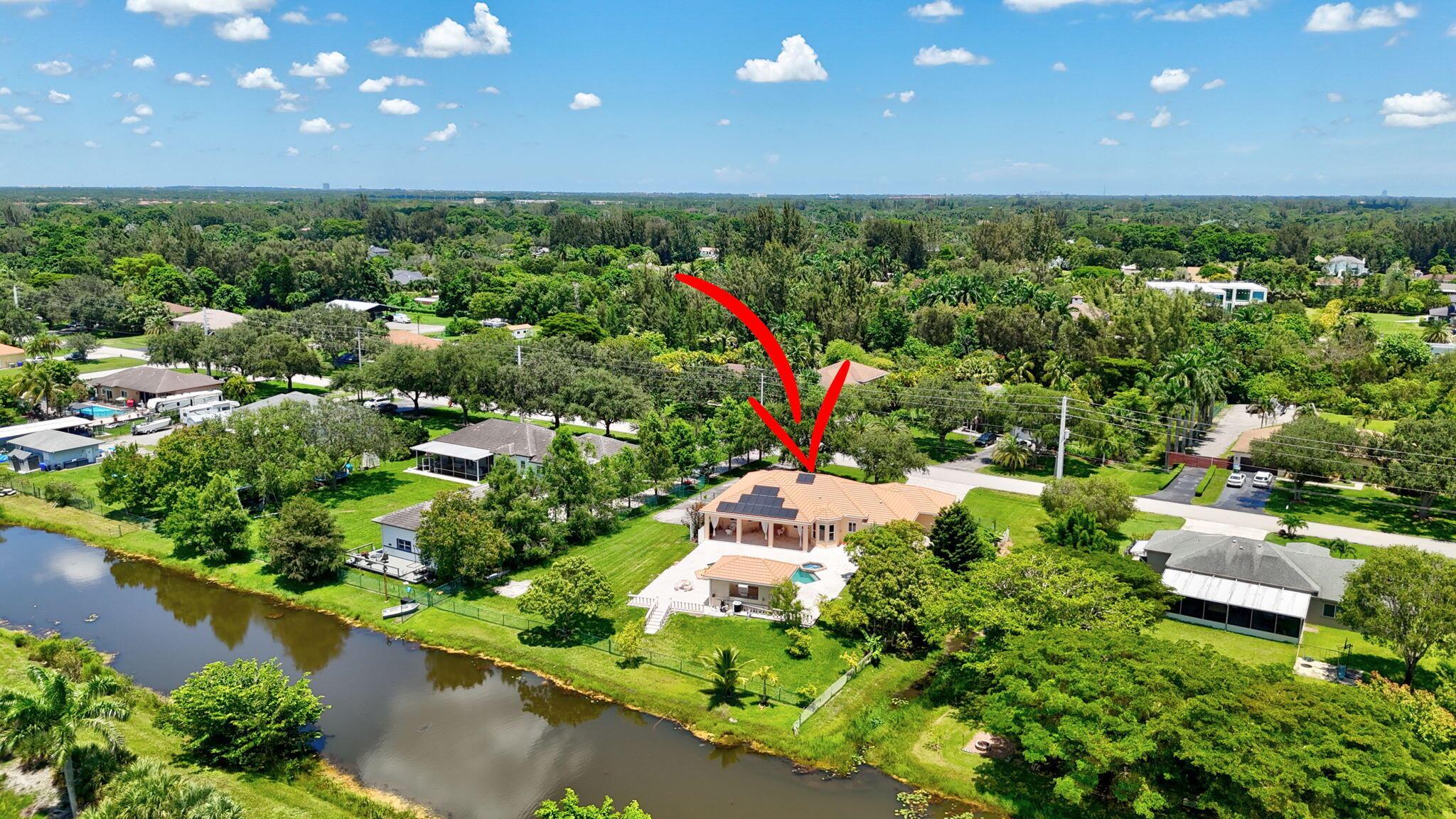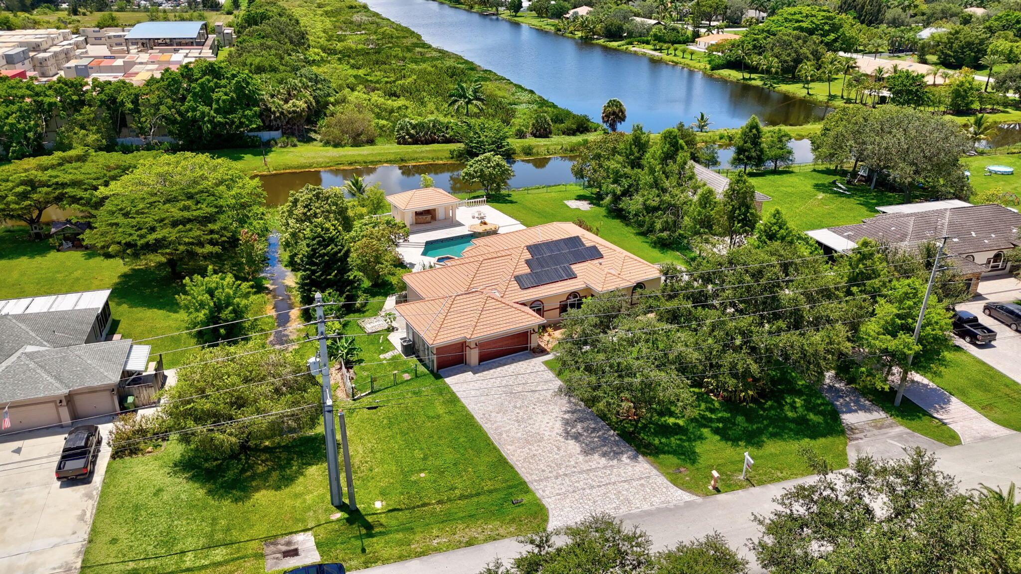 Welcome to this stunning Southwest Ranches home! Featuring 4 bedrooms and 3 baths, this residence boasts an expansive floor plan with lakefront access and views, solar panels, and a 3-car garage. The kitchen is equipped with granite countertops, and the entire property is tiled throughout.The spacious backyard, complete with a pool, creates a perfect oasis. The outdoor area includes a cabana with running water, its own bathroom, an outdoor shower, and a barbecue, ideal for entertaining friends and family. This home is situated on over an acre of land, providing ample space and privacy.