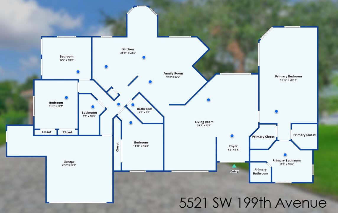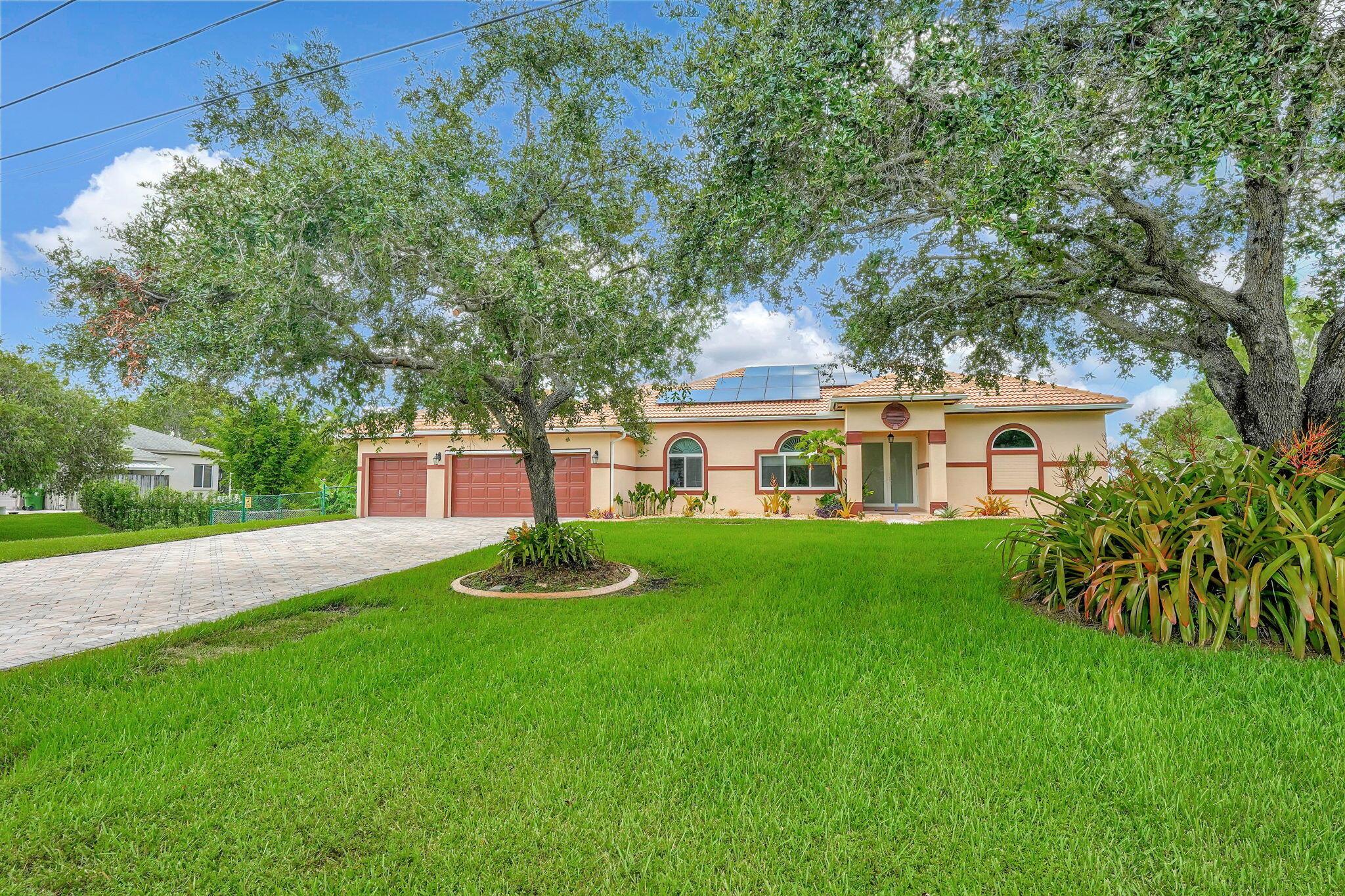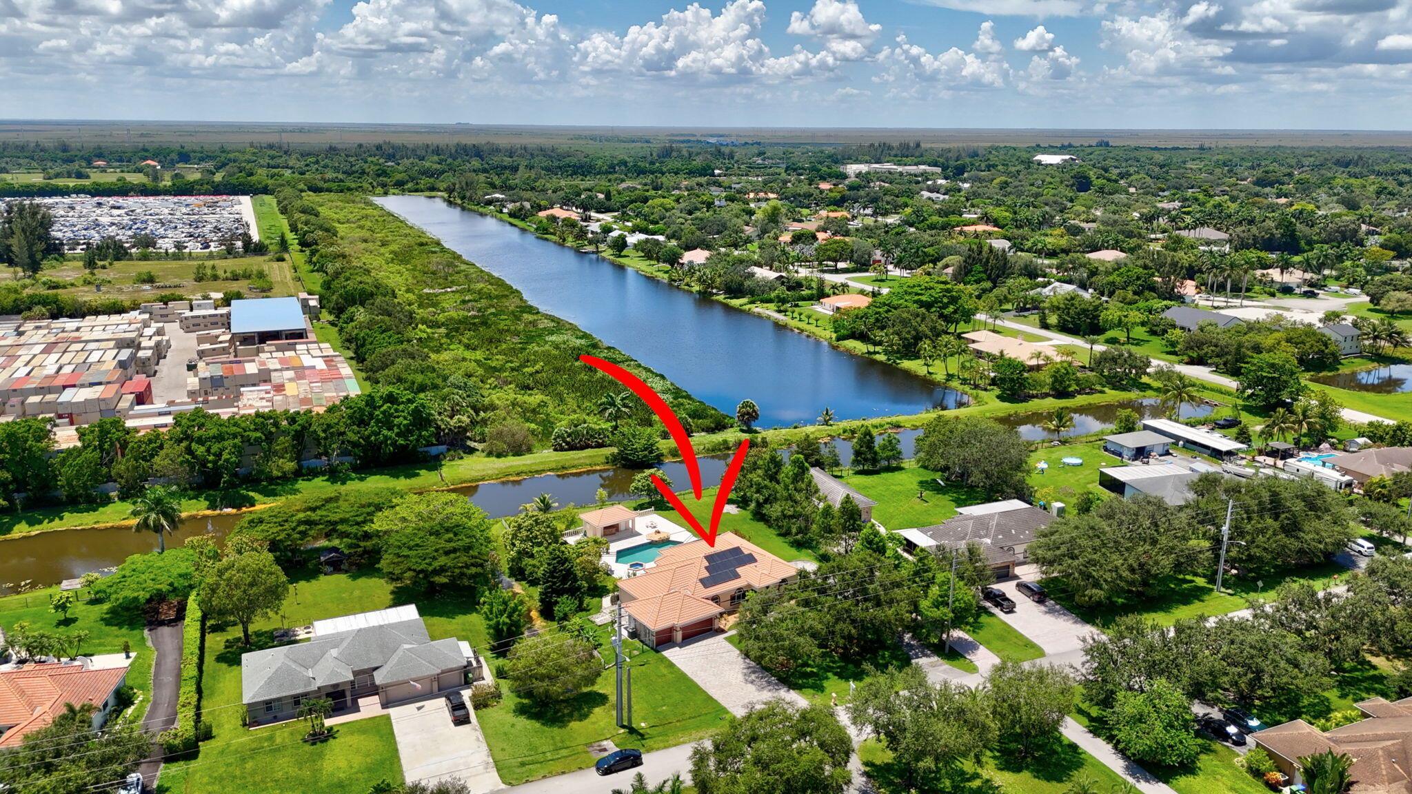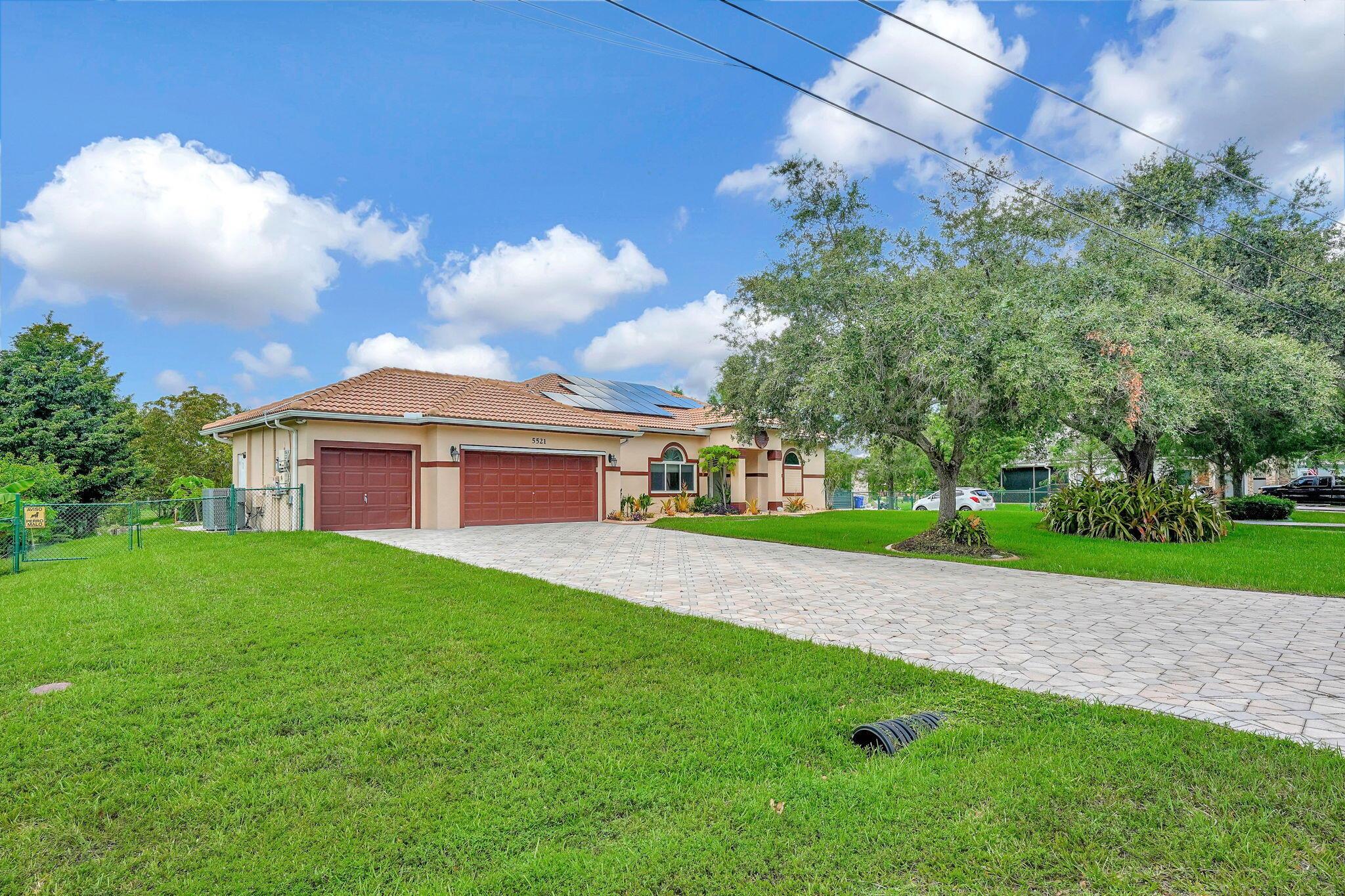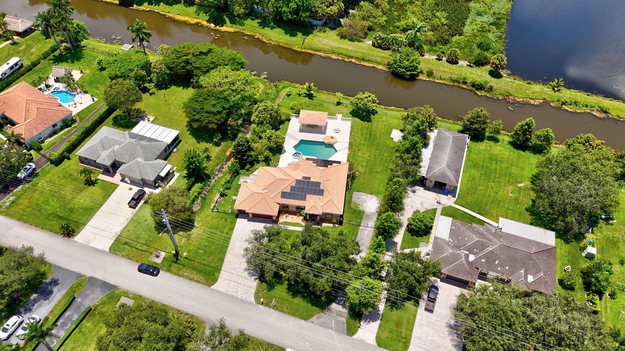 Welcome to this stunning Southwest Ranches home! Featuring 4 bedrooms and 3 baths, this residence boasts an expansive floor plan with lakefront access and views, solar panels, and a 3-car garage. The kitchen is equipped with granite countertops, and the entire property is tiled throughout.The spacious backyard, complete with a pool, creates a perfect oasis. The outdoor area includes a cabana with running water, its own bathroom, an outdoor shower, and a barbecue, ideal for entertaining friends and family. This home is situated on over an acre of land, providing ample space and privacy.