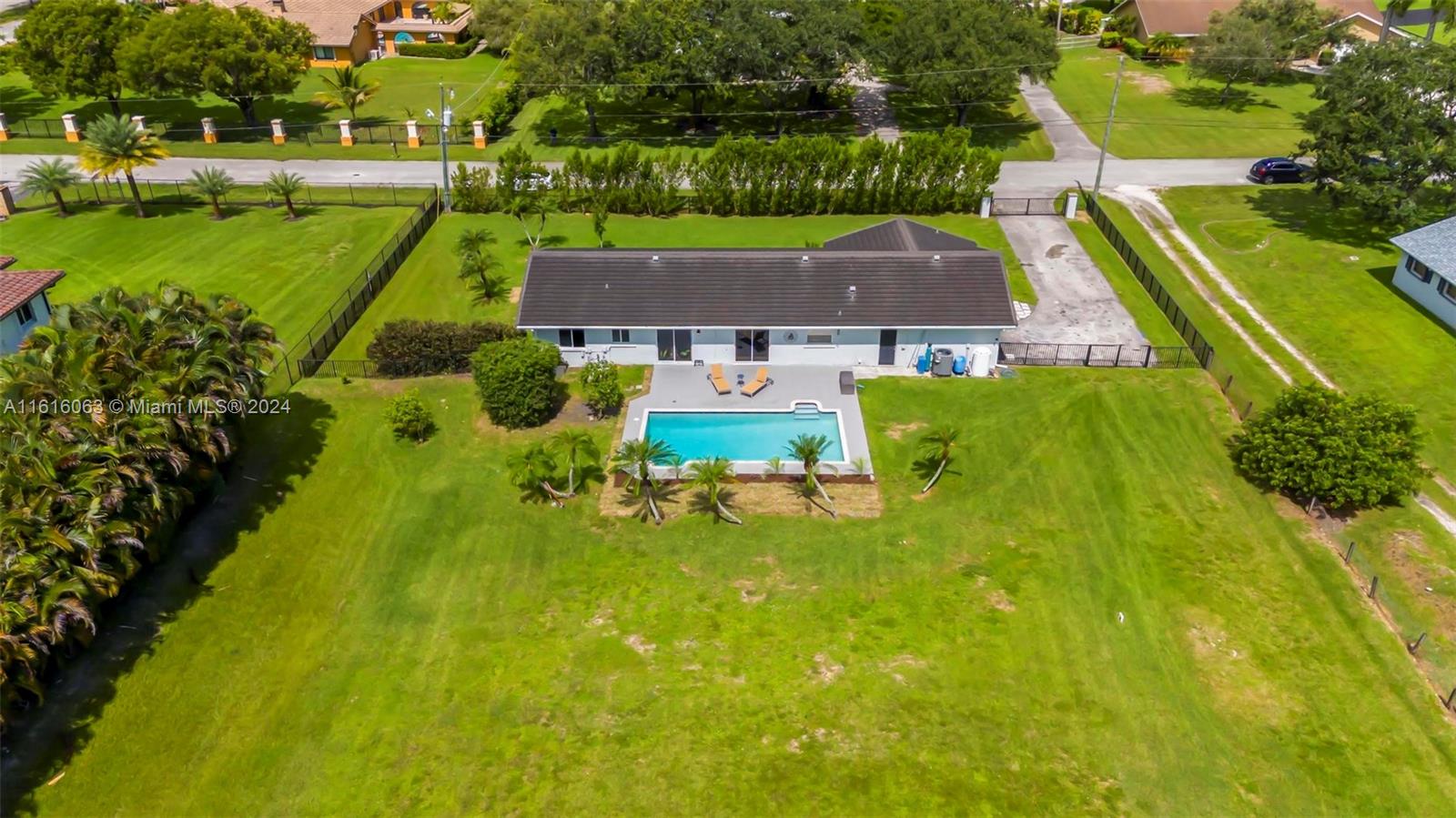 This gorgeous 4 bedroom 3 bath home completely renovated in the coveted Southwest Ranches has tons to offer! This beautiful home has a newer roof installed 5 years ago. This lovely home features spacious open concept living, large remodeled gourmet kitchen with spacious wooden cabinetry and new appliances, large main bedroom with tons of natural light, remodeled tastefully main bathroom with separate soaking tub and shower, 2nd bathroom remodeled with modern finishes, enlarged laundry room, & a large beautiful patio newly tiled with a pool on over an acre private lot fully fenced in and beautifully landscaped yard. Near grade A schools, entertainment, shopping and highways!! This charming property is just waiting for you to call it home! No HOA.