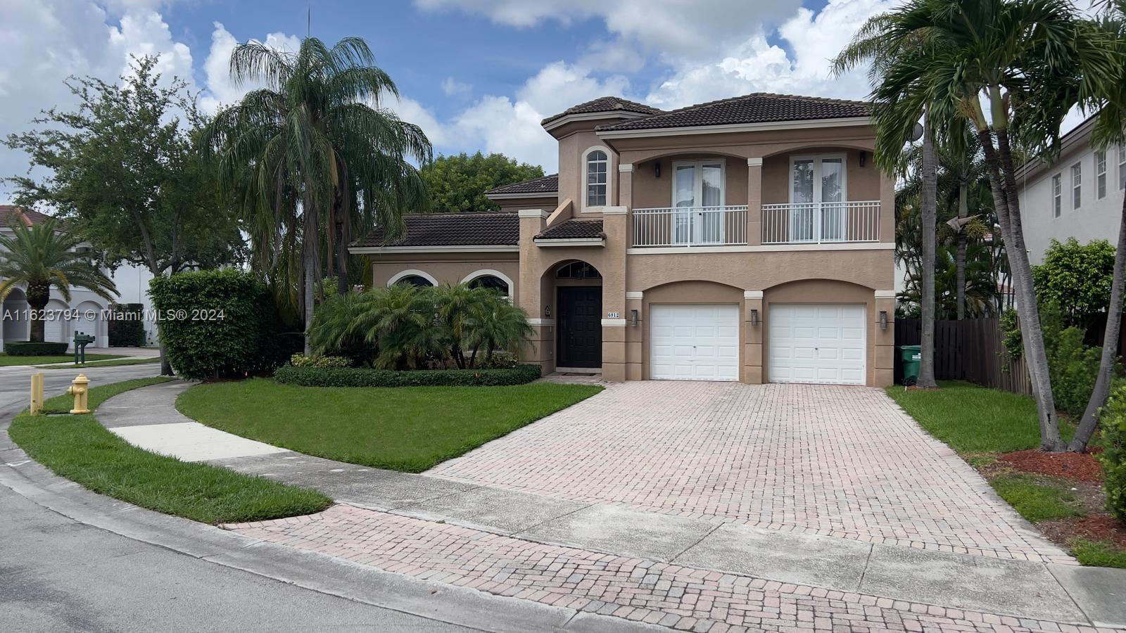 Doral Isles nestled in the dynamic new City of Doral. This home boasts 5 beautiful spacious bedrooms, 4 ½ baths, and multiple multi-use rooms. 3,695 Sq Ft on an oversized 11,643 Sq Ft Lot. A suite is located downstairs adjacent to the large kitchen, dinette nook and family area which spreads out into an open concept design. Also located on the first floor is a separate formal living room with an adjacent private outdoor patio.This home also enjoys a separate dining room. A staircase in decorative antique ironwork and cherry wood stained stair steps, winds itself upward through the center of the home opening up to the second level. Here you find a centralized loft area plus a unique octagon shaped office, 4 additional bedrooms, 3 full bathrooms and a separate laundry room.
