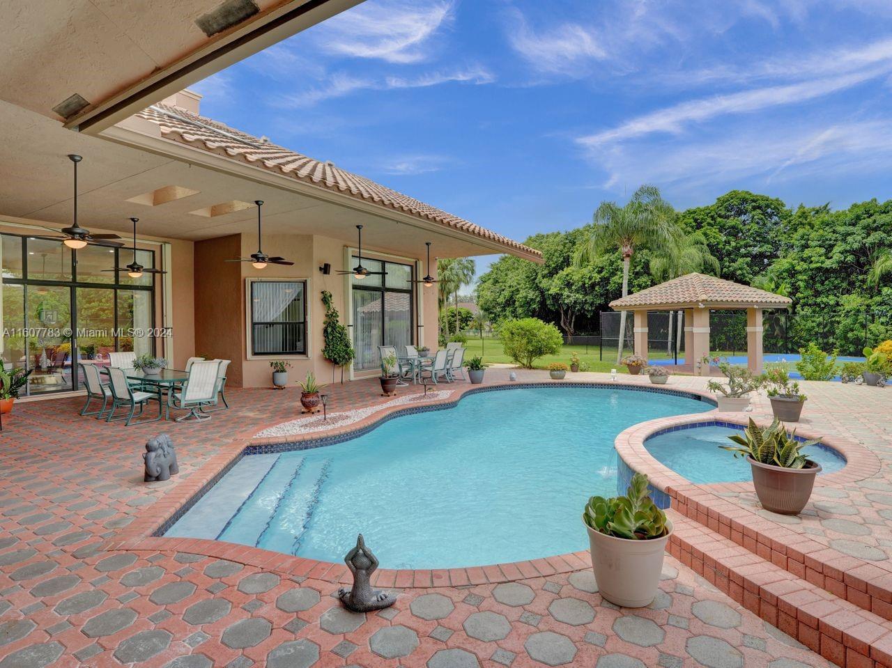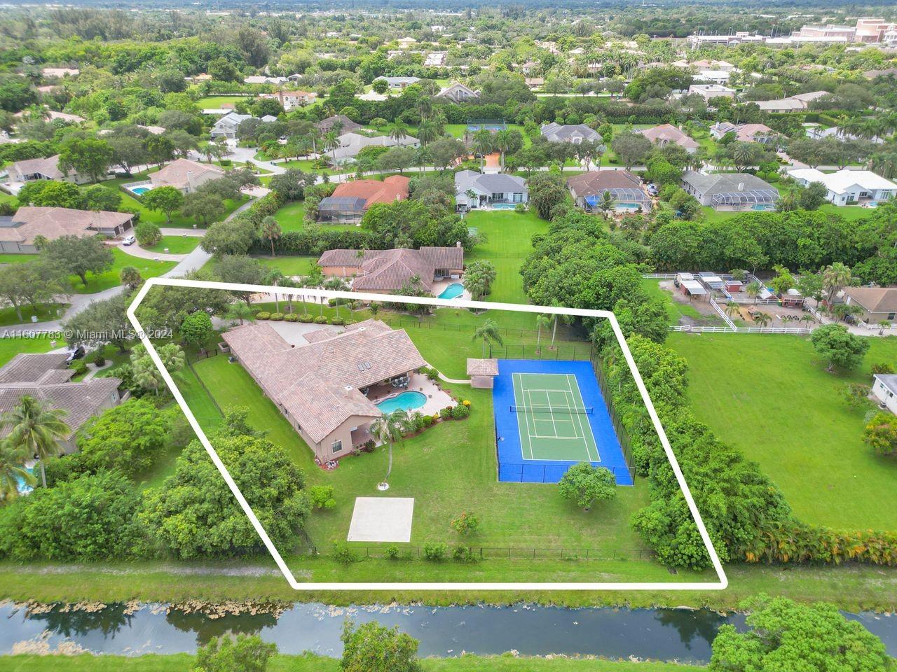 Location, they say is everything!! Do not miss this opportunity to own a piece of South Florida luxury, a paradise you can call home! Situated on a serene cul-de-sac, this expansive home boasts 6 bedrms 4.5bath+exercise room, wet bar & 2 car garage. Recently updated kitchen, Primary Bath & flooring. Enjoy the outdoors on this sprawling 43,337 sq ft lot , huge patio with summer kitchen. With the resort style amenities of an oversized pool and Jacuzzi and a luxurious Tennis and Pickleball Court, you will never need to leave home! Impeccably maintained, nestled in prestigious Plantation Acres, with proximity to shopping, fine dining, major highways and American Heritage School, this home is ready to move in!