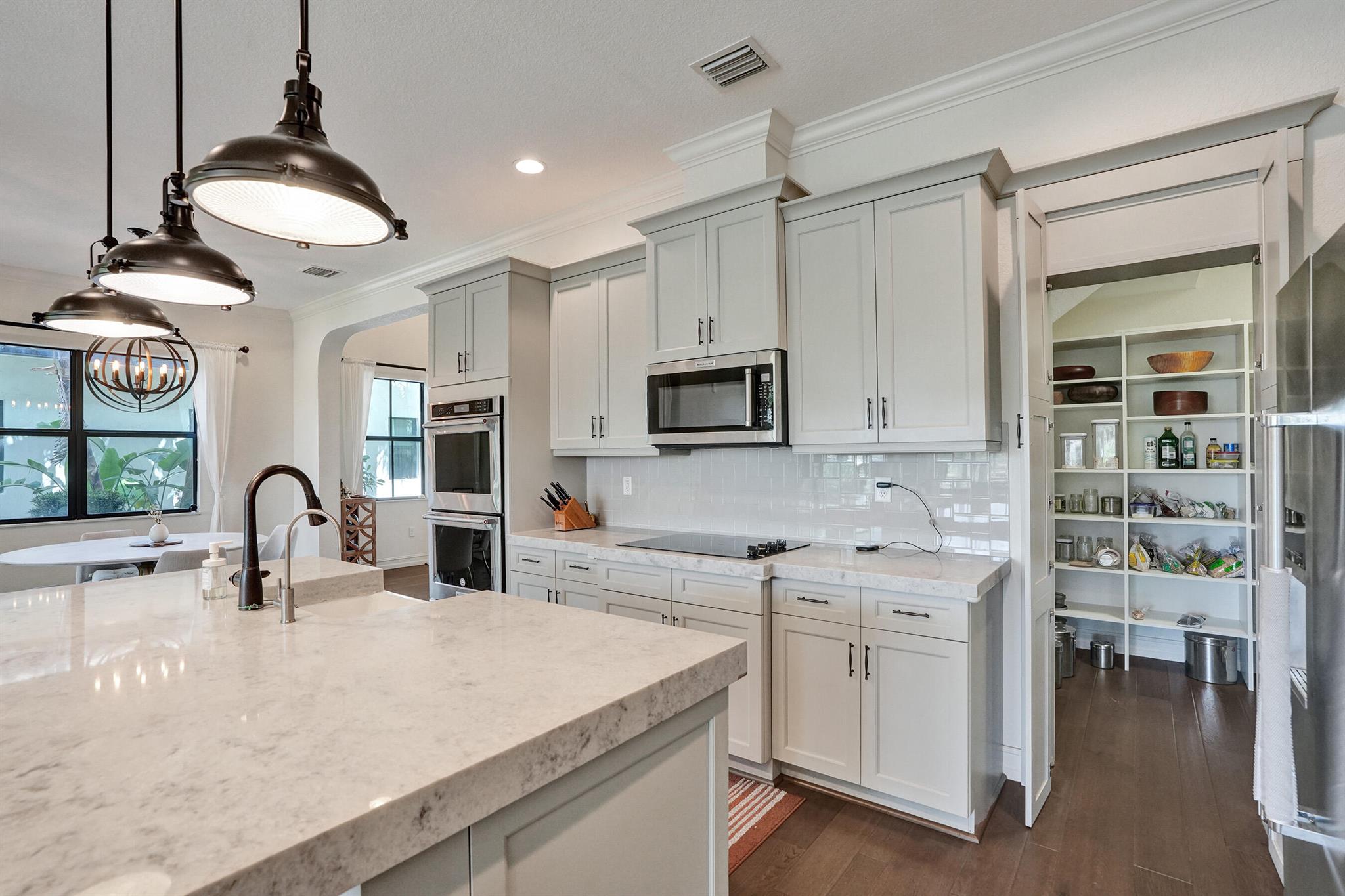 HUGE PRICE IMPROVEMENT Discover luxury living in Pembroke Pines with this immaculate 2018 builder's model home, nestled in a prestigious gated community. Boasting 4 bedrooms and 3 bathrooms, including 1 bedroom and bath on ground level, this residence offers a perfect blend of sophistication and practicality. Step through the impressive entryway into a world of refined elegance. The interior showcases exquisite upgrades and craftsmanship, highlighted by wood tile flooring, sleek quartz countertops, and high-end KitchenAid appliances. The kitchen is a chef's dream, complete with a walk-in butler's pantry for seamless entertaining. The master bedroom beckons with a private terrace offering expansive views of the water and a beautiful garden, providing a serene retreat within your own home.