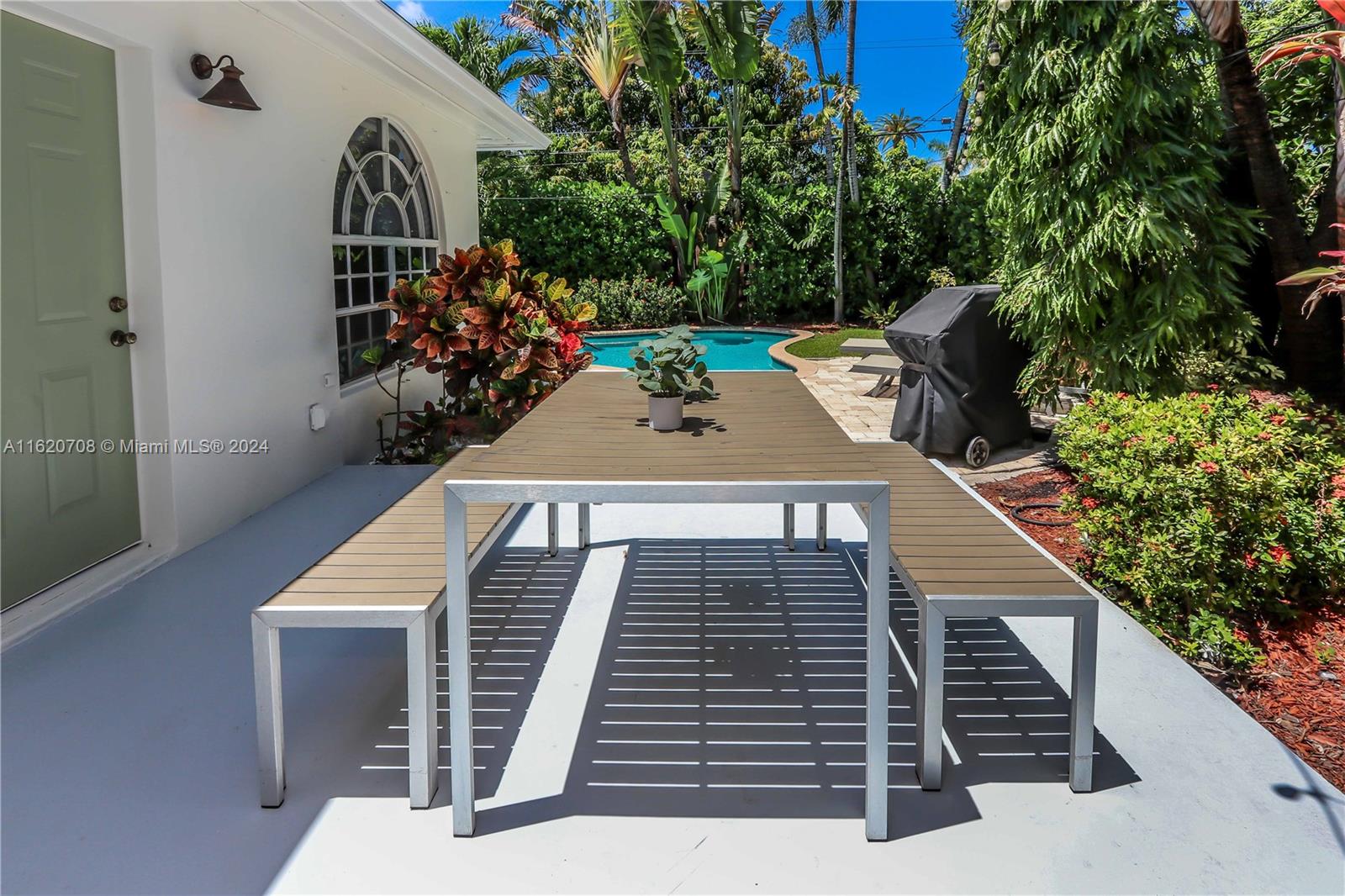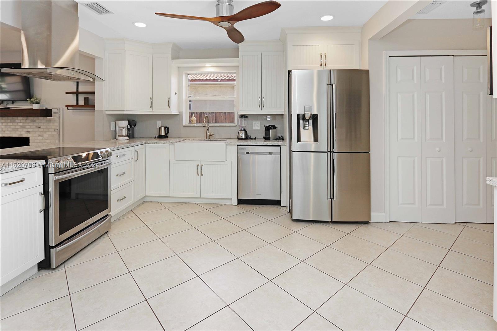 Charming 3 Bedroom, 2 Bath residence located on an idyllic tree lined street. Featuring a circular drive and front walkway paved in Chicago brick. An updated kitchen opening to the living area, features quartz countertops, white cabinetry, farmer sink, subway tiled backsplash, SS appliances & garbage disposal. Tile flooring throughout, marble tile wood burning fireplace, crown molding in the living room, farm doors on two bedrooms adding character to an already delightful home. Tropical landscaping, pavers surround the pool with privacy fence for a quiet retreat with rear access from alleyway. Addt'l efficient tankless water heater. Located within close proximity to Publix, Jefferson/West Lake Parks, Hollywood Beach and a short distance to Fort Lauderdale Airport.