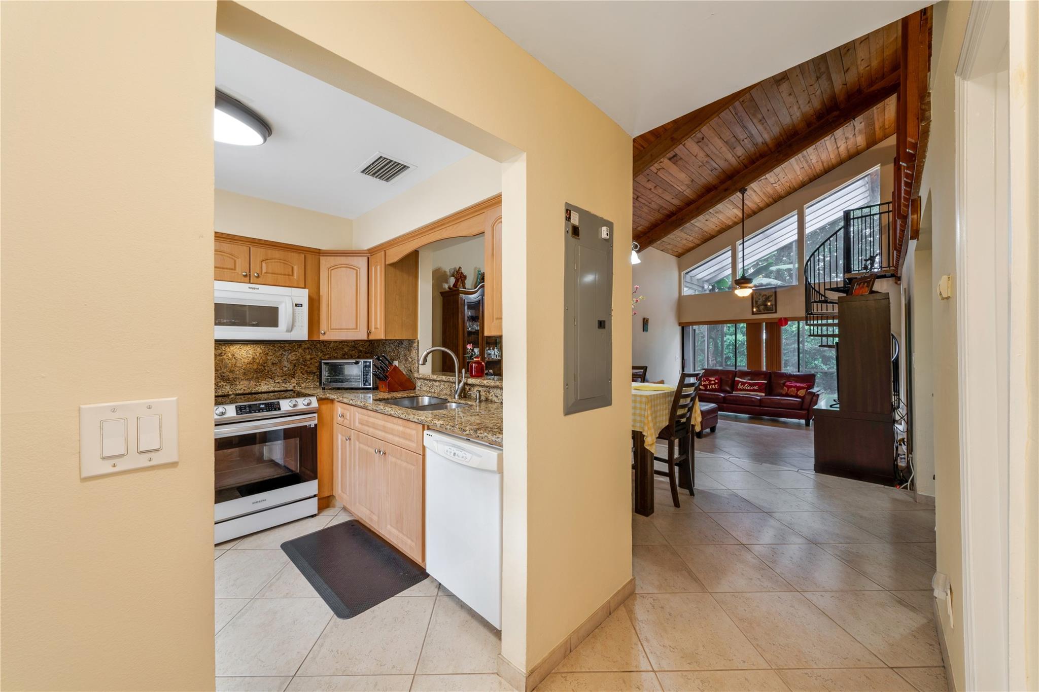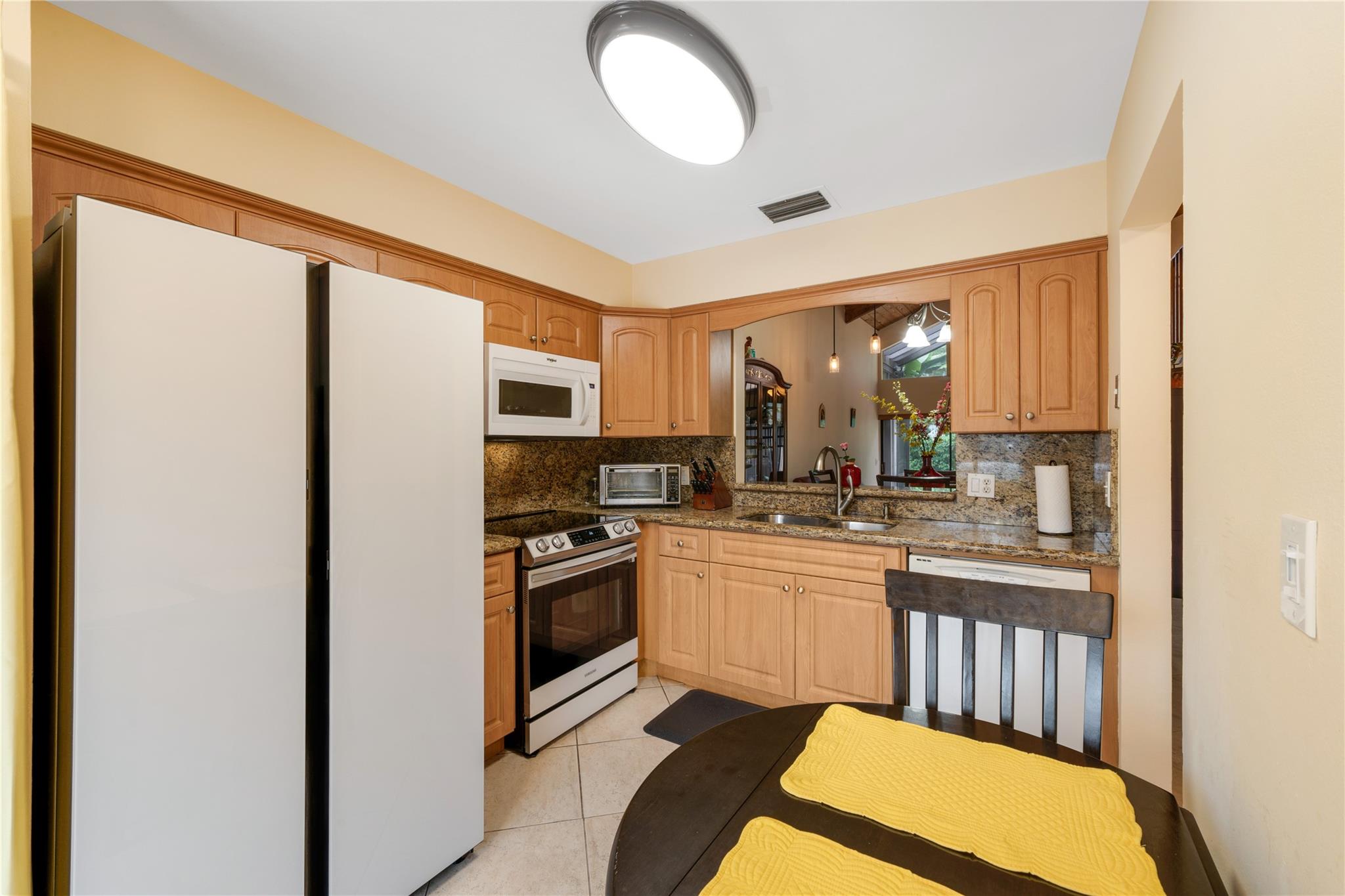 This spacious move-in ready townhome offers an inviting living space with 2 bedrooms and 2 baths. Key features include a large loft area upstairs adds extra living space. Elegant wood laminate flooring throughout the home. A stylish kitchen featuring granite countertops and Newer Samsung appliances and has a designated space for a breakfast nook. Convenient In-unit washer and Dryer. Vaulted Ceilings: High ceilings that enhance the sense of space. A large, tall screened-in patio for outdoor enjoyment. A spacious fenced-in front porch for added privacy and outdoor space. This townhome is perfect for those seeking a comfortable and stylish living environment.