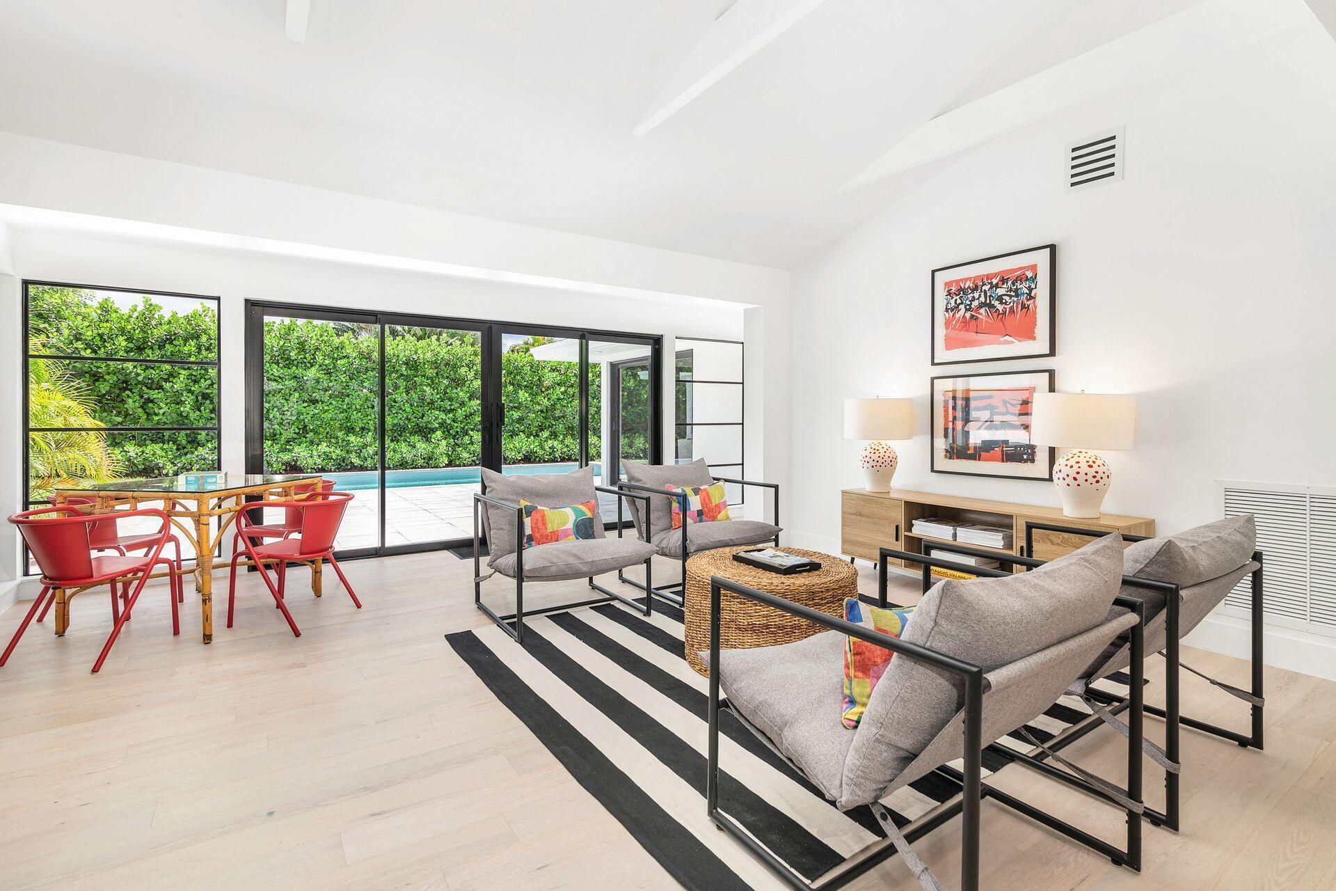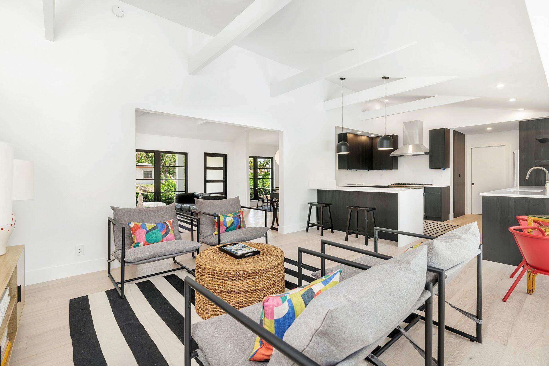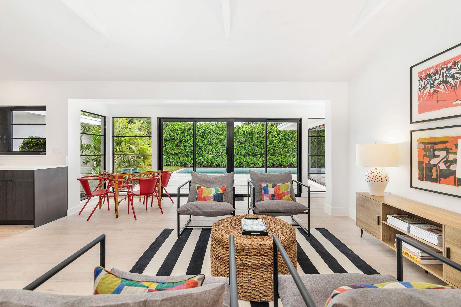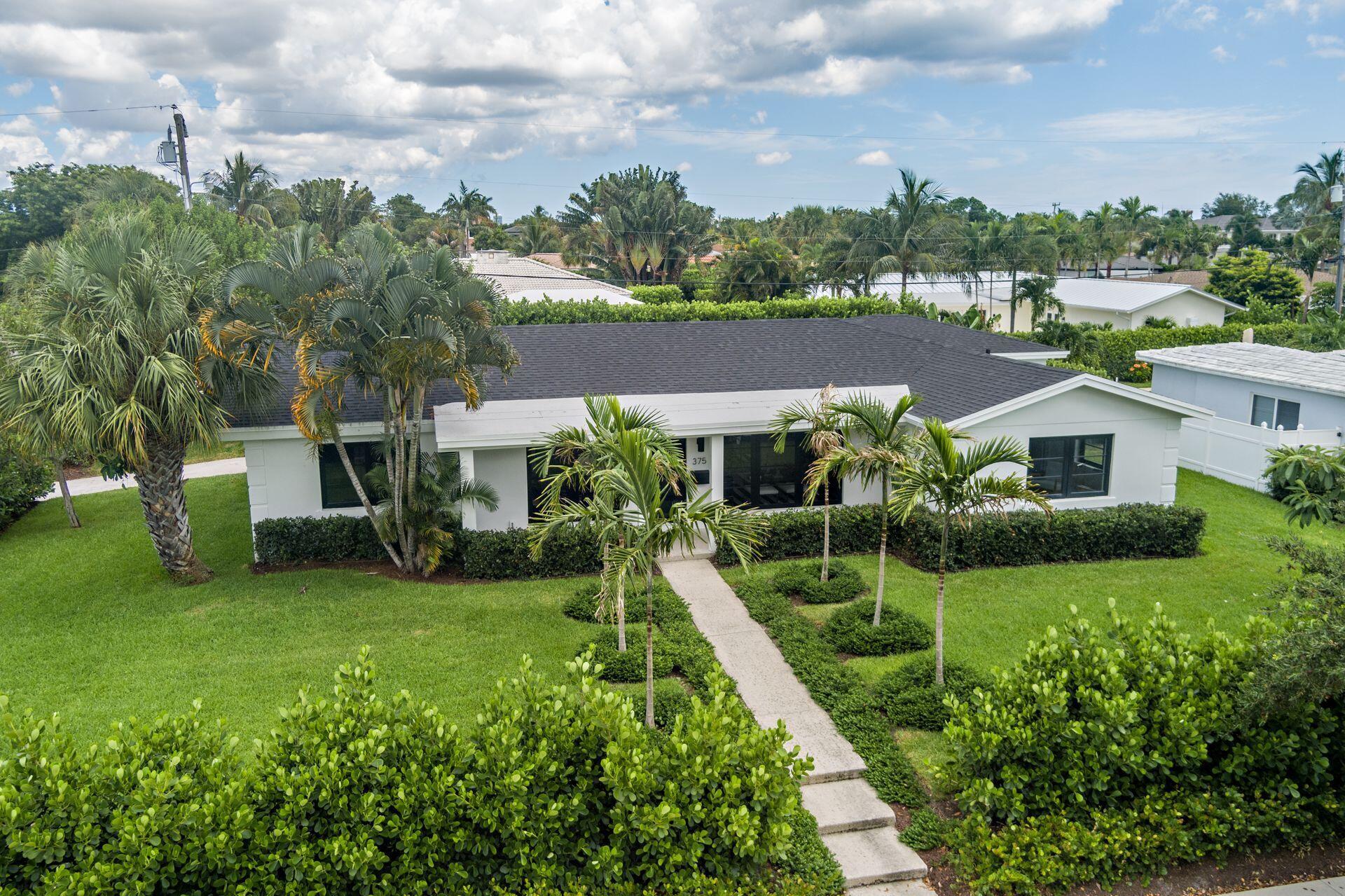 Mid-century Masterpiece. Completely re-designed, re-imagined and enduring a 14 month ground up renovation this modern ''SoSo'' beauty has been taken to the studs and brought back to its intended splendor. Nestled on a huge lot with high elevation and featuring four bedrooms and four full baths, this home has brand new electrical, new plumbing (all the way to street/sewer), a brand new roof, new HVAC and ductwork, new custom impact glass windows and doors and a full house generator. Offering maximum privacy and functionality, 375 Valley Forge consists of three separate wings to the home including 2 private guest rooms with ensuites. The oversized primary suite tucked at the rear wing of the home boasts massive sliders overlooking a brand new pool and decking, vaulted ceilings, excessive