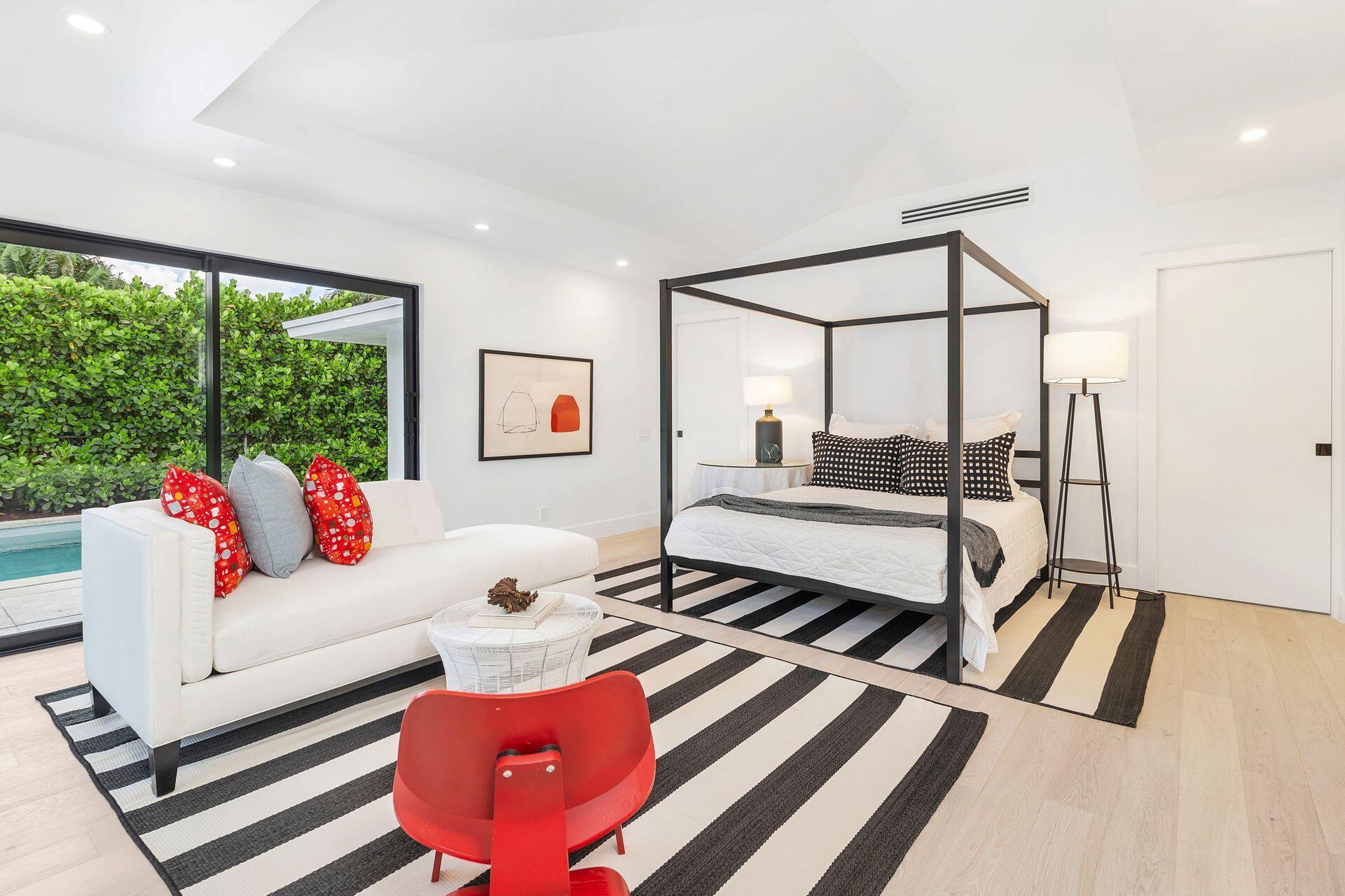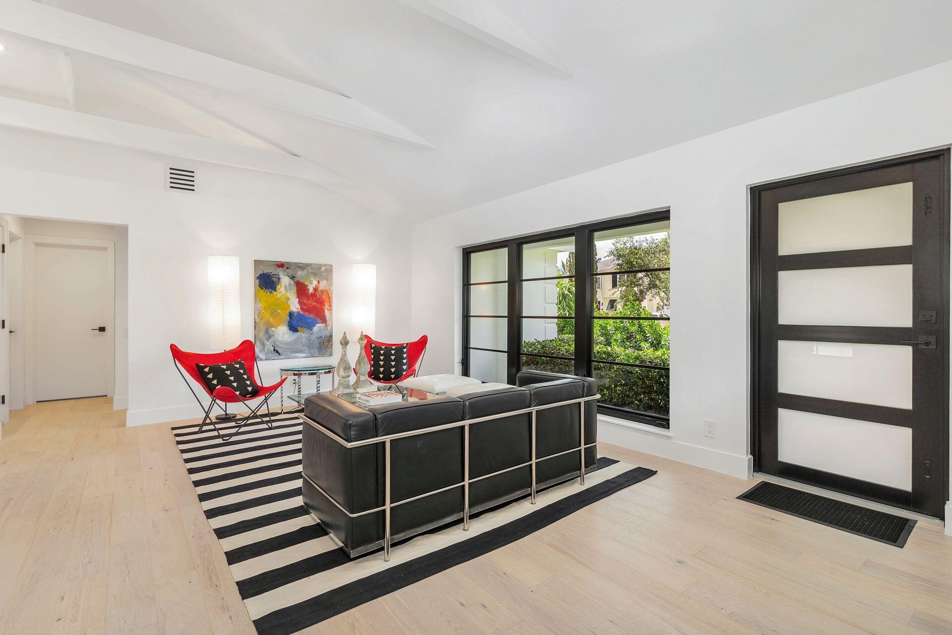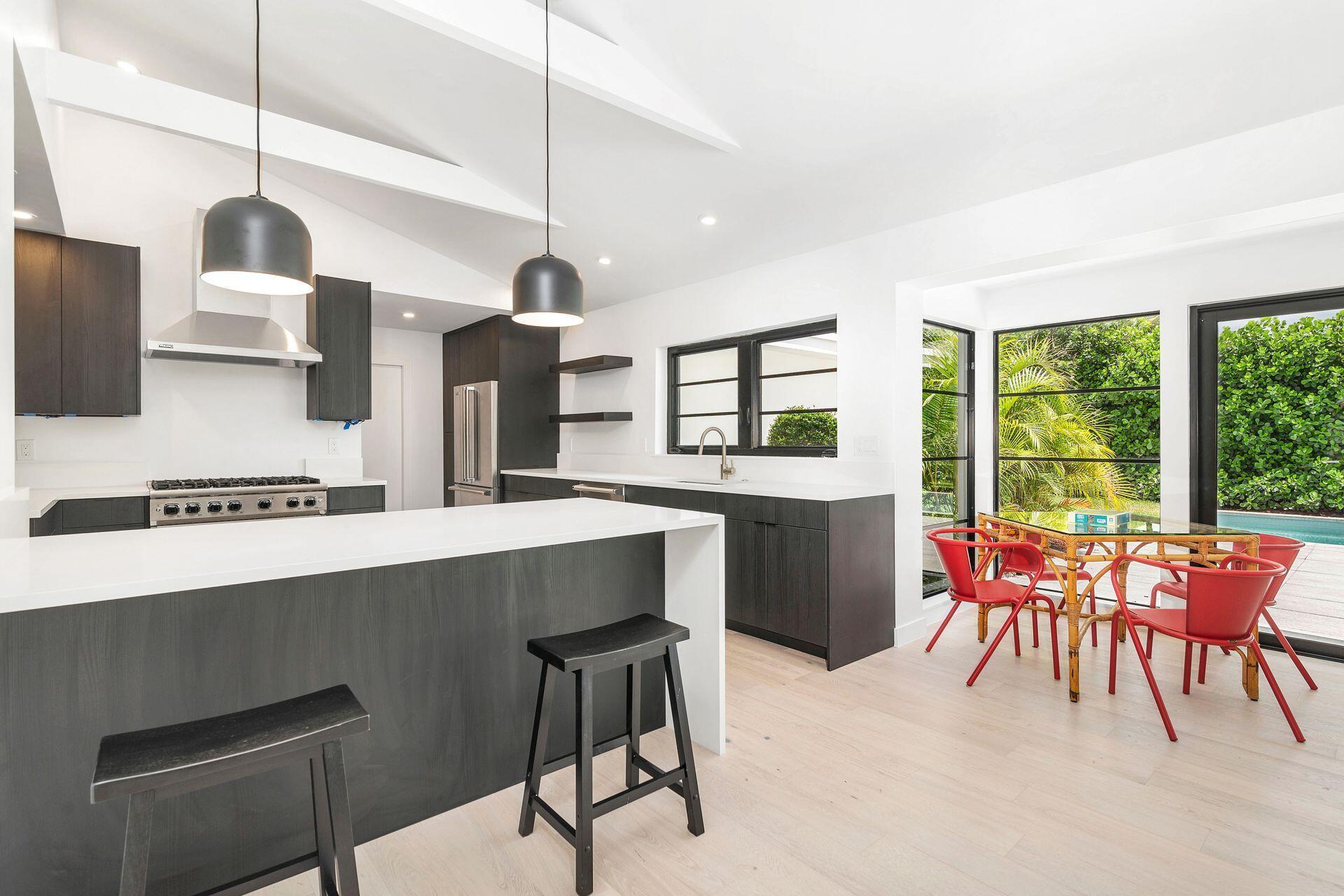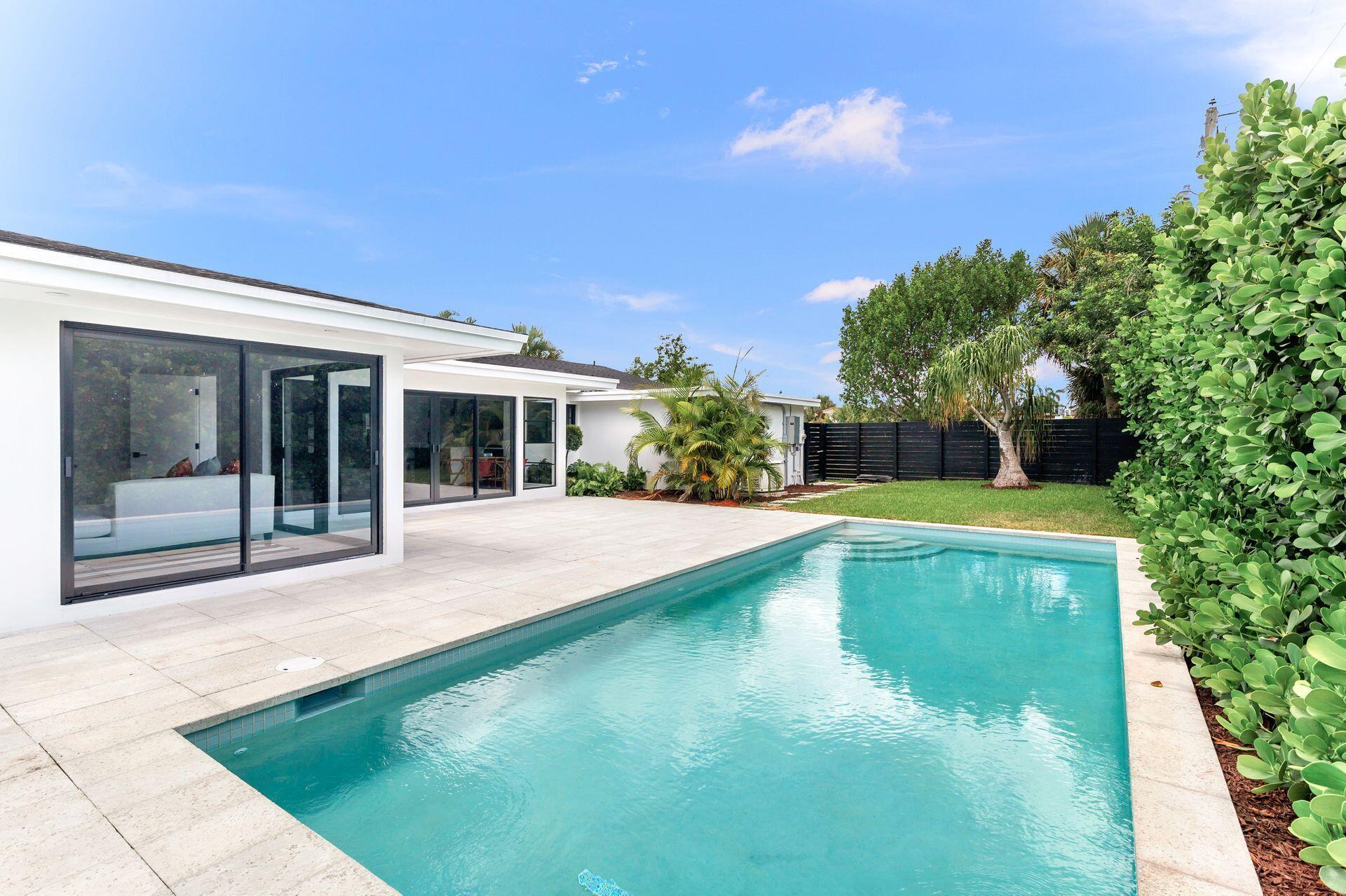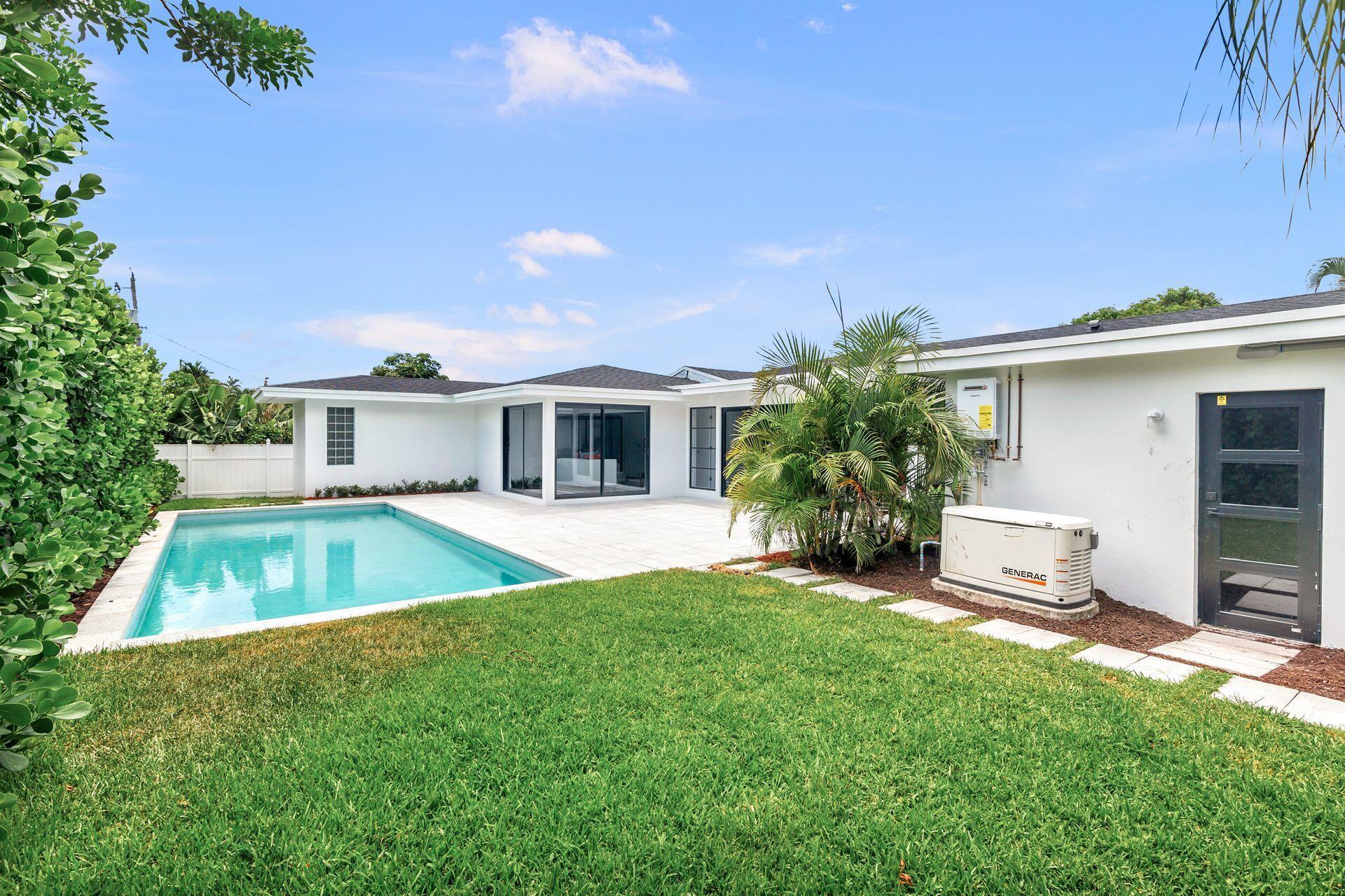 Mid-century Masterpiece. Completely re-designed, re-imagined and enduring a 14 month ground up renovation this modern ''SoSo'' beauty has been taken to the studs and brought back to its intended splendor. Nestled on a huge lot with high elevation and featuring four bedrooms and four full baths, this home has brand new electrical, new plumbing (all the way to street/sewer), a brand new roof, new HVAC and ductwork, new custom impact glass windows and doors and a full house generator. Offering maximum privacy and functionality, 375 Valley Forge consists of three separate wings to the home including 2 private guest rooms with ensuites. The oversized primary suite tucked at the rear wing of the home boasts massive sliders overlooking a brand new pool and decking, vaulted ceilings, excessive