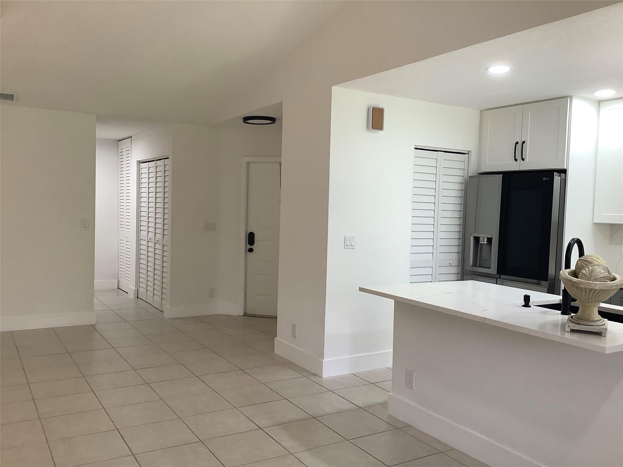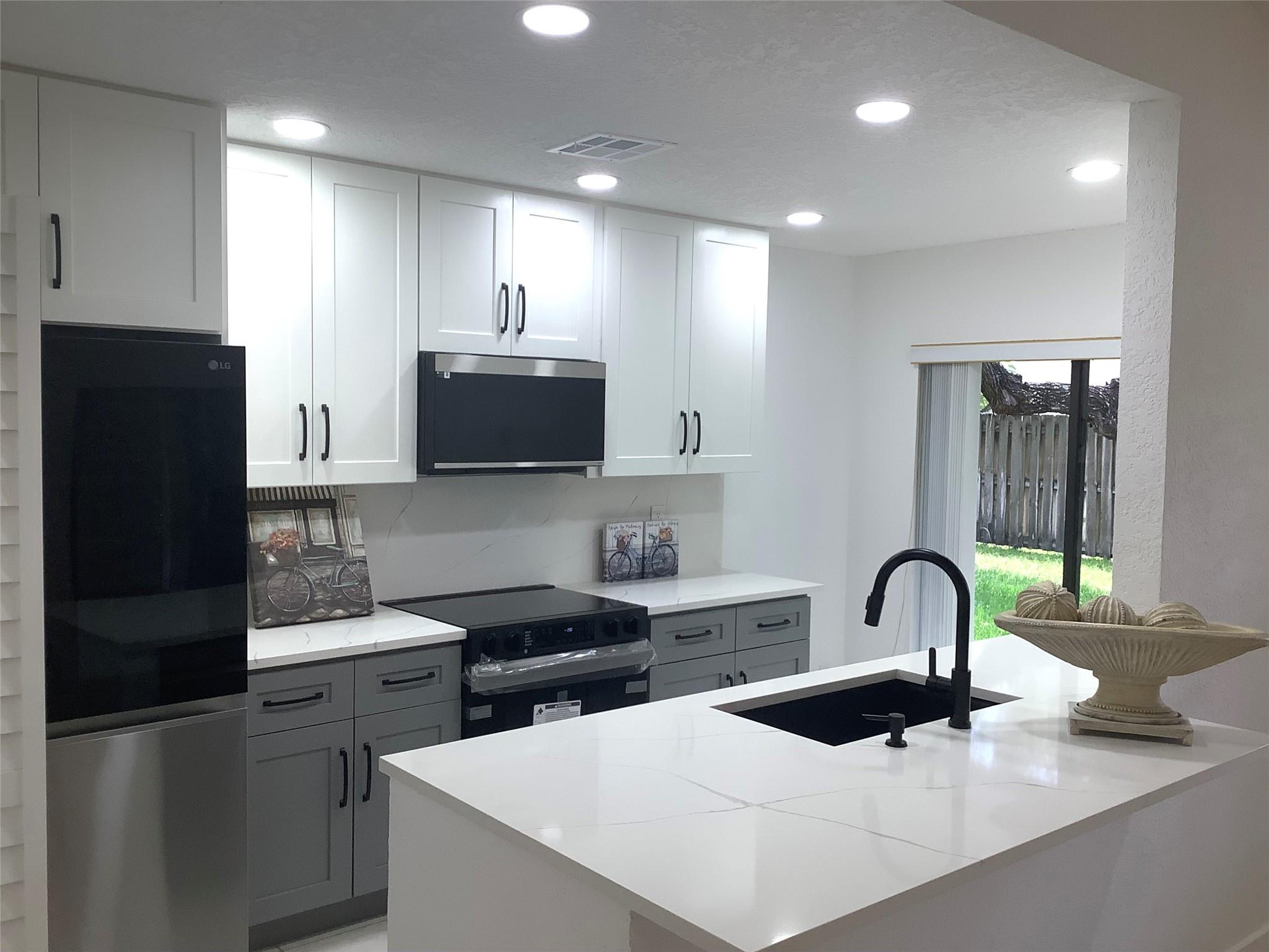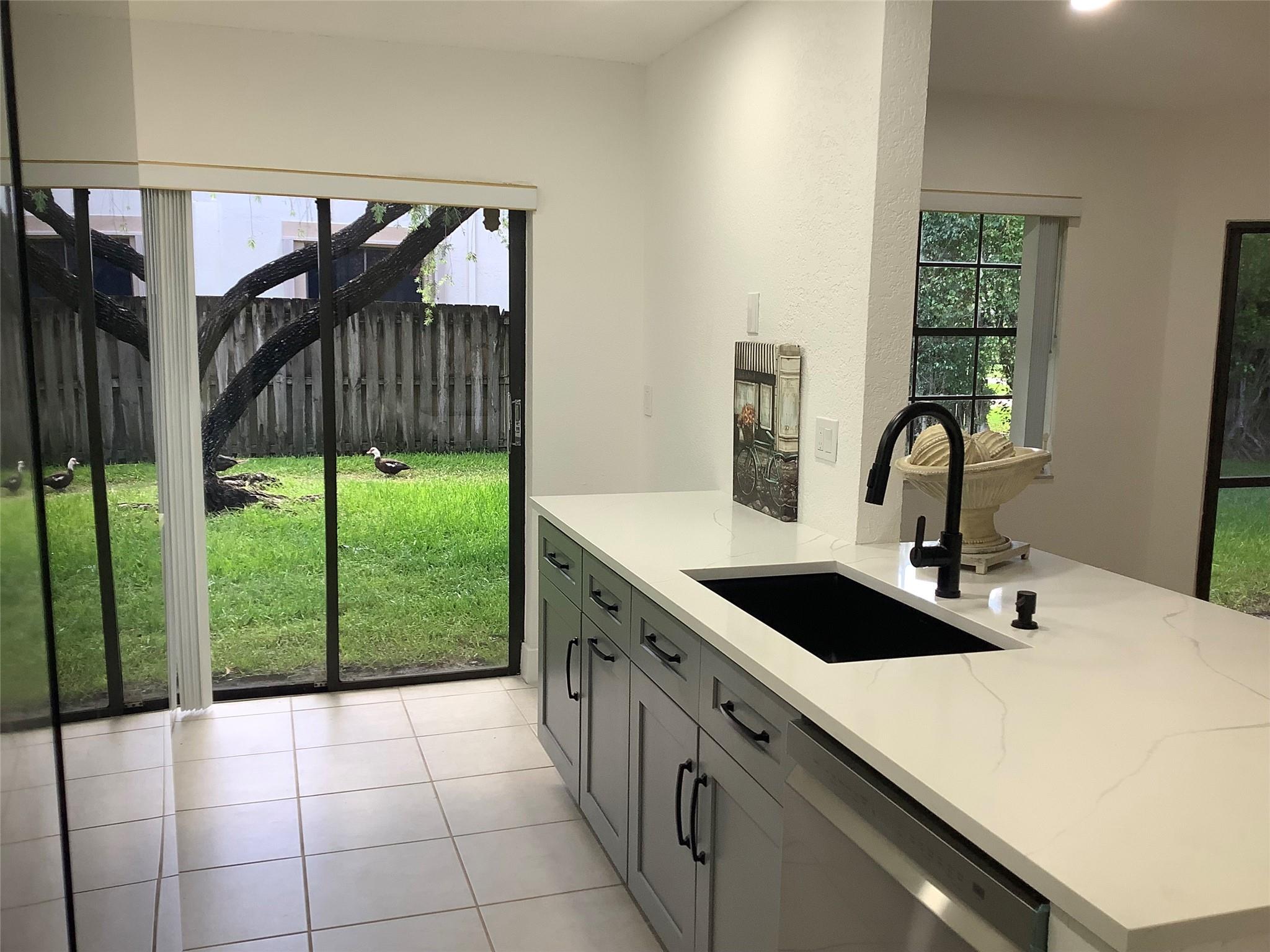 Welcome to Lakeview Courts of Jacaranda. This Corner unit home is just perfect for you. Unit has an open floor plan with very high ceilings, located at the end of the section with very private front courtyard entrance. Brand new kitchen with beautiful Granite top, stylish gray and white cabinetry, separate laundry/pantry room, with full-size washer and dryer, modern new appliances, new laminate floors, private back patio with huge closet for storage. Bathrooms with new vanities, new closet doors. Gated community with very low maintenance fee.