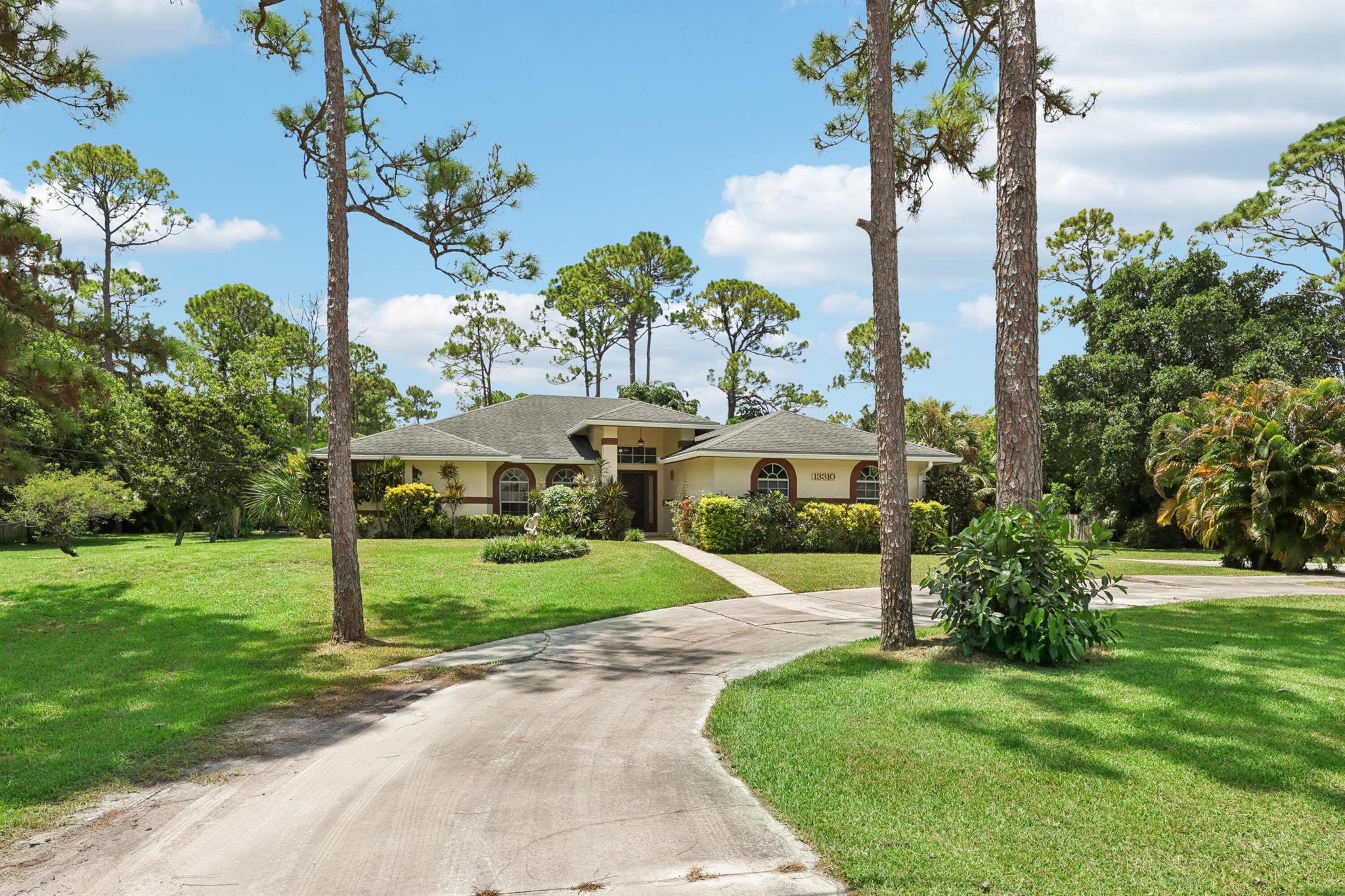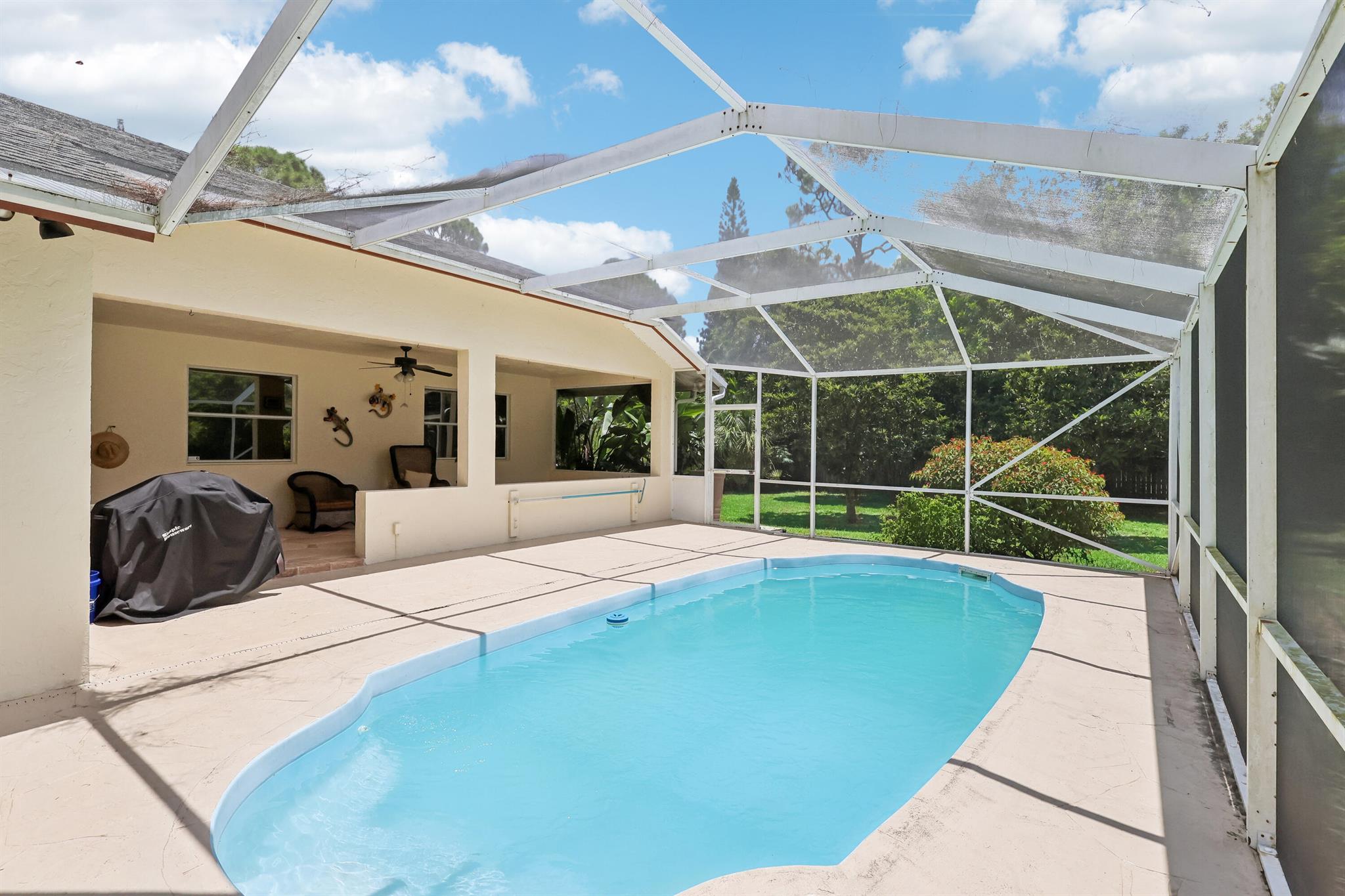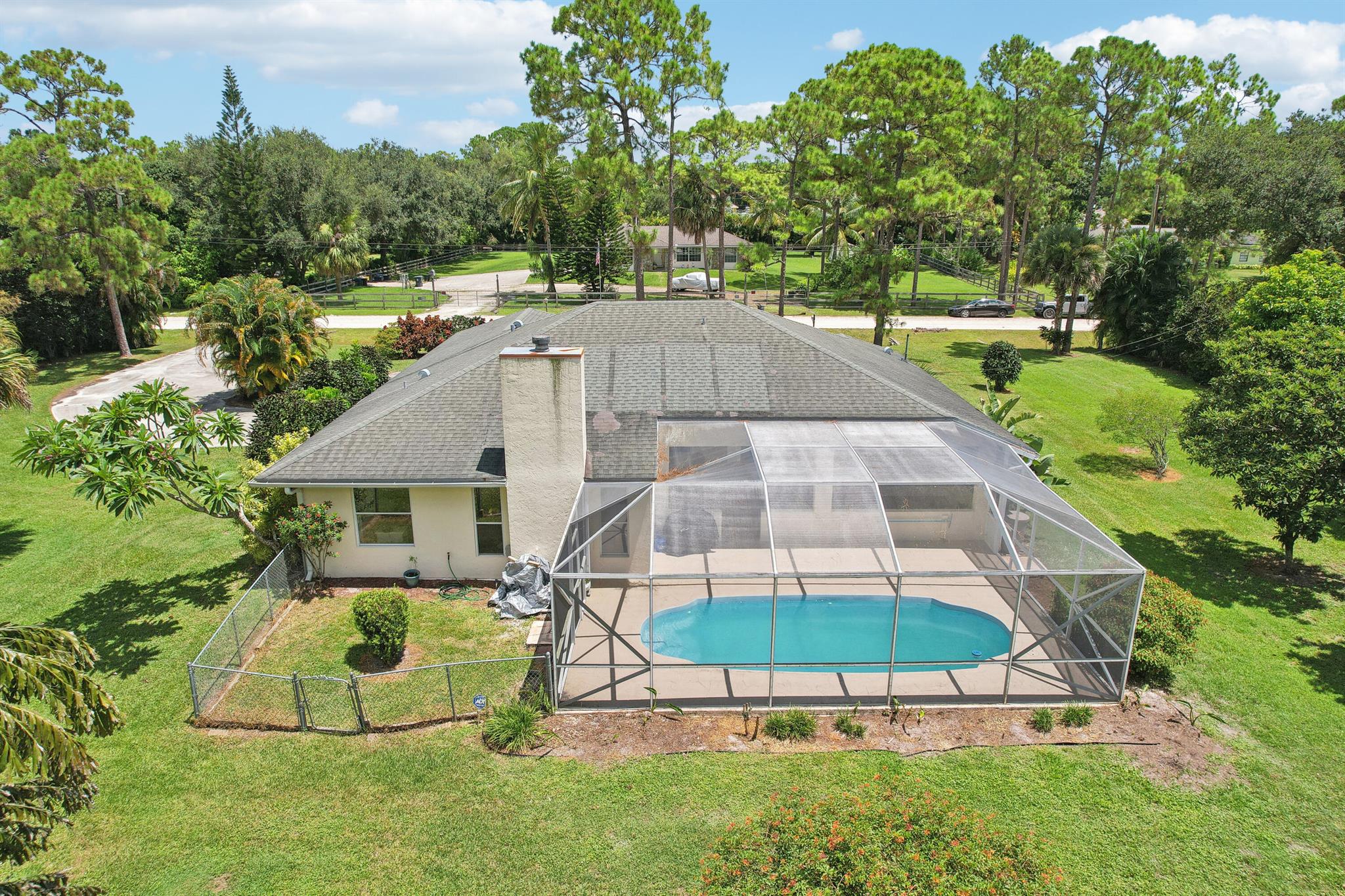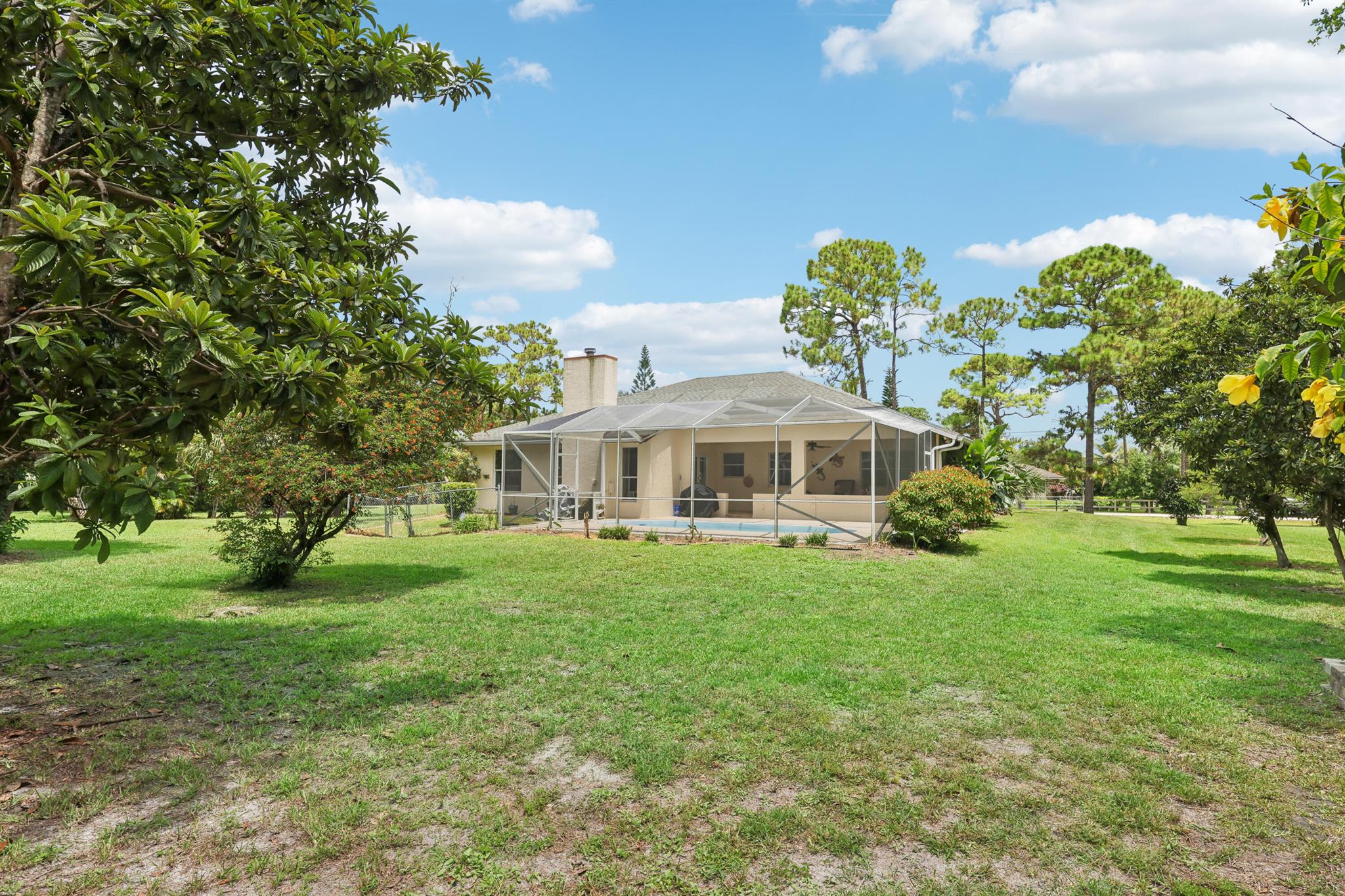 Discover this incredible 3-bedroom, 2-bathroom CBS pool home situated on a high and dry 1.15-acre lot. As you pull into the circular driveway, the charm of this special house is immediately apparent. The great room boasts high ceilings, The modern kitchen features white cabinets, granite countertops, and stainless steel appliances. a wood-burning fireplace, and French doors that open to the patio. Pride of ownership is evident in every detail, from the meticulously maintained interior to the serene outdoor spaces, with patio and crystal clear water in the large screened in pool. The backyard is an oasis with a firepit and a trellised swing area. planted fruit trees include avocado, loquats, plantain adorn the lush tropical foliage. In the acreage area, no HOA space for fun and toys.