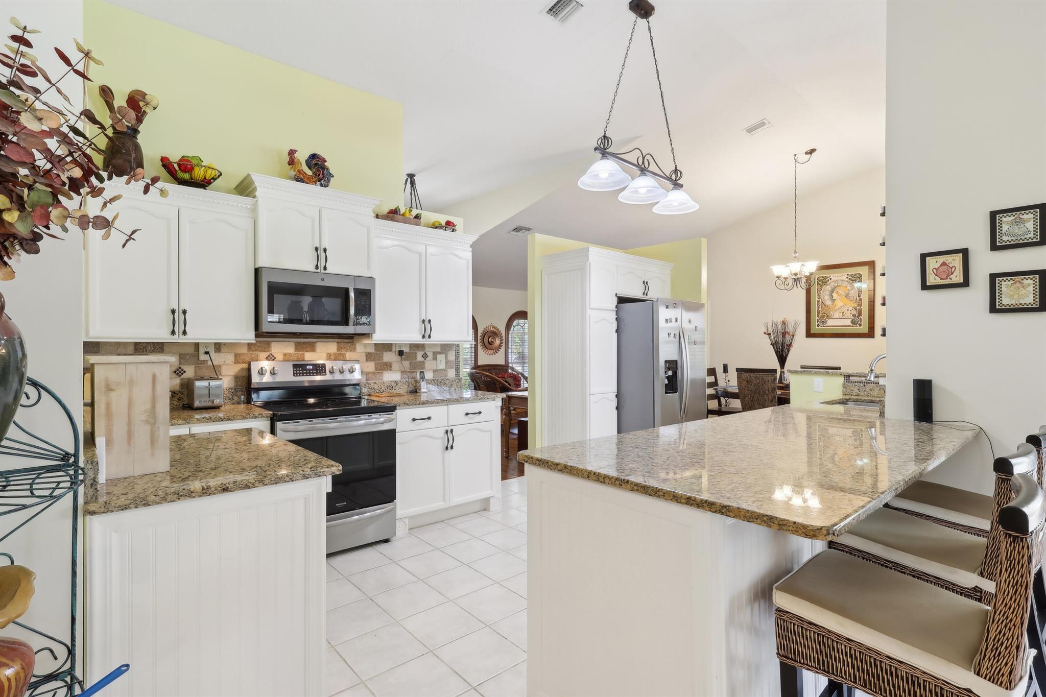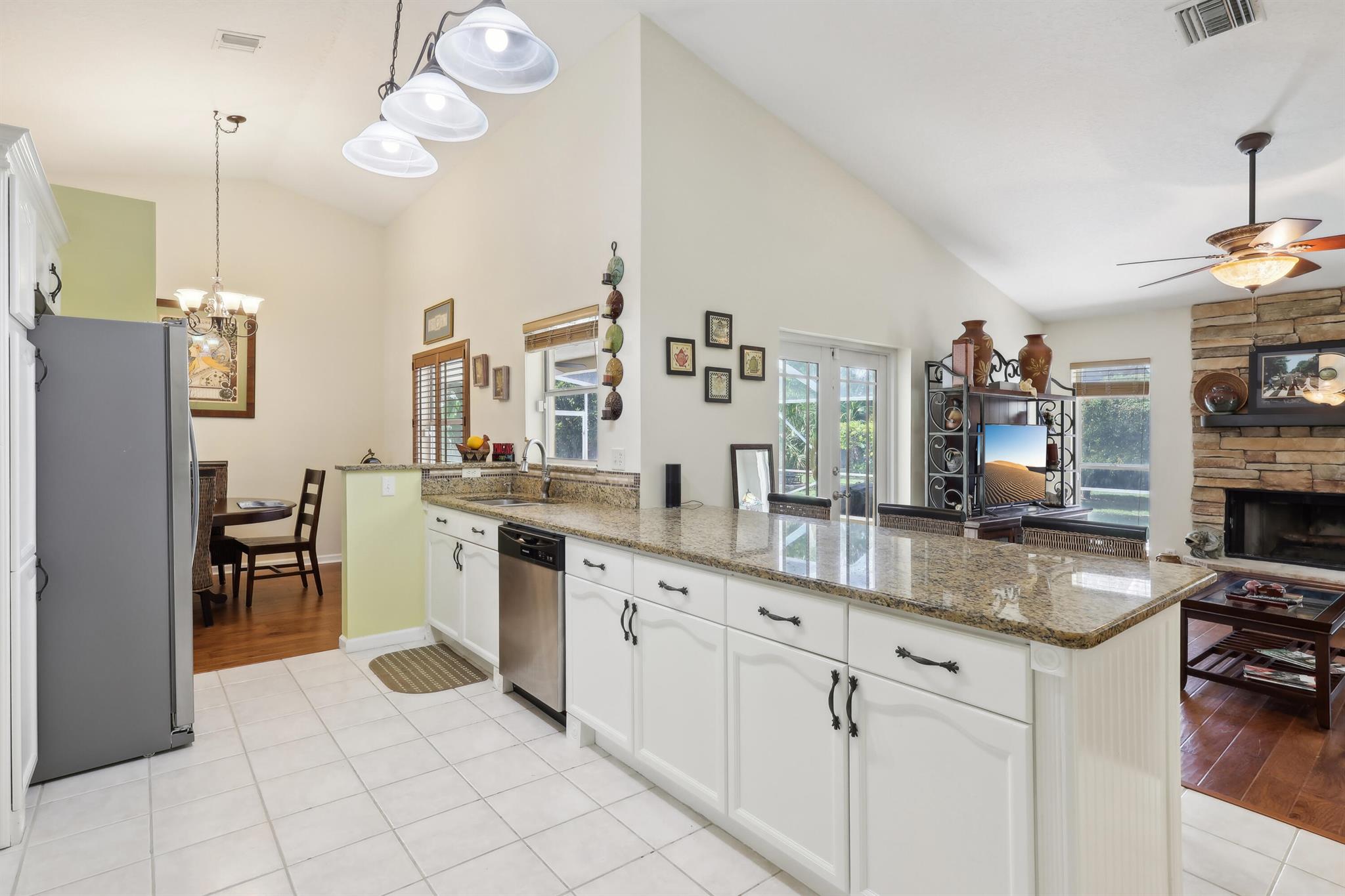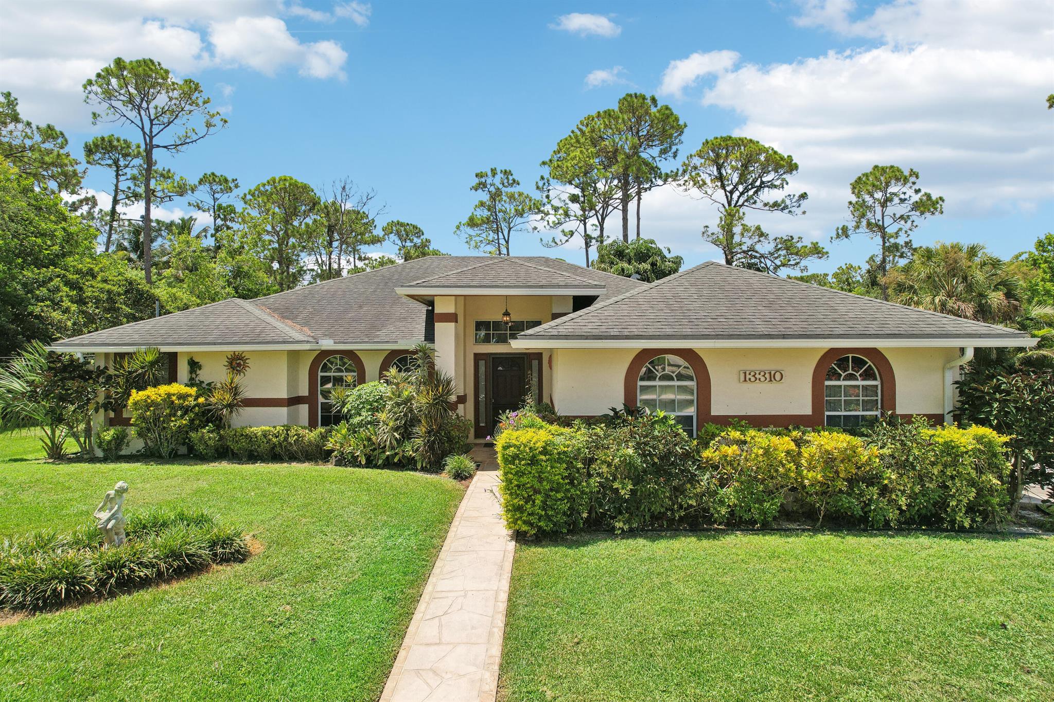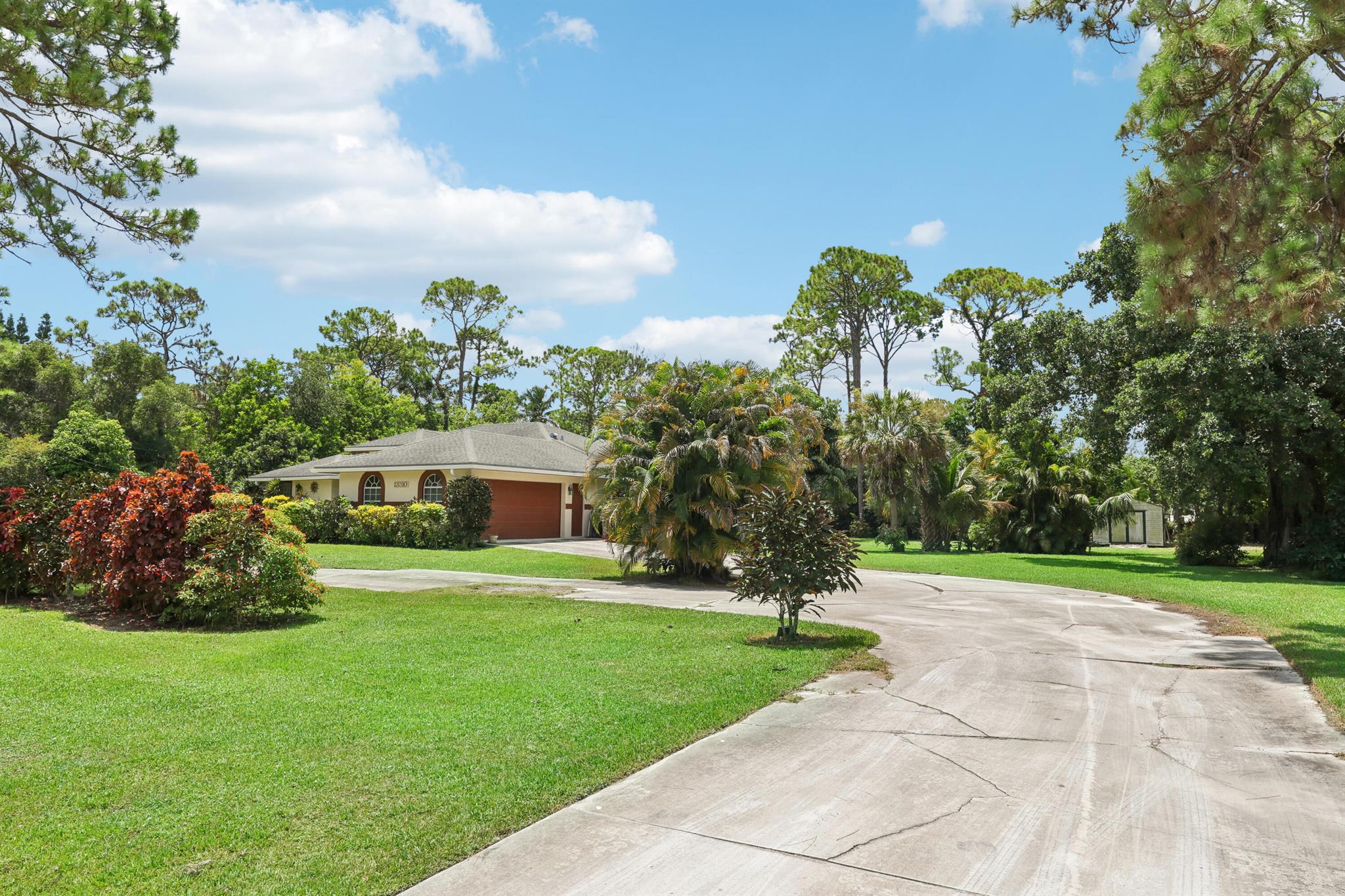 Discover this incredible 3-bedroom, 2-bathroom CBS pool home situated on a high and dry 1.15-acre lot. As you pull into the circular driveway, the charm of this special house is immediately apparent. The great room boasts high ceilings, The modern kitchen features white cabinets, granite countertops, and stainless steel appliances. a wood-burning fireplace, and French doors that open to the patio. Pride of ownership is evident in every detail, from the meticulously maintained interior to the serene outdoor spaces, with patio and crystal clear water in the large screened in pool. The backyard is an oasis with a firepit and a trellised swing area. planted fruit trees include avocado, loquats, plantain adorn the lush tropical foliage. In the acreage area, no HOA space for fun and toys.