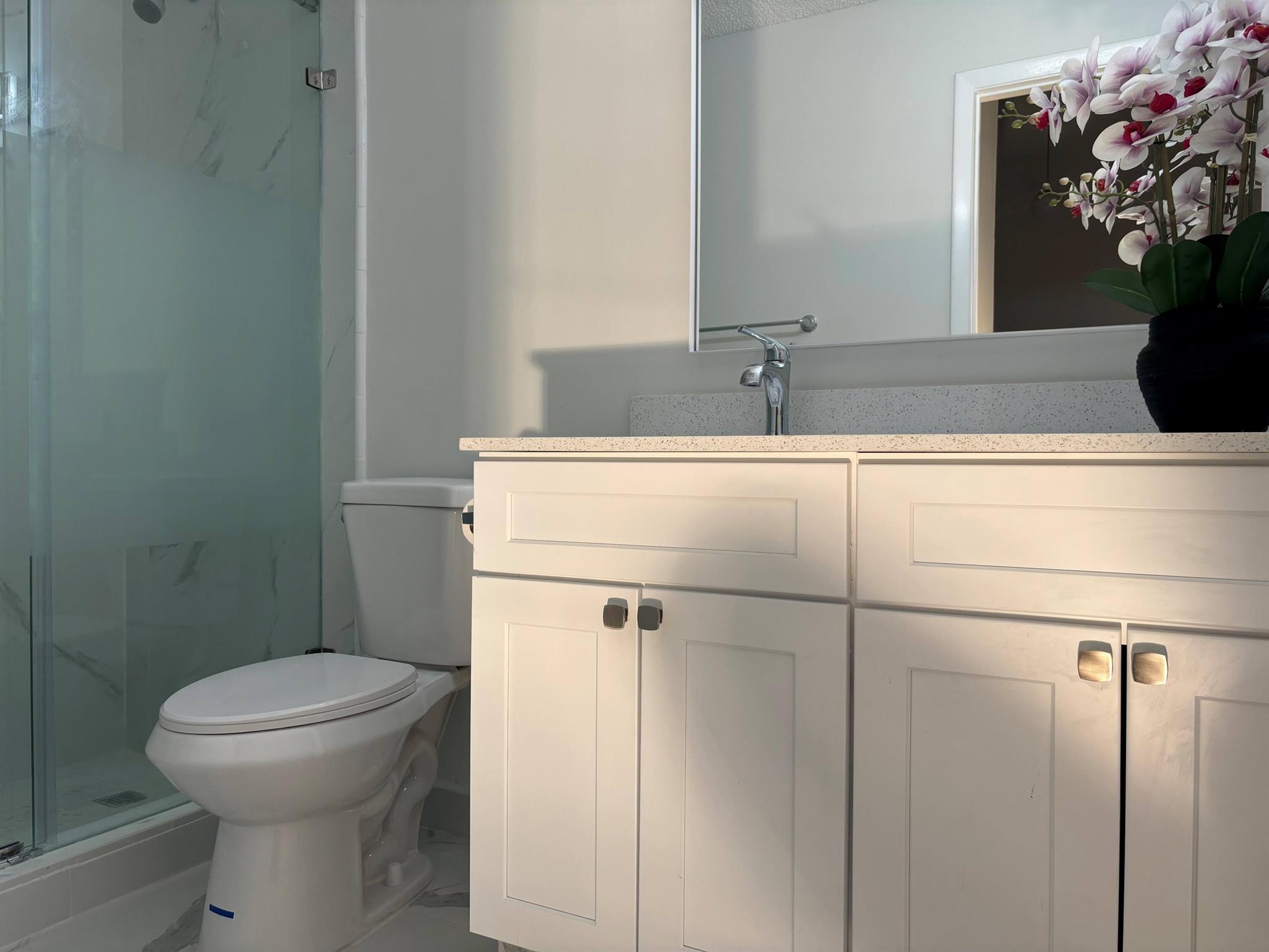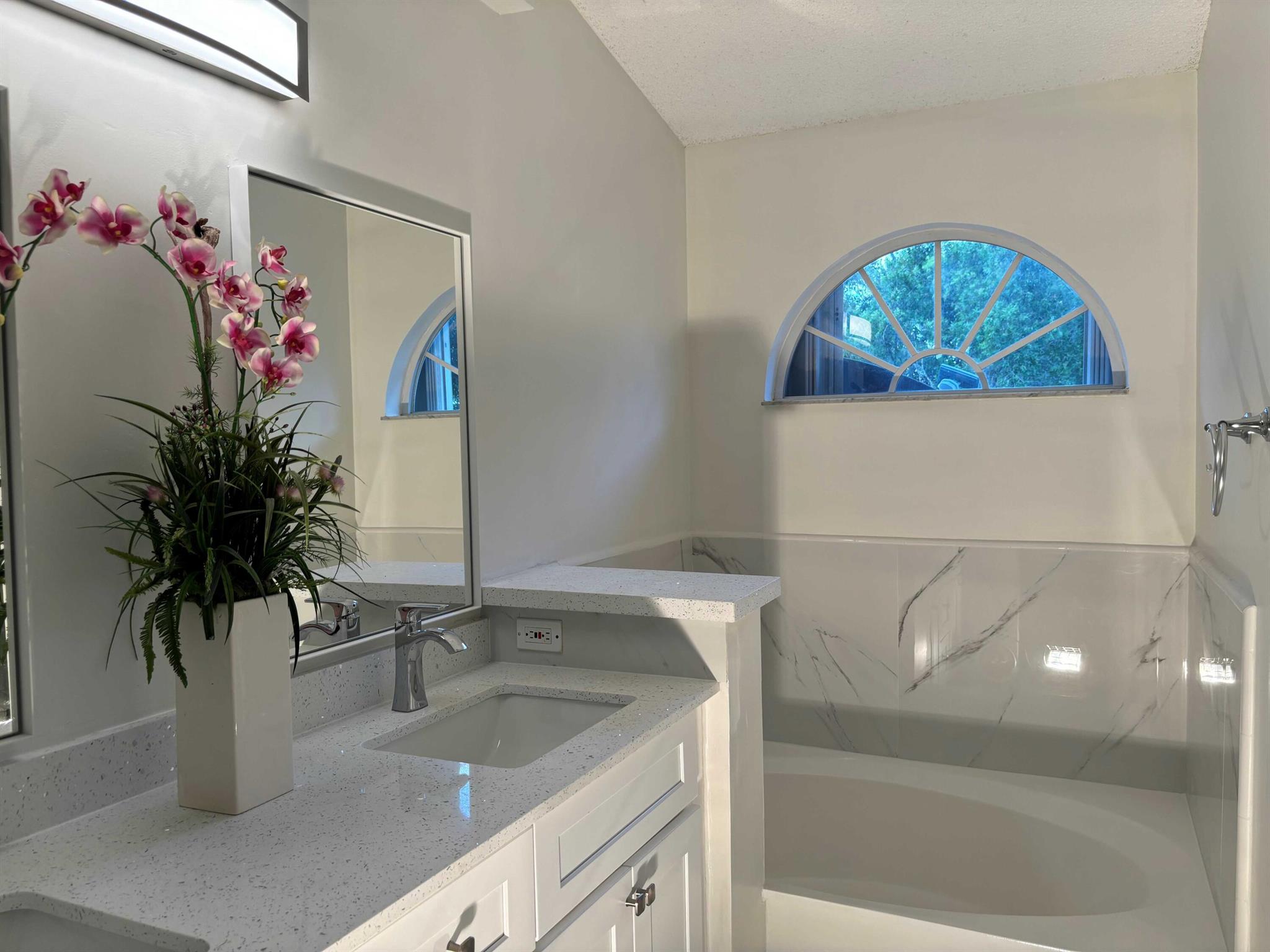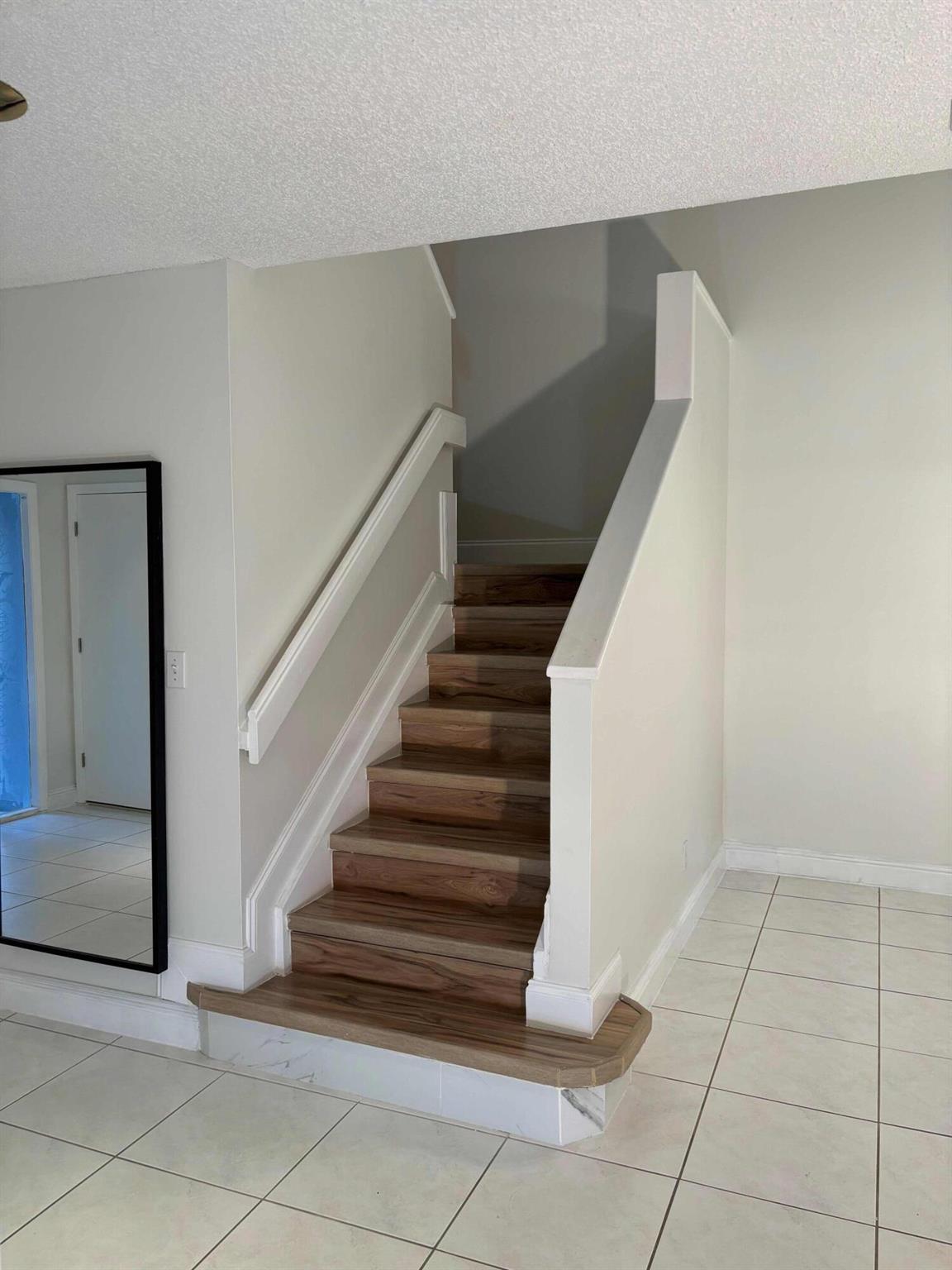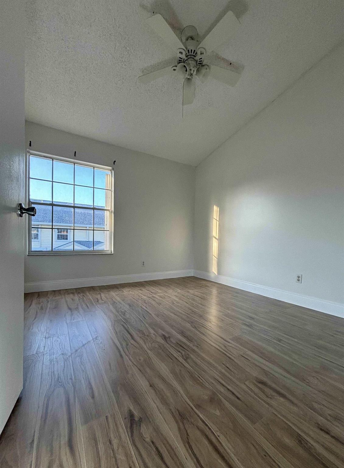 Back to the market. Three bedrooms, two and a half bathrooms, bright and luxurious townhome with a one-car garage. Twenty-four-hour manned gate. Newly painted. Great open floor plan, vaulted ceilings with skylights. First floor tiles and second floor new wood. Spacious large master suite with vaulted ceiling and seating area for a computer desk. New split shower, double sink vanities, large walk-in closet. Remodeled bathrooms. Split bedrooms. Modern kitchen and stainless-steel appliances with French doors. Laundry room with full-size washer and dryer. Paved screen patio with a large backyard. Great room with dining area. Community pool, tennis courts, and children's playground. Walk to Town Center and Boca Center Malls. All A+ schools. Minutes to I-95 & Florida Turnpike, and to beach.