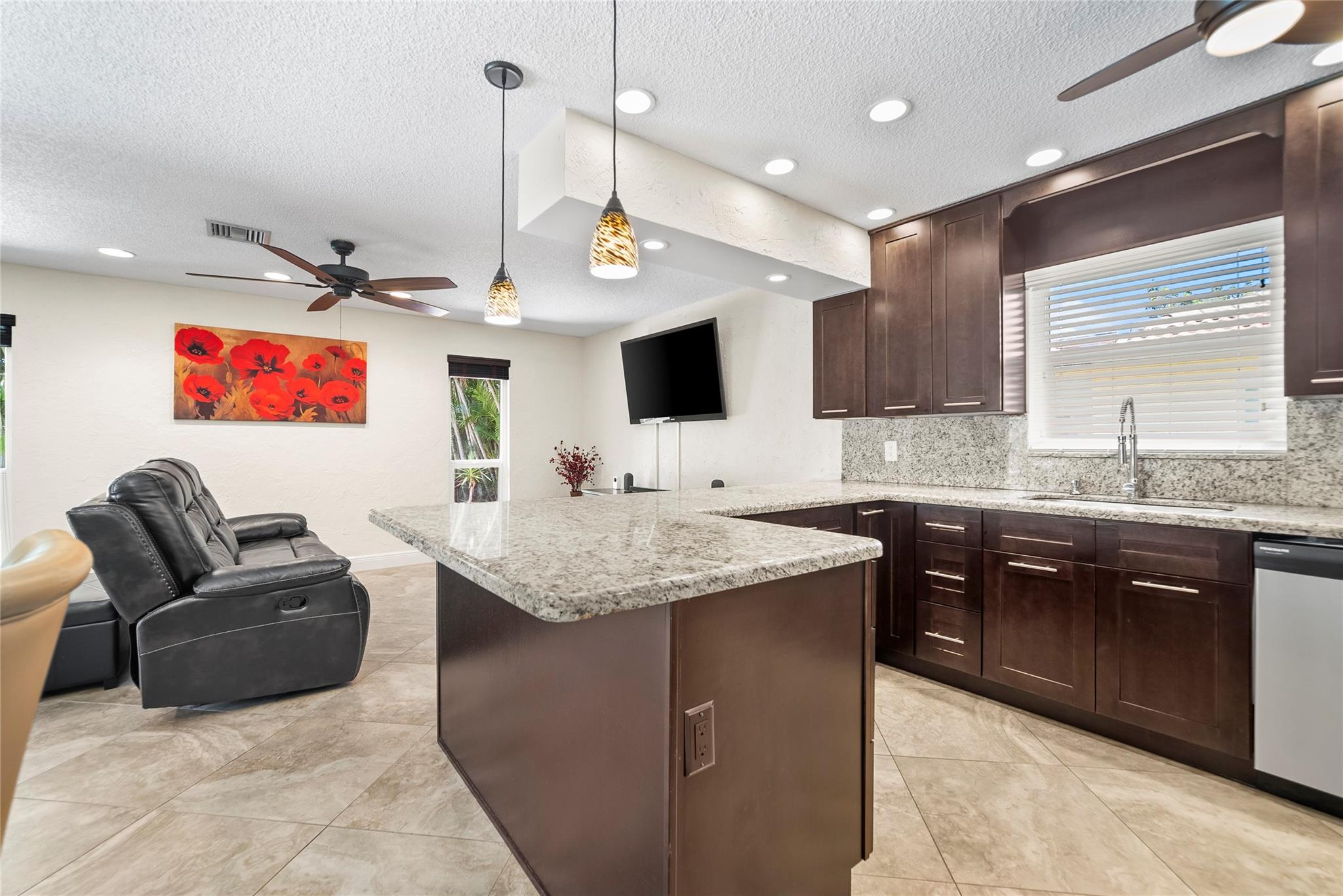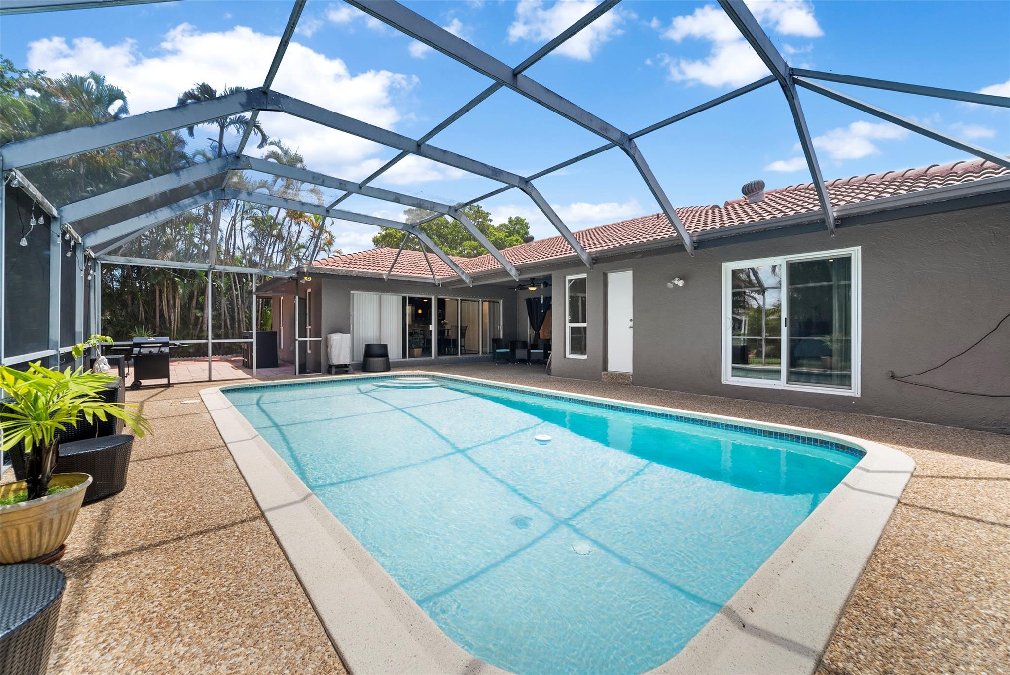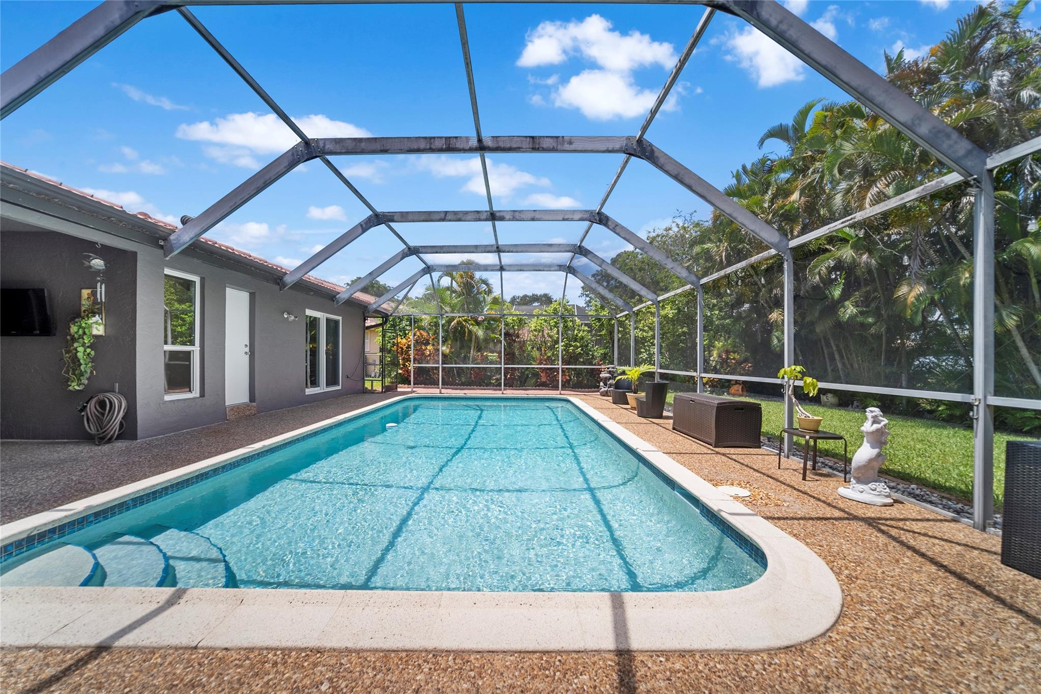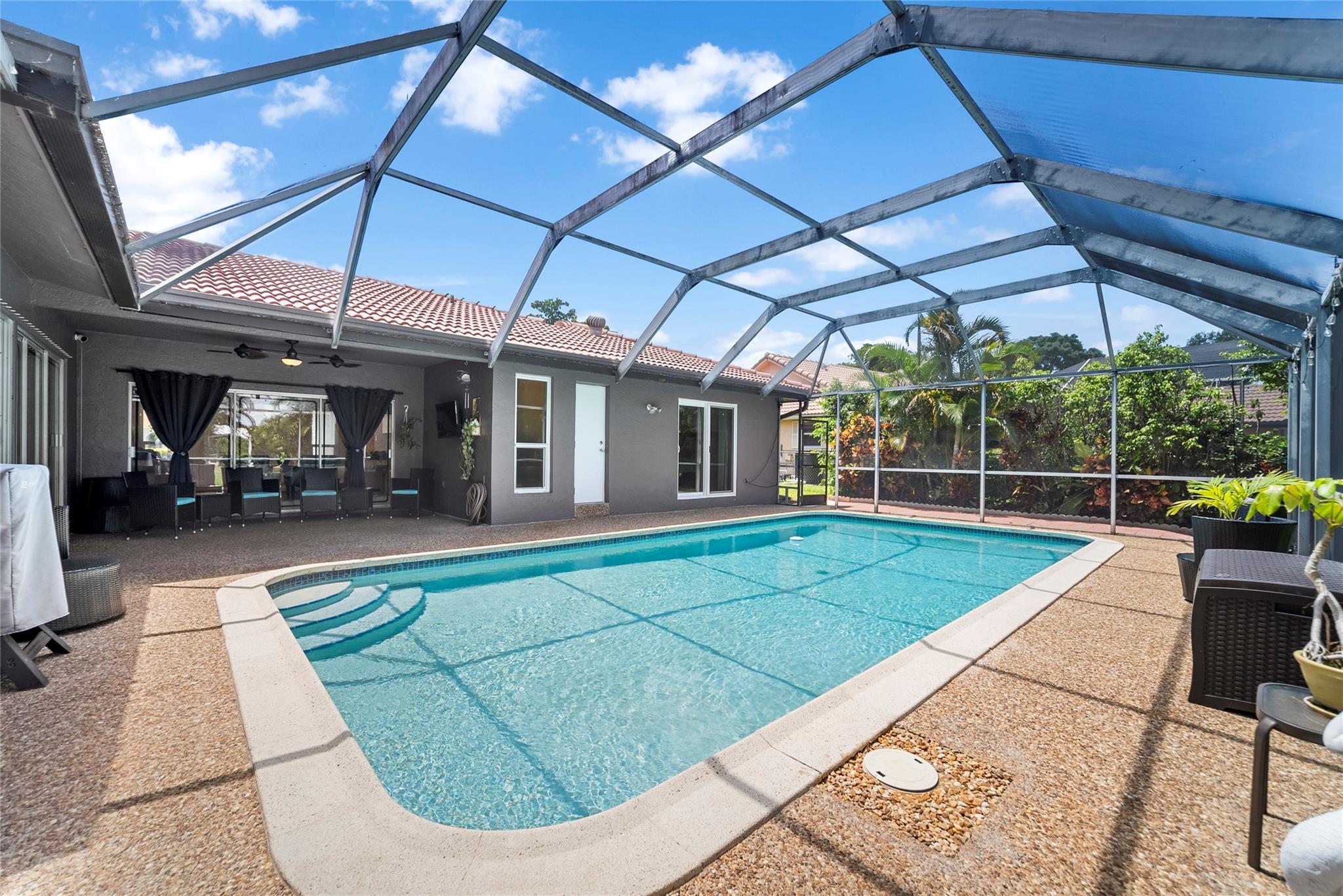 Welcome to your dream waterfront pool home. This immaculate single-family residence offers the perfect blend of sophistication and functionality, featuring an array of contemporary upgrades. Step inside to discover a beautifully updated chef's kitchen that is sure to impress, complete with sleek granite countertops, stainless steel appliances, and elegant costume cabinetry. Porcelain tiles adorn the floors on the diagonal, creating a sense of luxury and style throughout the home. This home has a wide open floor plan, formal dinning room with chair rails, upgraded bathrooms with granite countertops. Enjoy the peace of mind provided by impact windows, and hurricane shutters. Enjoy the dual new A/C units and dual water heaters. Enjoy this tropical waterfront paradise today.
