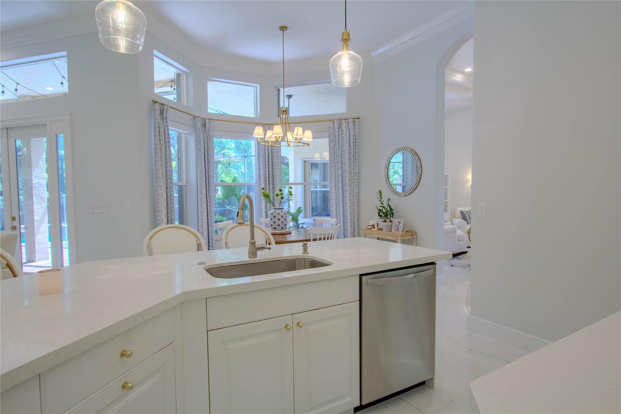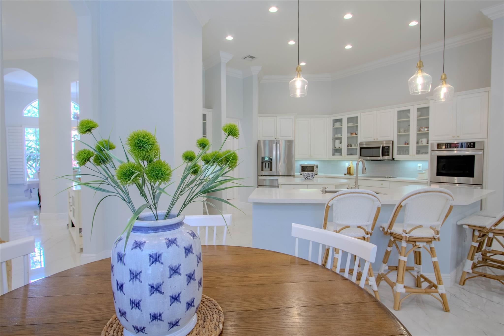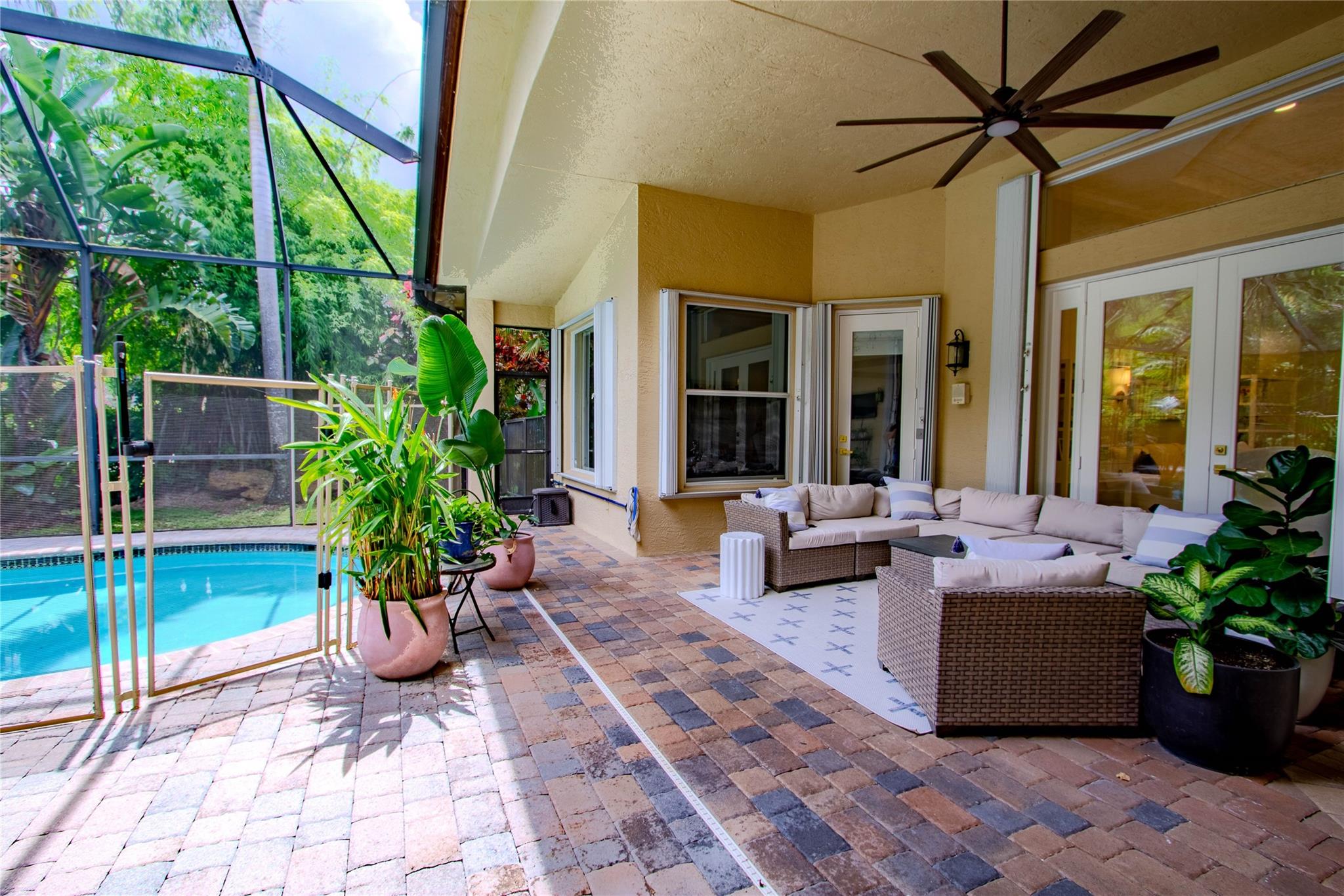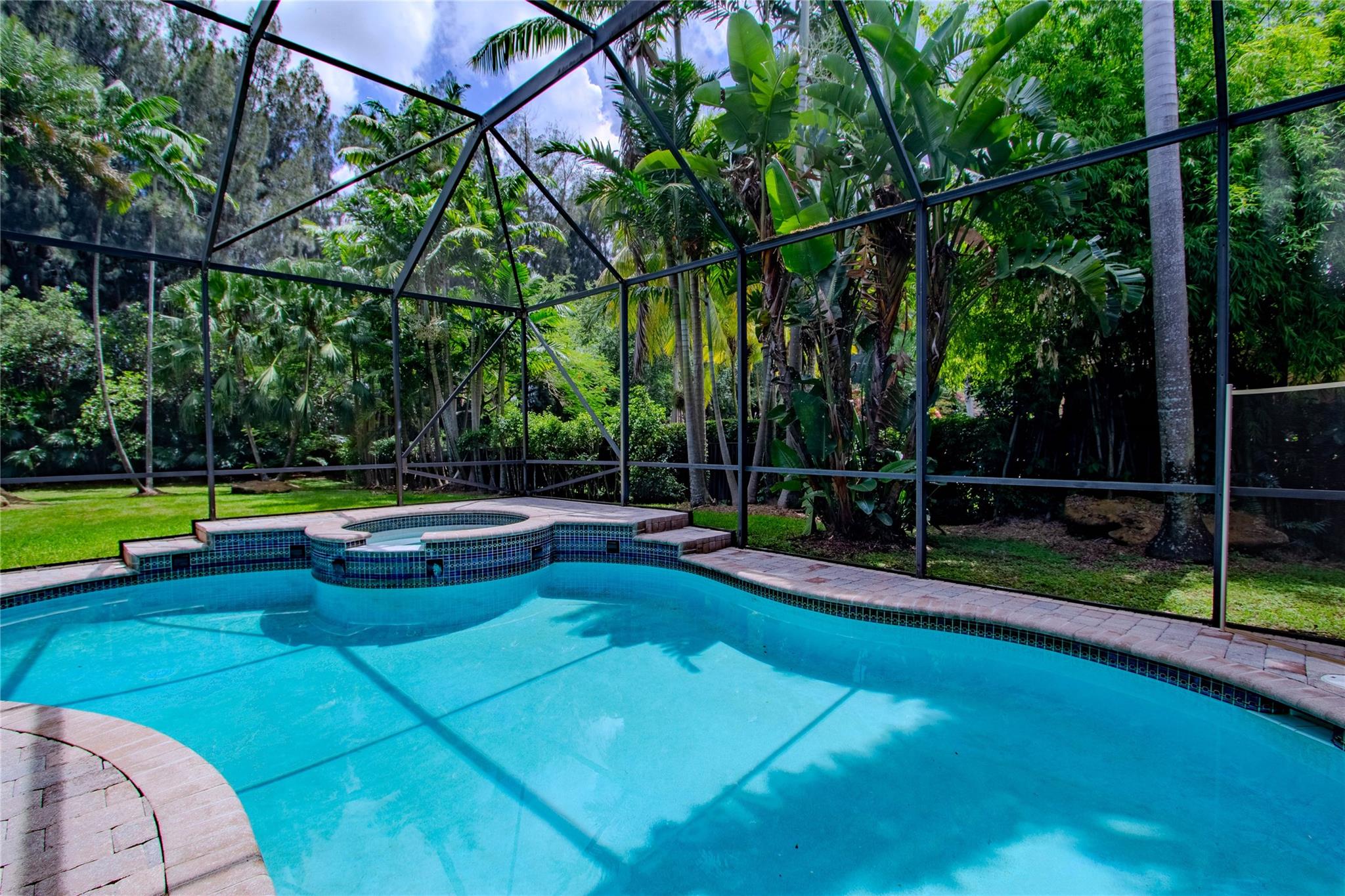 Your private backyard oasis, featuring a free-form screened pool with spa. The beautiful oversized paver patio. Enjoy peace of mind with a brand-new roof installed in 2019. Step inside to luxury with skim-coated walls and ceilings and stunning 48x48 porcelain tile throughout. Located in the prestigious gated community , this spacious home offers a triple split plan with five large bedrooms The recently renovated kitchen boasts all new white quartz countertops, stainless steel appliances, including a double oven, and a walk-in pantry. Neutral tones throughout wood floors in all bedrooms Tucked away on a scenic, tree-lined street, plus enjoy the convenience to the park and tennis courts. Minutes away from American Heritage, 595, airport and Ft Lauderdale. Garage ready for Tesla charging.