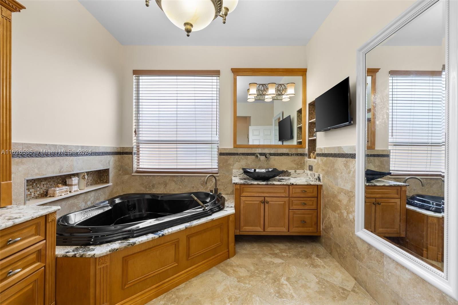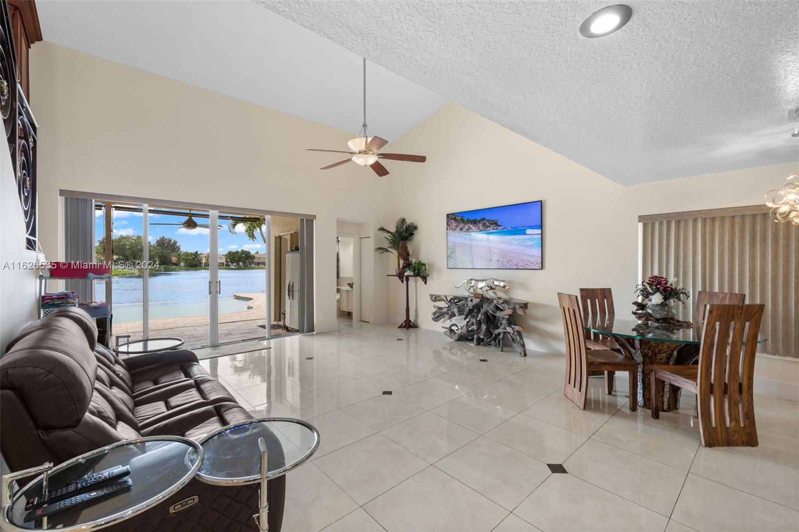 LAKEFRONT WIDE VIEWS WITH ENDLESS INFINITY EDGE SALT WATER HEATED POOL & SPA In Sought After PEMBROKE FALLS. Oversized Master bedroom on first floor, California Closets, Executive Office, Pantry, Jetted Jacuzzi, Massage Showerheads in every bathroom, Steam room w/mood lighting, Spacious Chef's Kitchen with Quartzite countertop, Cherry Cabinetry, Toto Washlet Toilet Systems, Rod Iron Banister, Built-in Bar with backlit Onyx, 7' Crystal Chandelier. New washer, dryer, dishwasher. ACs 2021/2010. Resort Style clubhouse and amenities: Olympic size pool, gym, tennis courts, club house and much more. HOA includes internet/cable, ADT security, amenities.