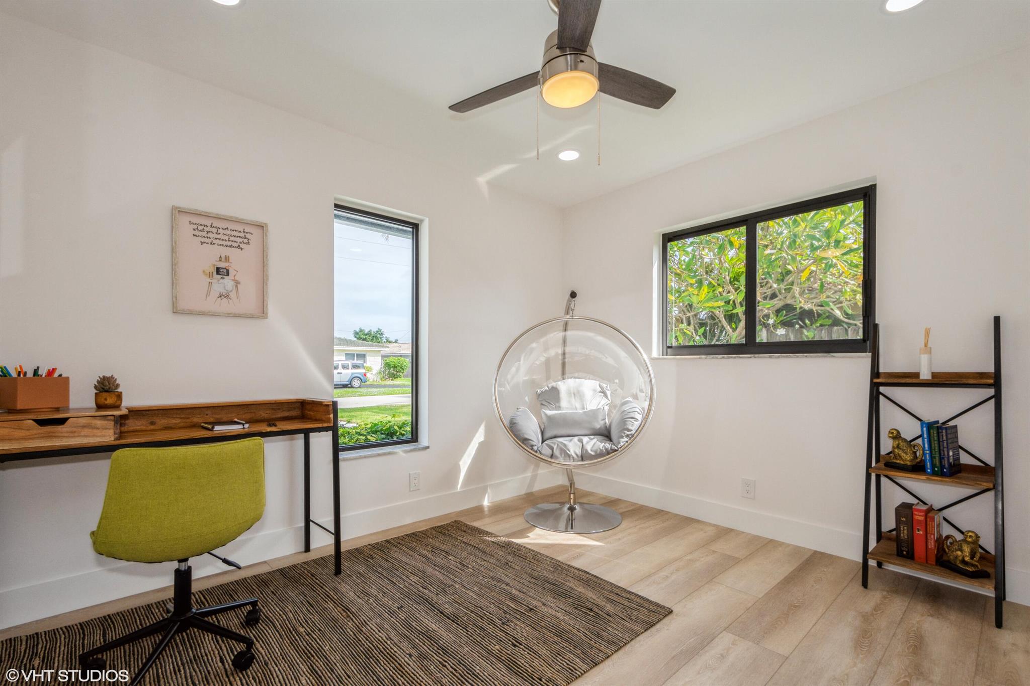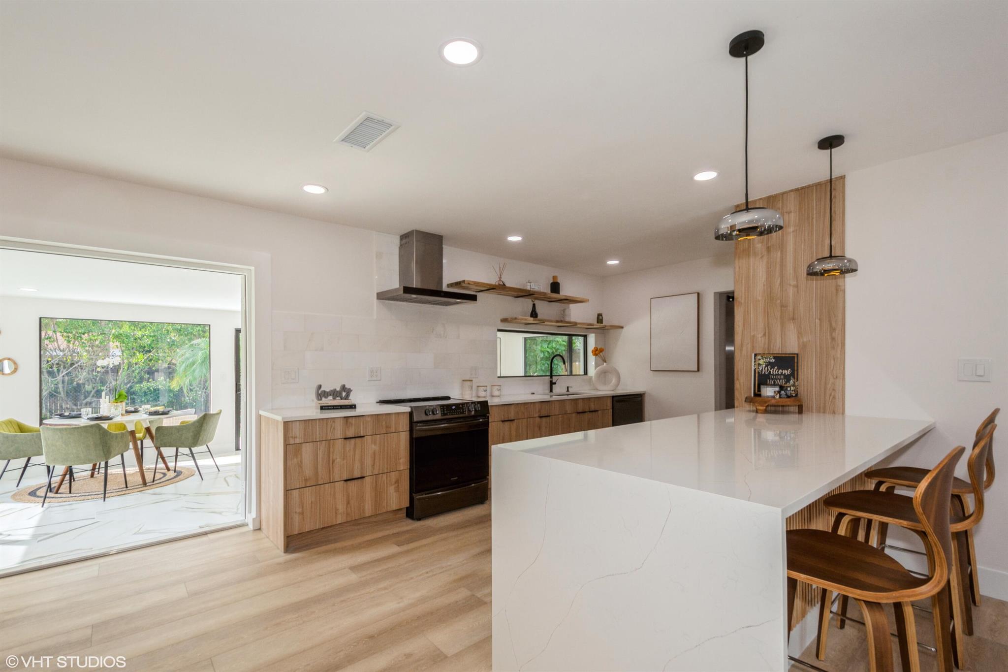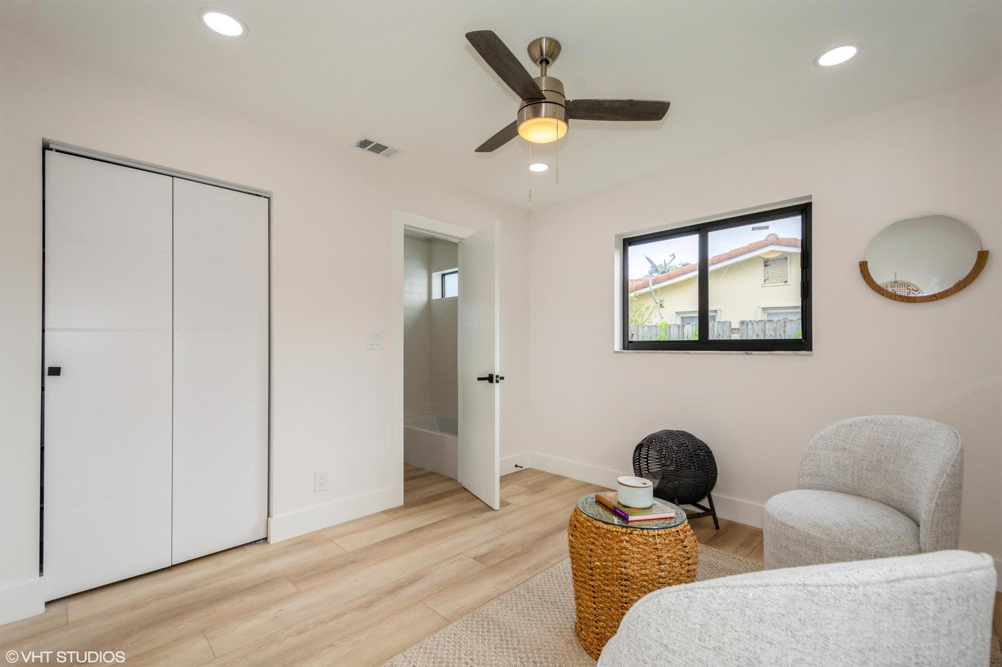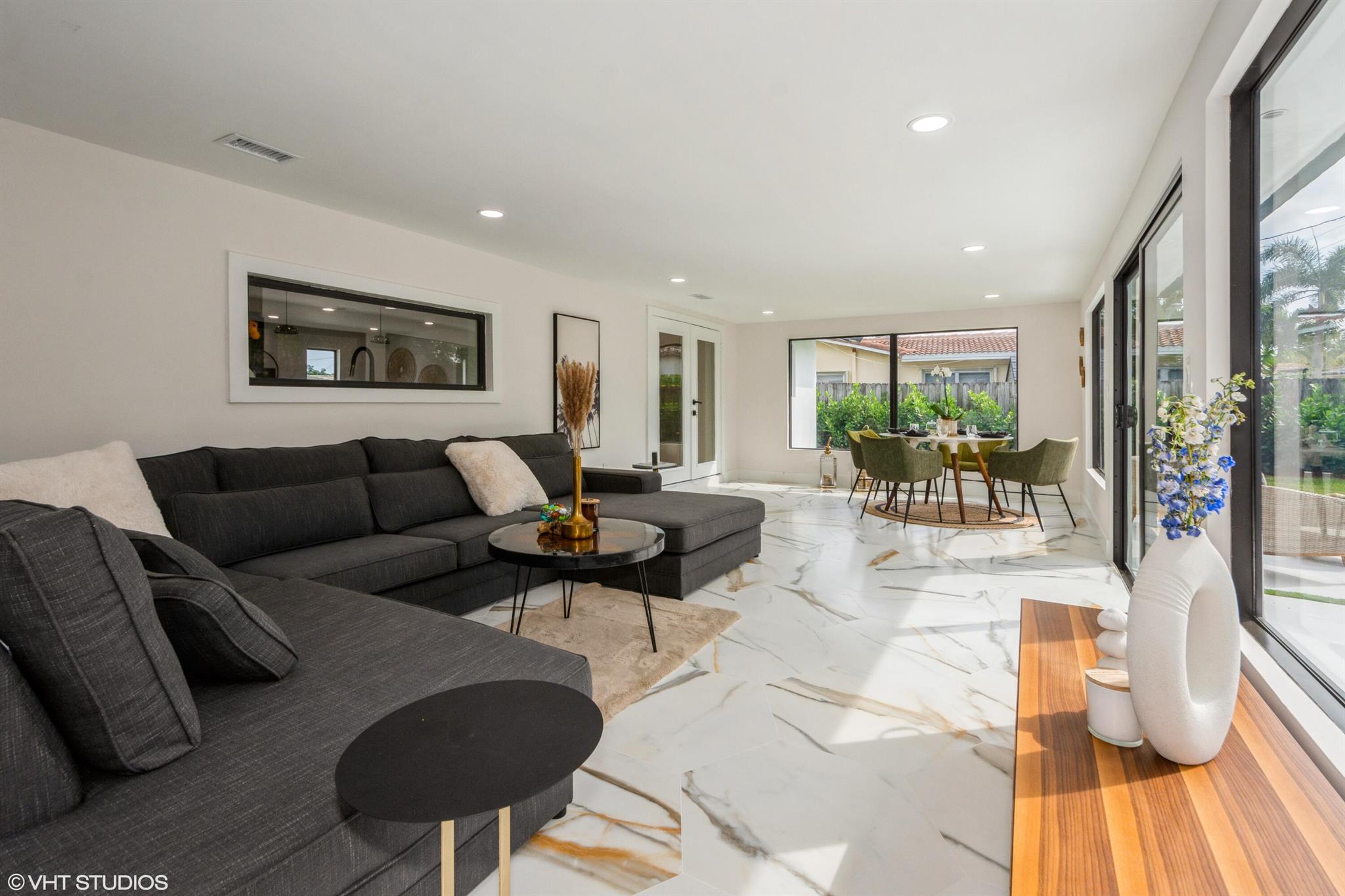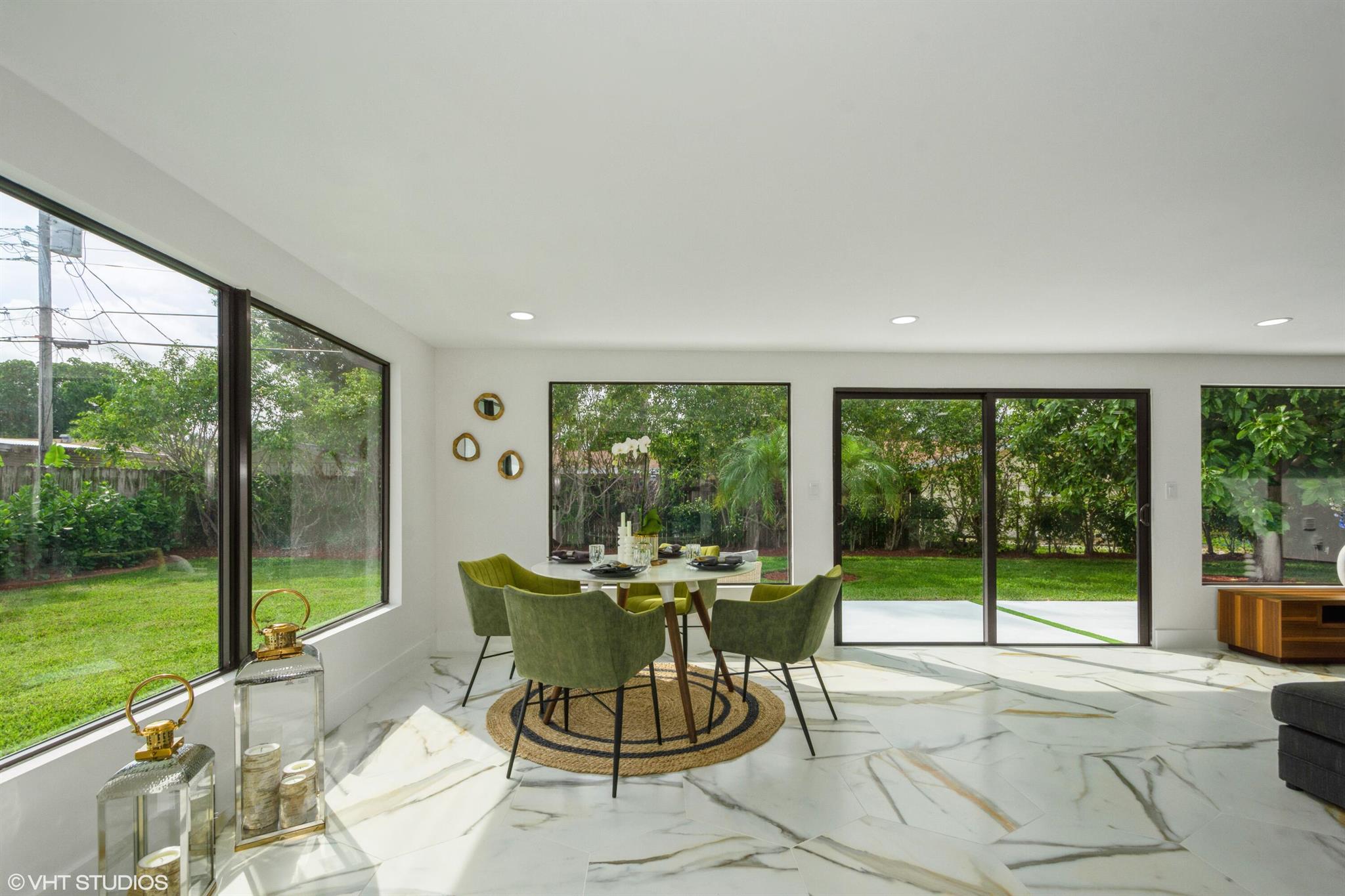 LOCATION! Turn key - luxury and comfort home in East Boca Raton. Spectacular open kitchen features modern cabinets and quartz waterfall countertop, brand-new Frigidaire Gallery black stainless steel appliances and a wine cooler. Fully equipped residence ensures a seamless move-in for its new owners. Every detail has been curated, offering a perfect blend of organic and modern living with the functionality. Bathrooms featuring modern fixtures, designer marble tiles and elegant finishes. Luxury Vinyl flooring. Upgraded electrical panel. All brand new impact windows. French doors lead out to the spacious Florida room for dining and enjoyment. Closet system in all 3 bedrooms. Freshly painted inside and out. Minutes to Mizner Park , restaurants and shopping. Bike to the beach.