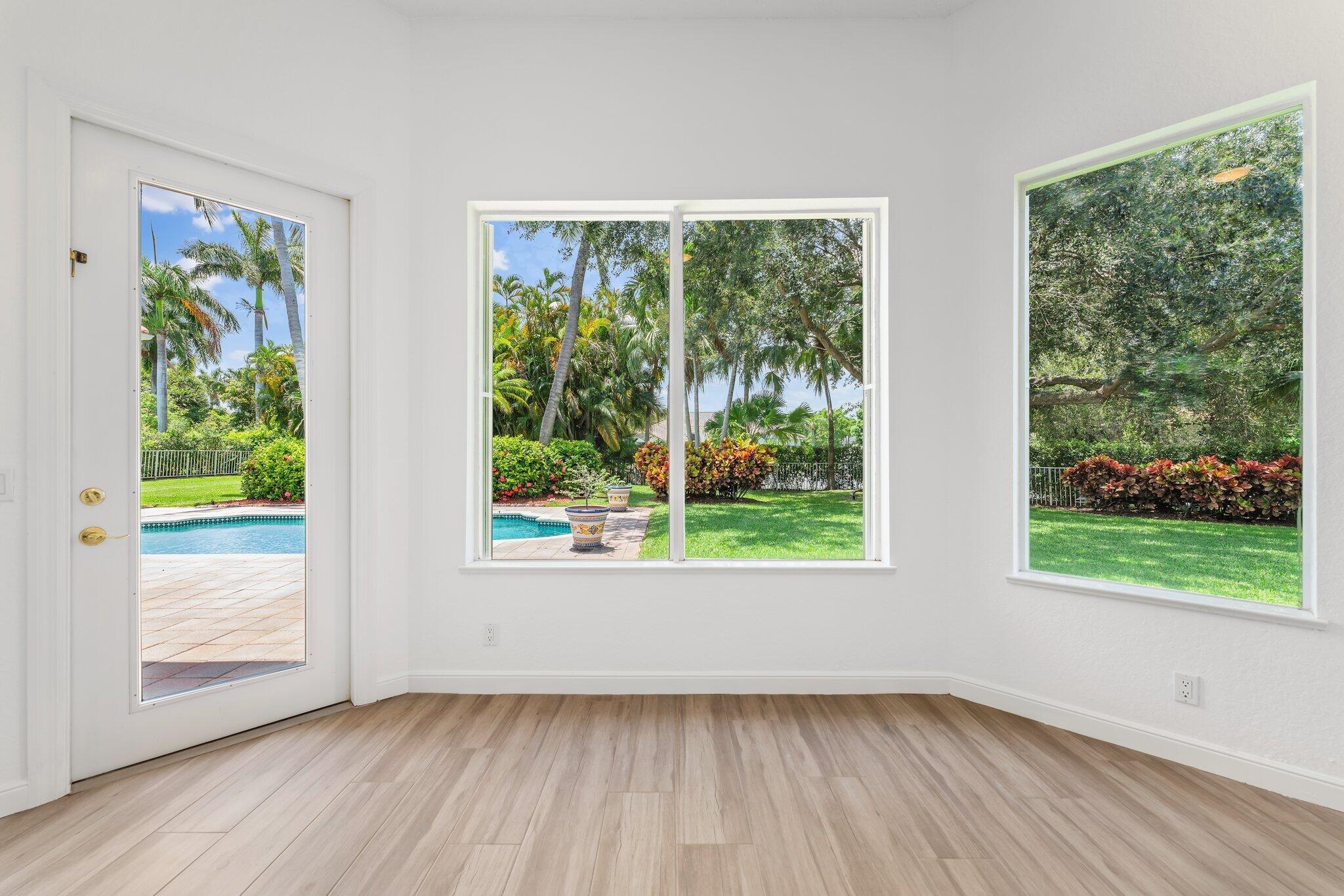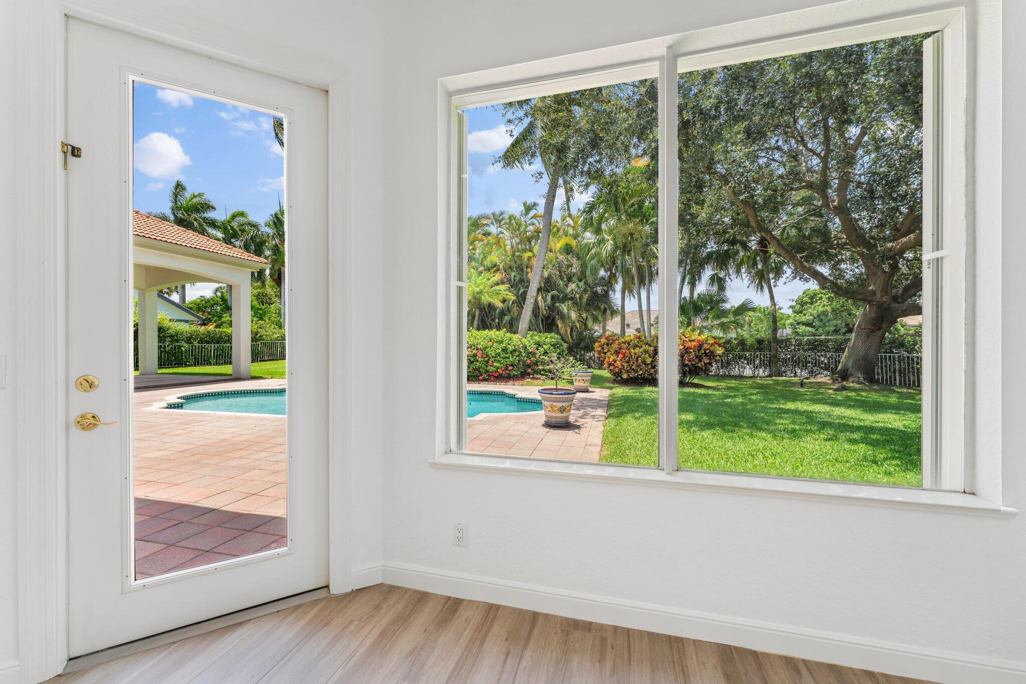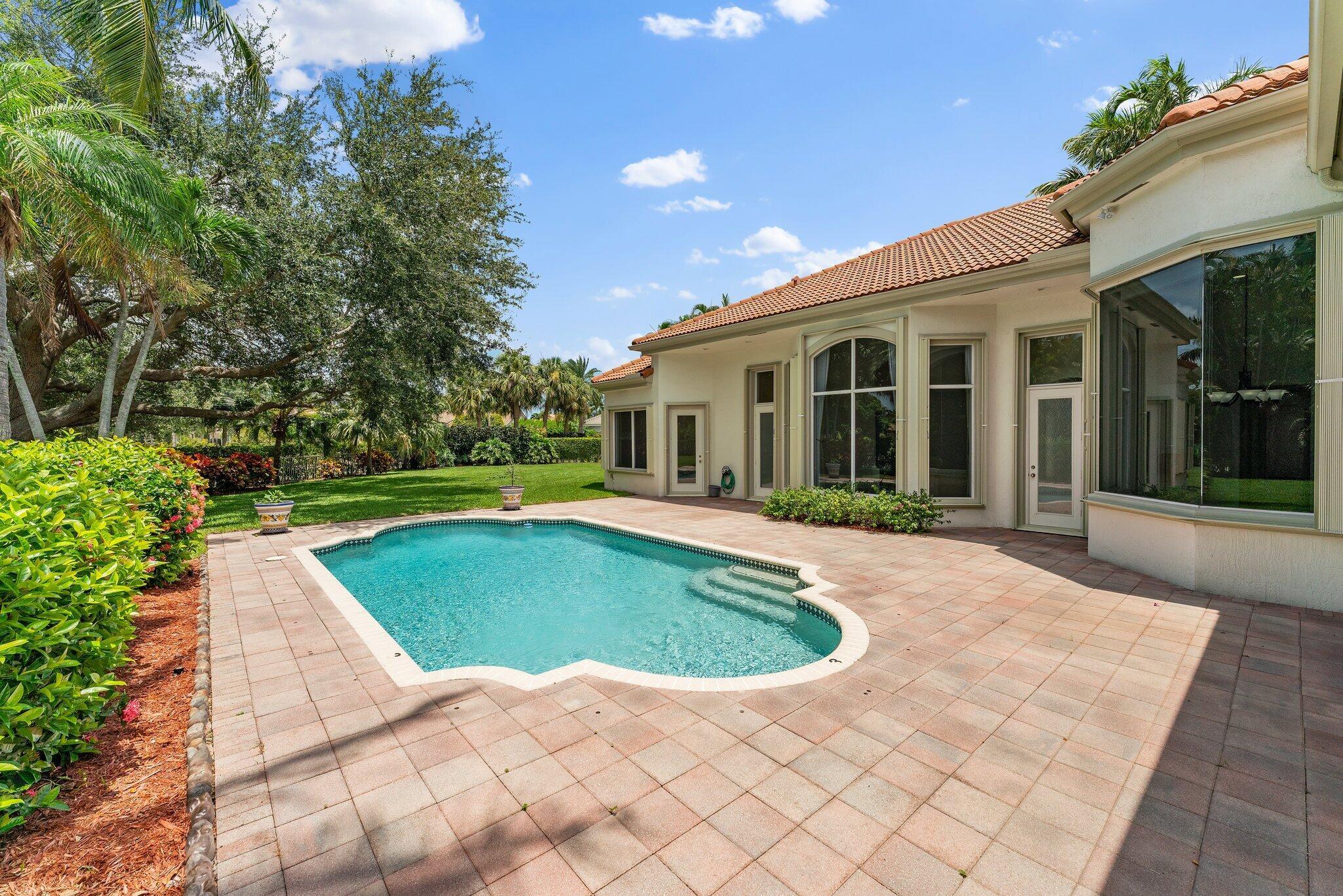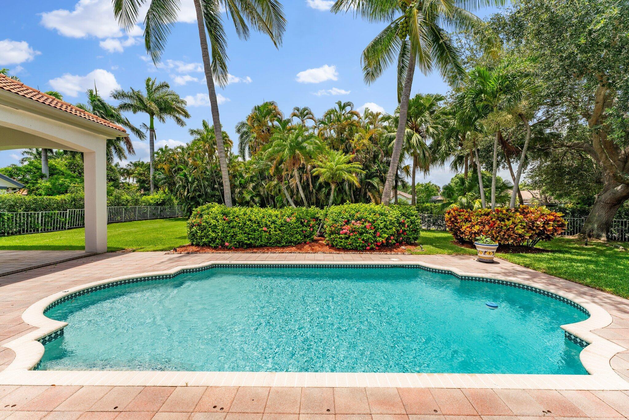 Incredible opportunity to own one of the largest, most expansive, premiere lots in the gated community of Bear Lake Estates, where equity membership to the golf club is not mandatory. This 4 bed, 3 bath plus home office, 4600 sq ft. estate was recently refreshed and sits on a point, corner lot of over 3/4 of an acre of lush, mature landscaping with a gorgeous pool taking center stage. Some features include: a recently renovated contemporary quartz kitchen, new porcelain tile flooring in bedrooms, formal dining room, dramatic ceiling height, multiple walk-in closets, 3-car garage, enormous private yard with a covered patio, expansive primary suite with his/her walk-in closets, and a beautiful spacious en-suite bathroom. Location cannot be beat with the proximity to Downtown West Palm Beach