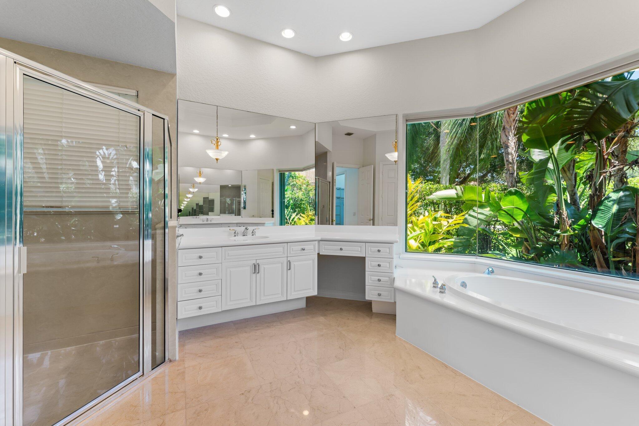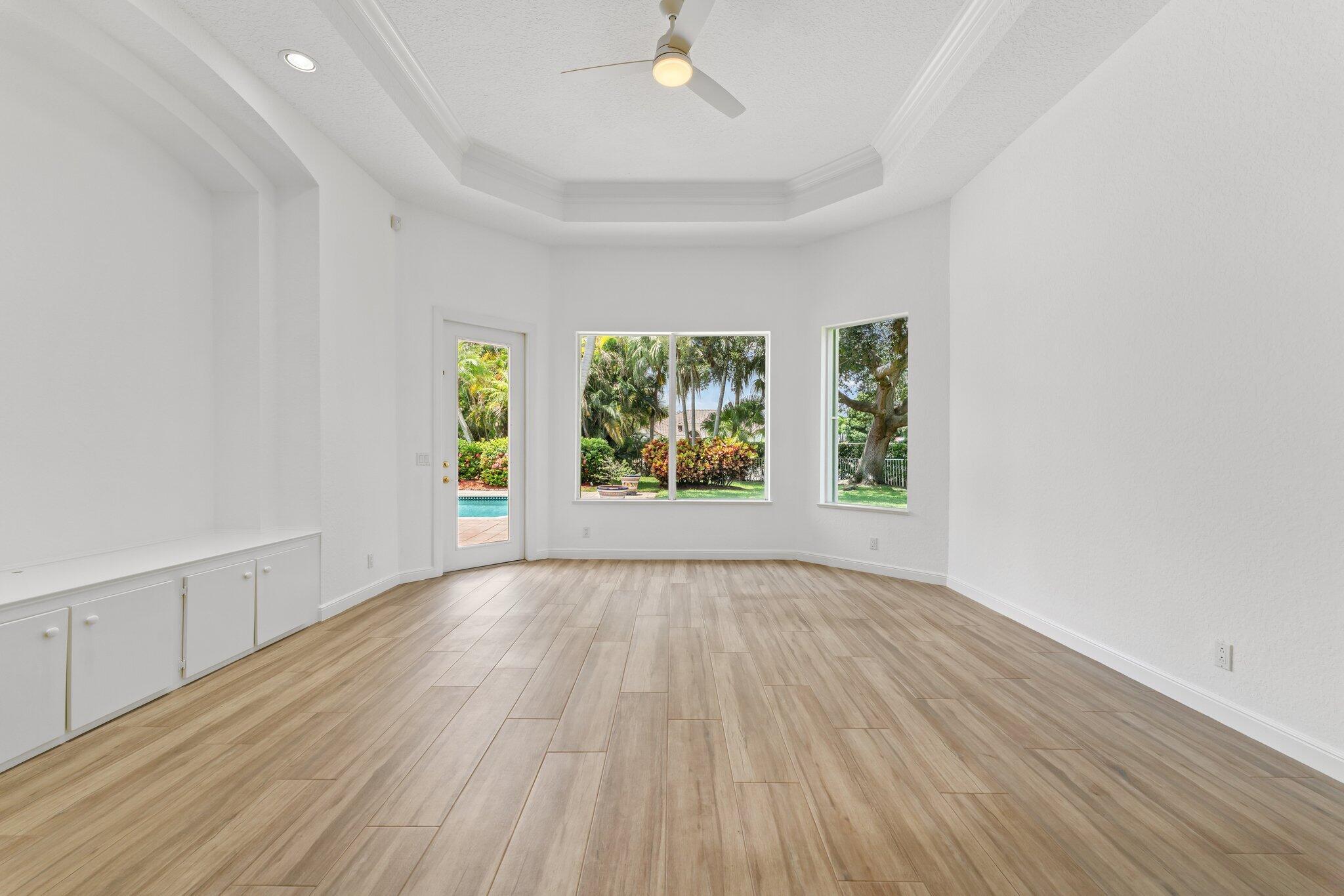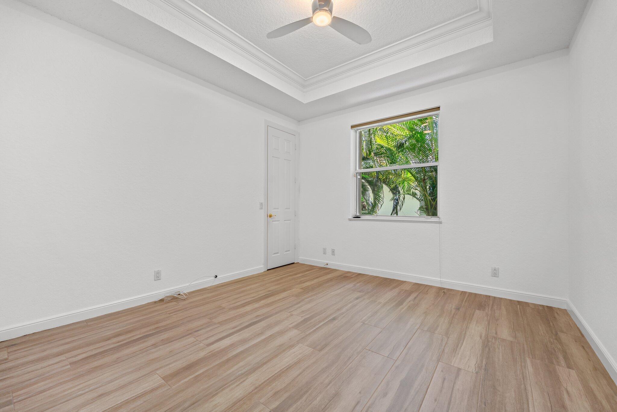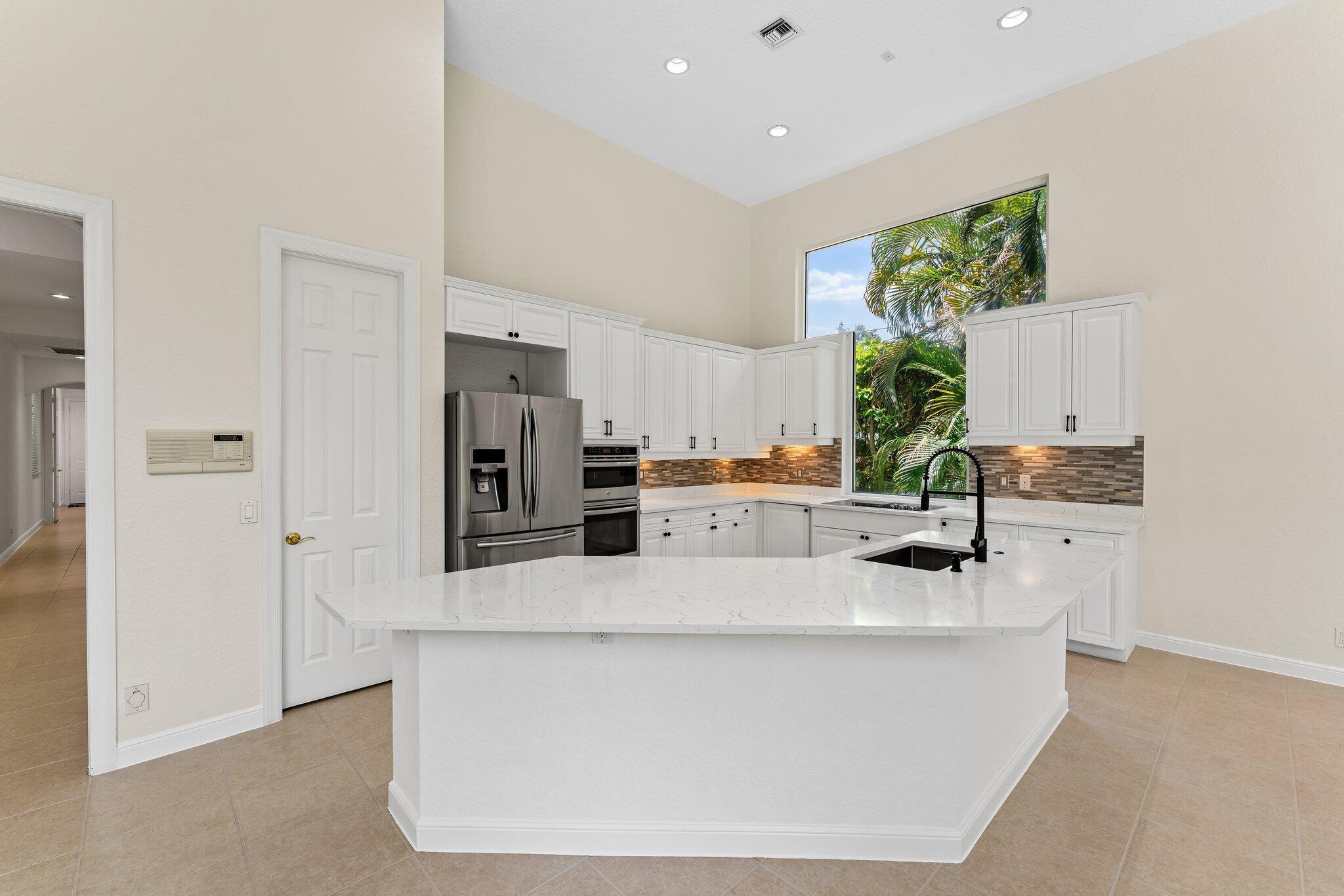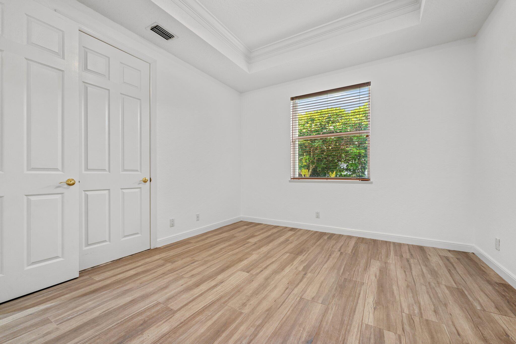 Incredible opportunity to own one of the largest, most expansive, premiere lots in the gated community of Bear Lake Estates, where equity membership to the golf club is not mandatory. This 4 bed, 3 bath plus home office, 4600 sq ft. estate was recently refreshed and sits on a point, corner lot of over 3/4 of an acre of lush, mature landscaping with a gorgeous pool taking center stage. Some features include: a recently renovated contemporary quartz kitchen, new porcelain tile flooring in bedrooms, formal dining room, dramatic ceiling height, multiple walk-in closets, 3-car garage, enormous private yard with a covered patio, expansive primary suite with his/her walk-in closets, and a beautiful spacious en-suite bathroom. Location cannot be beat with the proximity to Downtown West Palm Beach