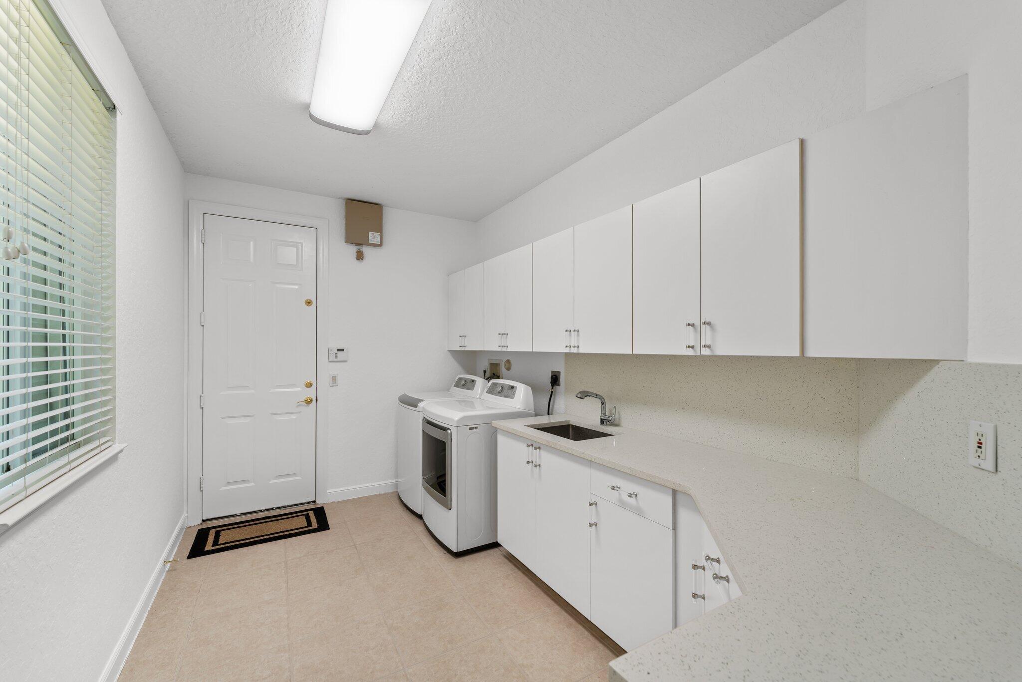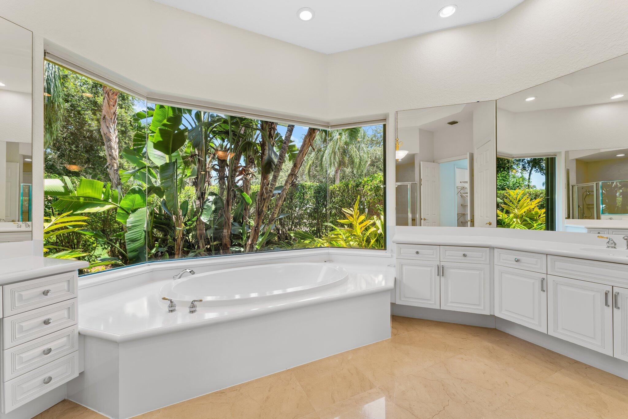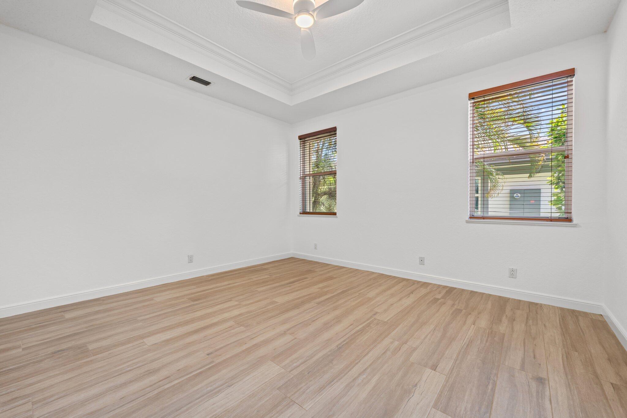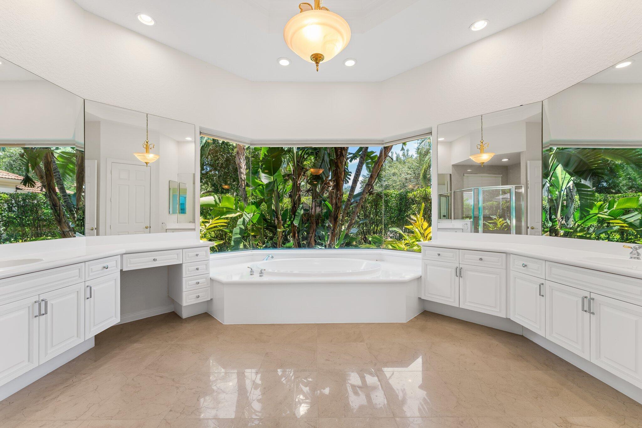 Incredible opportunity to own one of the largest, most expansive, premiere lots in the gated community of Bear Lake Estates, where equity membership to the golf club is not mandatory. This 4 bed, 3 bath plus home office, 4600 sq ft. estate was recently refreshed and sits on a point, corner lot of over 3/4 of an acre of lush, mature landscaping with a gorgeous pool taking center stage. Some features include: a recently renovated contemporary quartz kitchen, new porcelain tile flooring in bedrooms, formal dining room, dramatic ceiling height, multiple walk-in closets, 3-car garage, enormous private yard with a covered patio, expansive primary suite with his/her walk-in closets, and a beautiful spacious en-suite bathroom. Location cannot be beat with the proximity to Downtown West Palm Beach