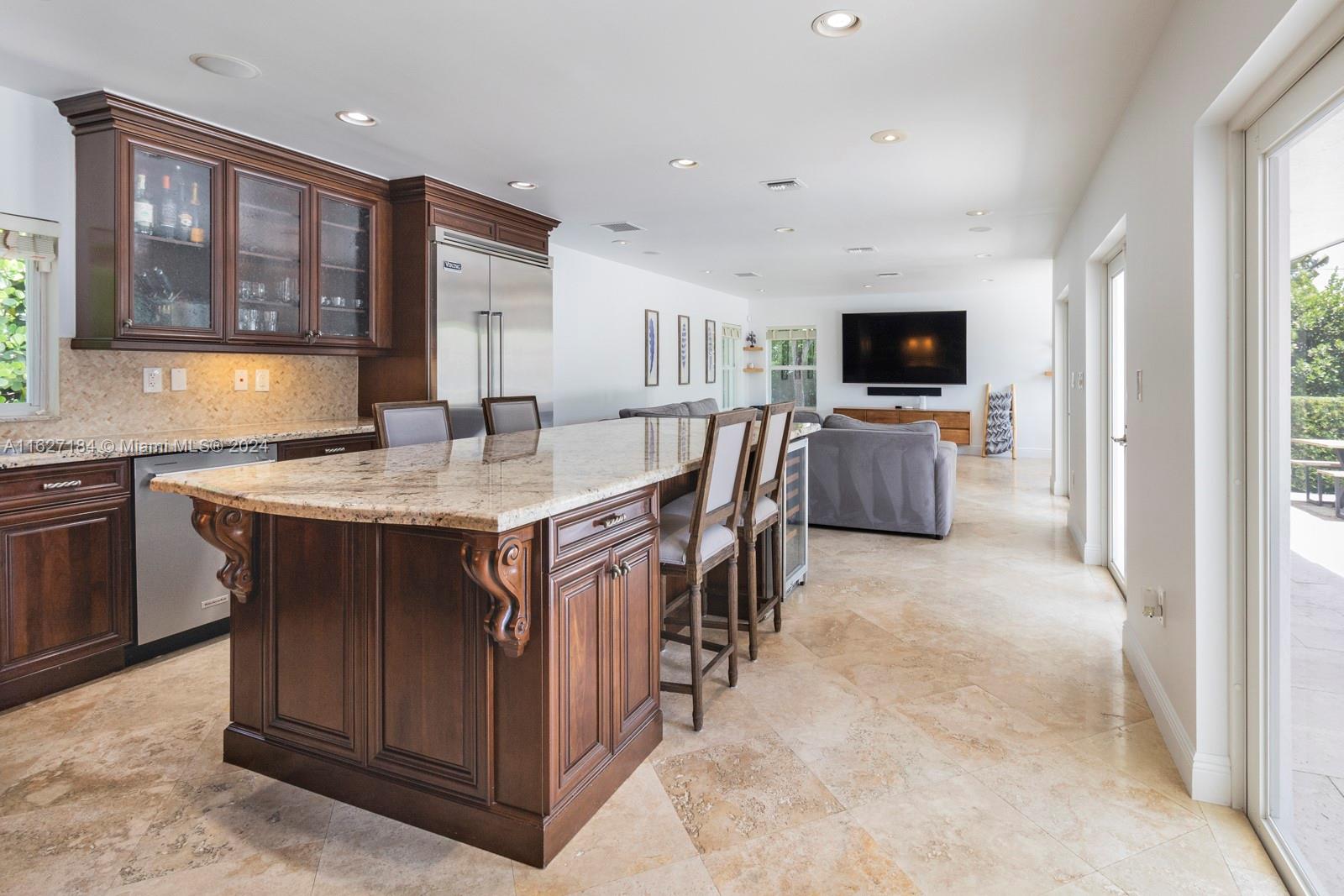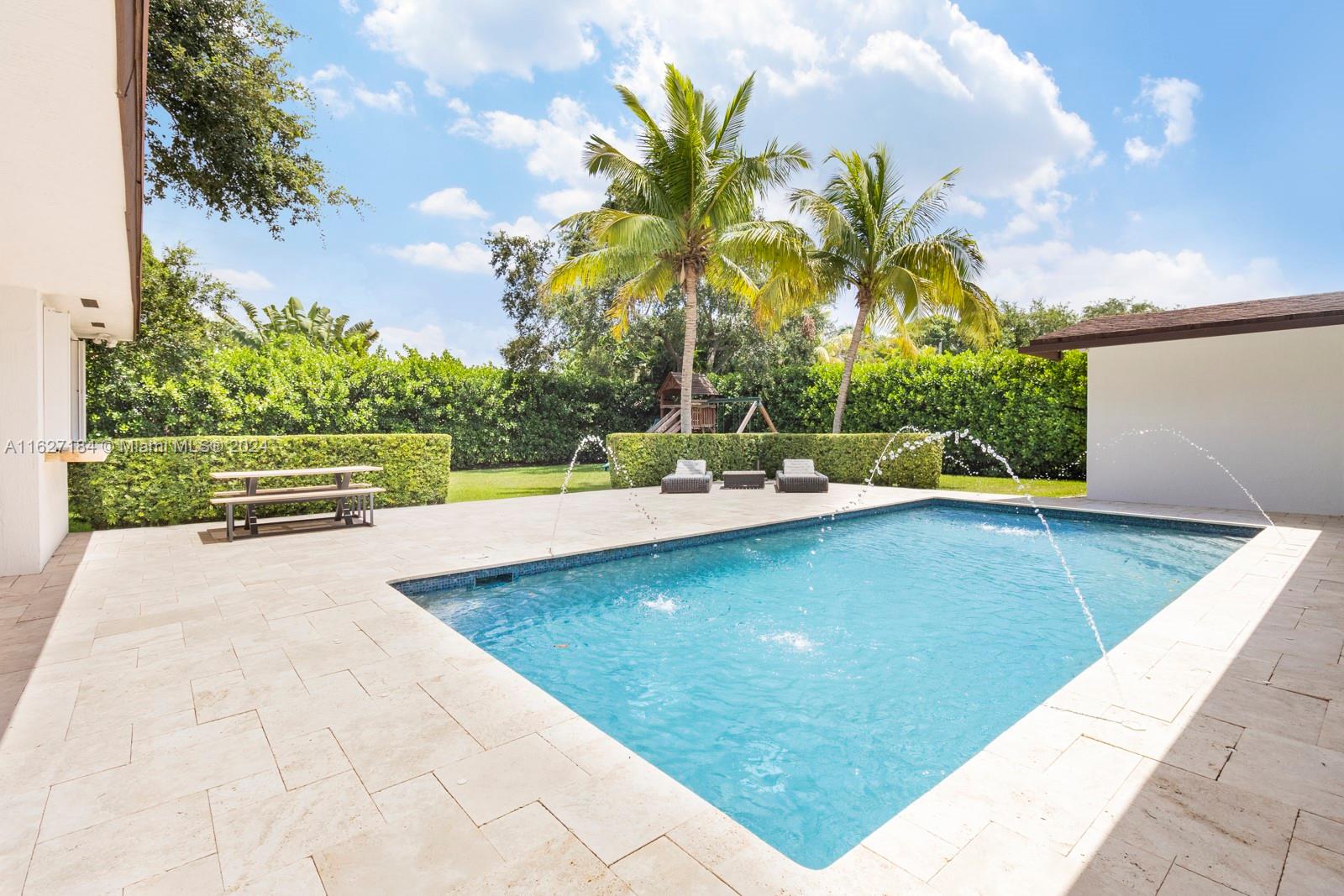 Discover your dream home on a peaceful tree-lined street in Miami’s coveted Continental Park neighborhood. This immaculate 3-bedroom, 3-bathroom residence offers 2,341 sq. ft. of luxurious living space on a sprawling manicured lot. The sophisticated split floor plan ensures privacy and comfort. The gourmet kitchen features custom cabinetry, granite countertops, a spacious center island, and high-end appliances. Adjacent to the kitchen is a cozy family room and formal dining area, perfect for gatherings. French doors open to a private backyard oasis with a sparkling pool, travertine-finished deck, and lush landscaping, ideal for relaxation and entertainment. Enjoy suburban tranquility while being minutes from top-rated schools, parks, and Miami’s premier dining and shopping destinations.