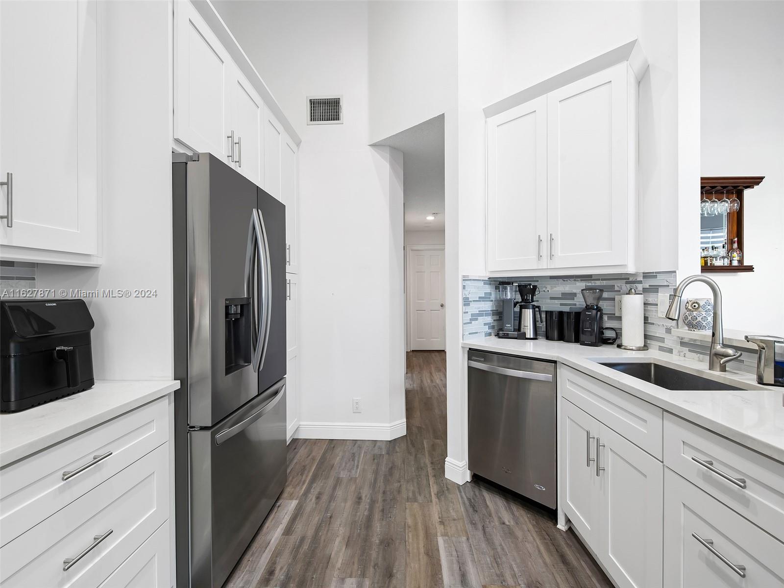 Welcome home to this meticulously kept, Balboa model - offering 3 bedrooms 2 bathrooms. The home is located in the boutique gated community of Hibiscus Island in the heart of Weston. Upon entering the home, you will enjoy the vaulted ceilings, making it a bright and aery flow through. The property offers an extensive list of upgrades, including, new kitchen with 42 inch cabinets and quartz counter tops, new appliances, updated bathrooms, new vinyl flooring throughout, newly finished pavered driveway, accordion shutters and impact glass doors. Neighborhood offers a community pool, basketball court and kids playground.