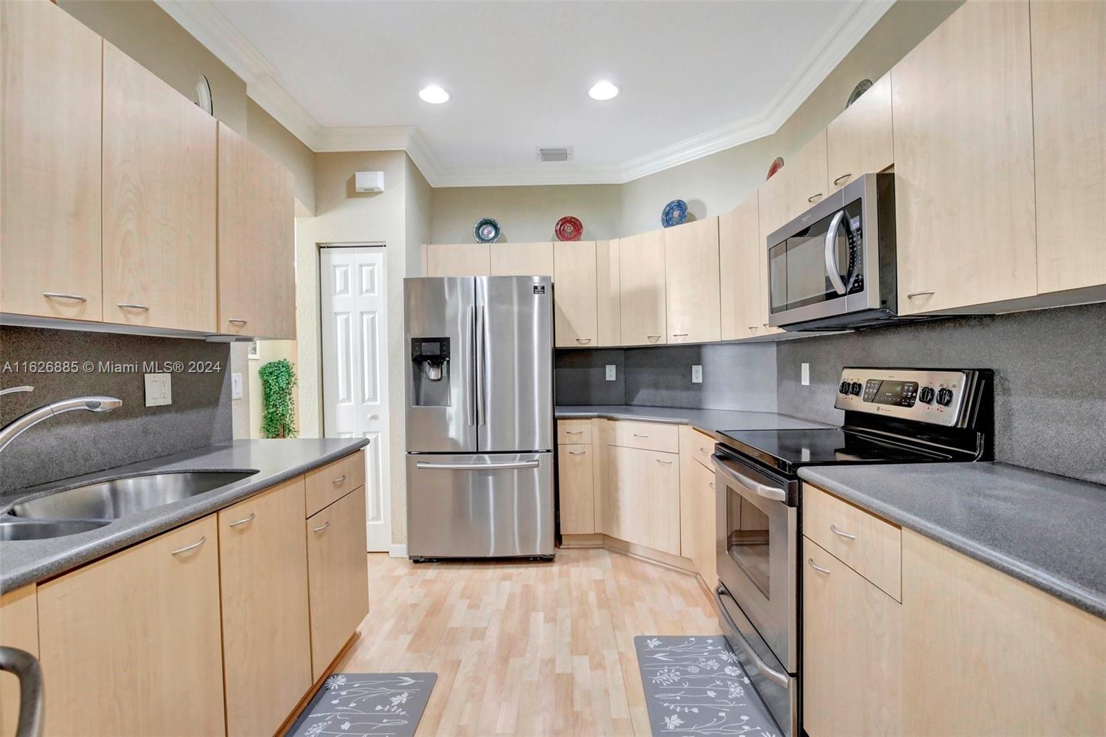 Located in the prestigious gated community of Savanna in Weston, this single family home is a 3 BED 2 BATH with a 2-car garage. There is tons of natural light as you walk through the front door and the home has a perfect split floor plan. Wood laminate flooring throughout, accordion shutters, stainless steel kitchen appliances, and more. AC 2019. The community has incredible amenities including 24-hour security, clubhouse with a café, water park, playground, basketball court, 2 POOLS, and more! A+ Schools from elementary to high school. Do not miss out on this opportunity!