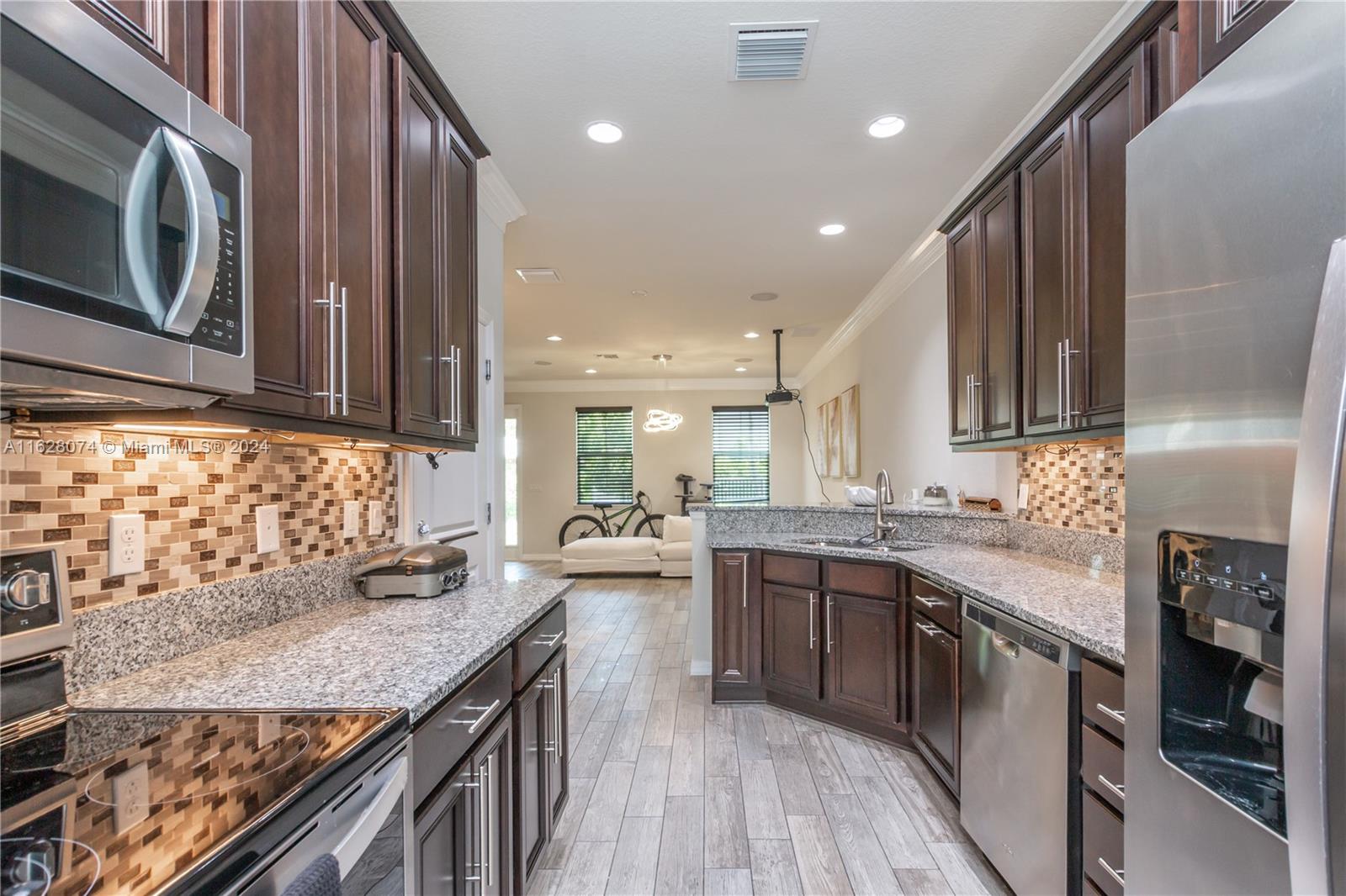 Beautifully updated townhome. Located in the perfect spot in Hollywood. Super safe, brand new gated community. This large unit comes completely updated in every room and boasts 12' high ceilings. In wall speakers and a roll down projector make the perfect movie or get together night. Beautiful chandeliers and lighting fixtures throughout. New appliances and modern kitchen with backsplash. Oversized rooms, especially the primary suite and bathroom. Impact windows and metal roof this house is built to last. 1 car garage and parking spaces behind. Very low HOA with great amenities.