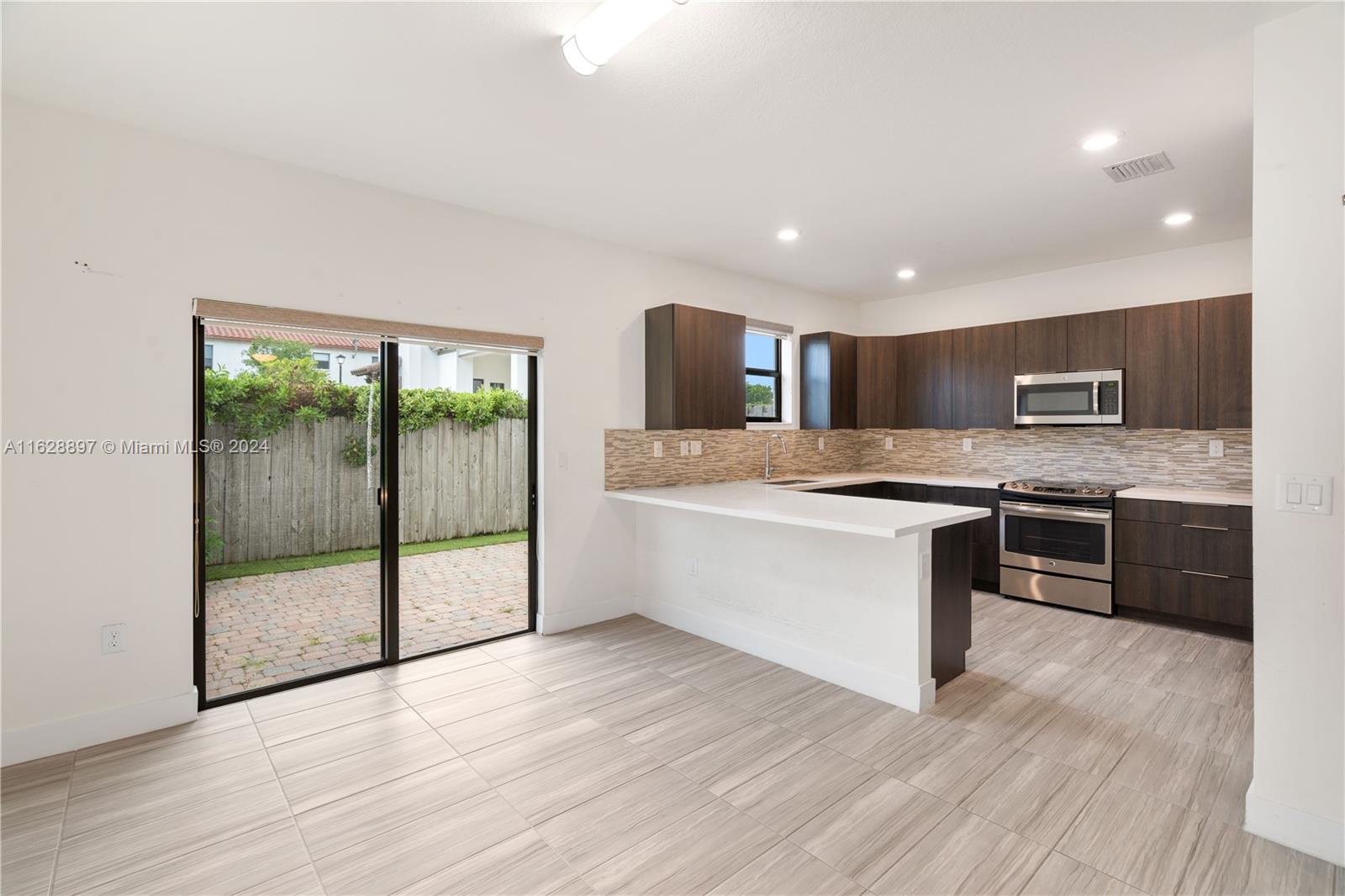 Price to sell! One of the biggest 4 beds townhouses in a quiet gated community. This corner home features 4 beds, 2.5 baths with a modern and spacious kitchen, stainless steel appliances, quartz Countertop in a eat-in kitchen ideal to share With Family/Friends. Tile floor downstairs and laminate on main areas of the second floor. Full size Washer & Dryer. One car garage and parking for up to 3 more cars on the driveway. Nice paved patio for outdoor entertainment. No back neighbors. The residents will have access to one of the Largest Club Houses in Doral with Resort-style Pool, Fitness Center, Playground and Splash Park, Tennis Court, Basketball Course, Business Center, Jacuzzi and soon a Soccer Field as per developer plans.