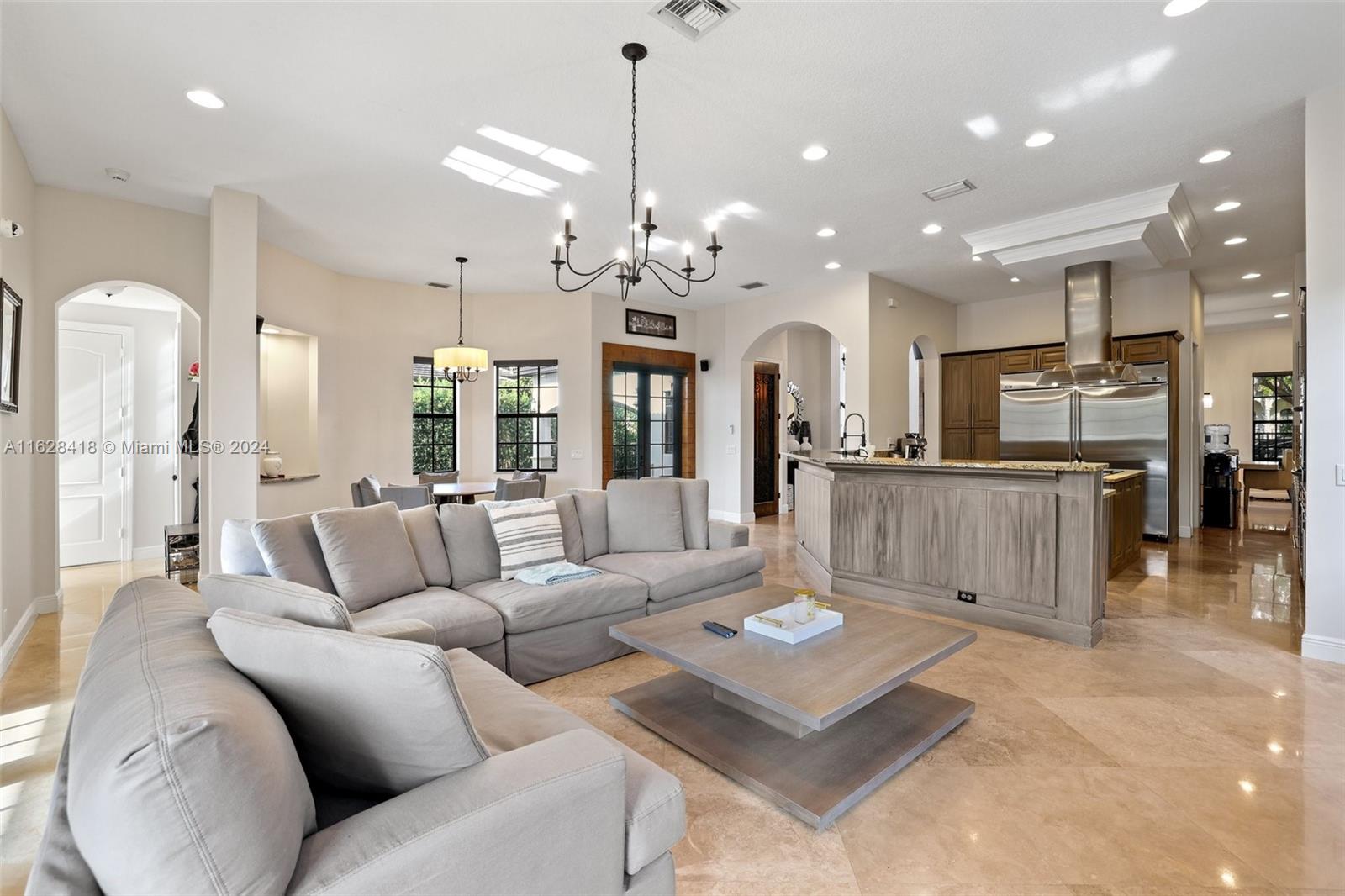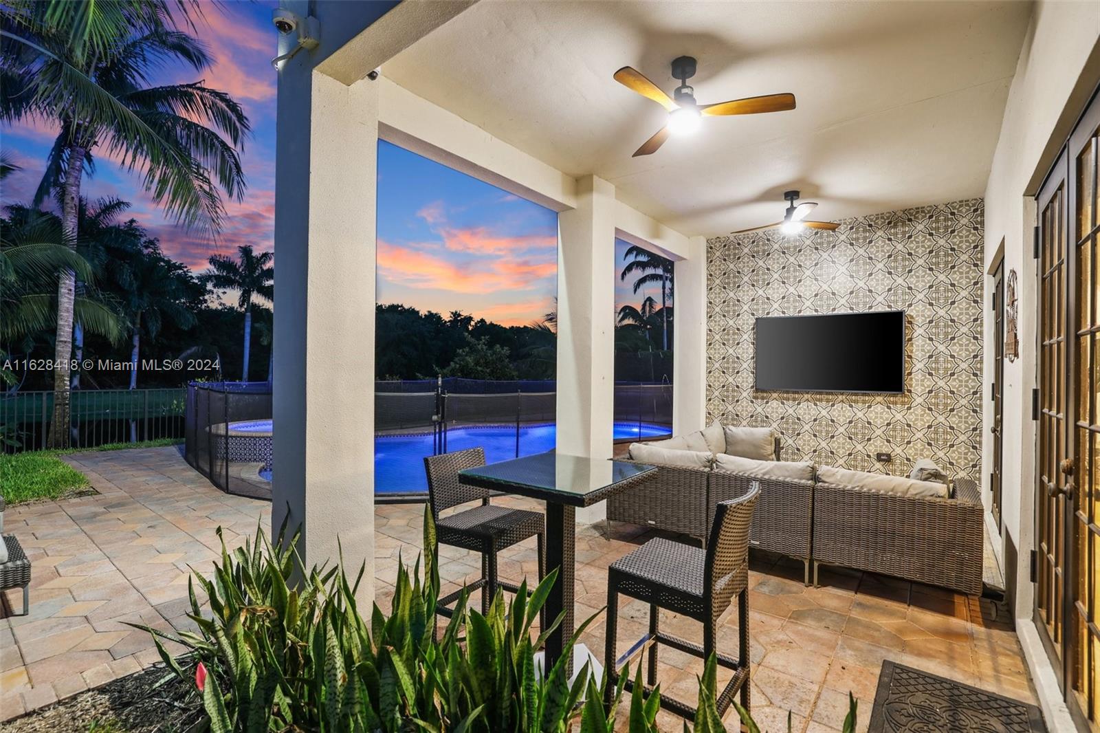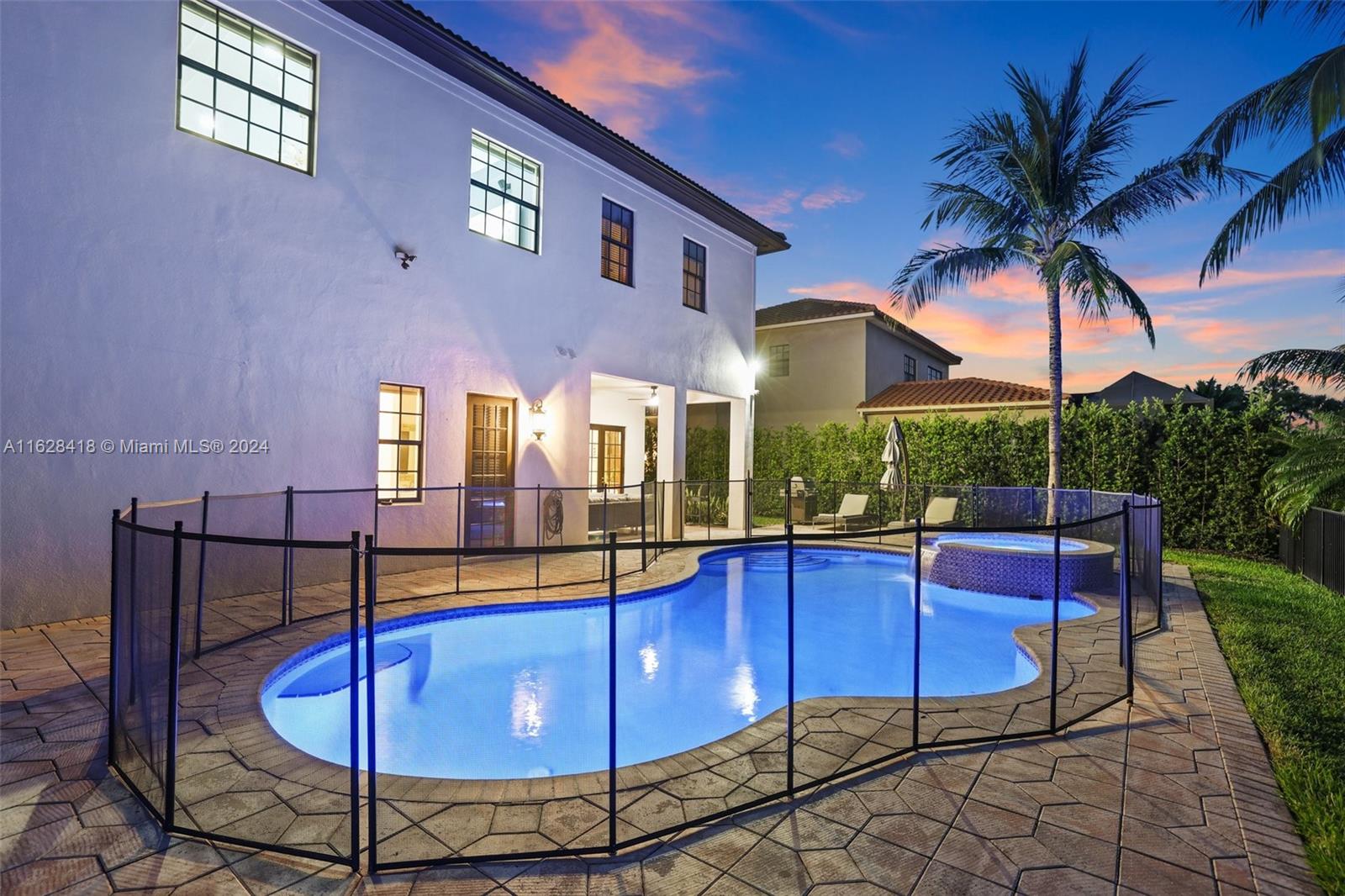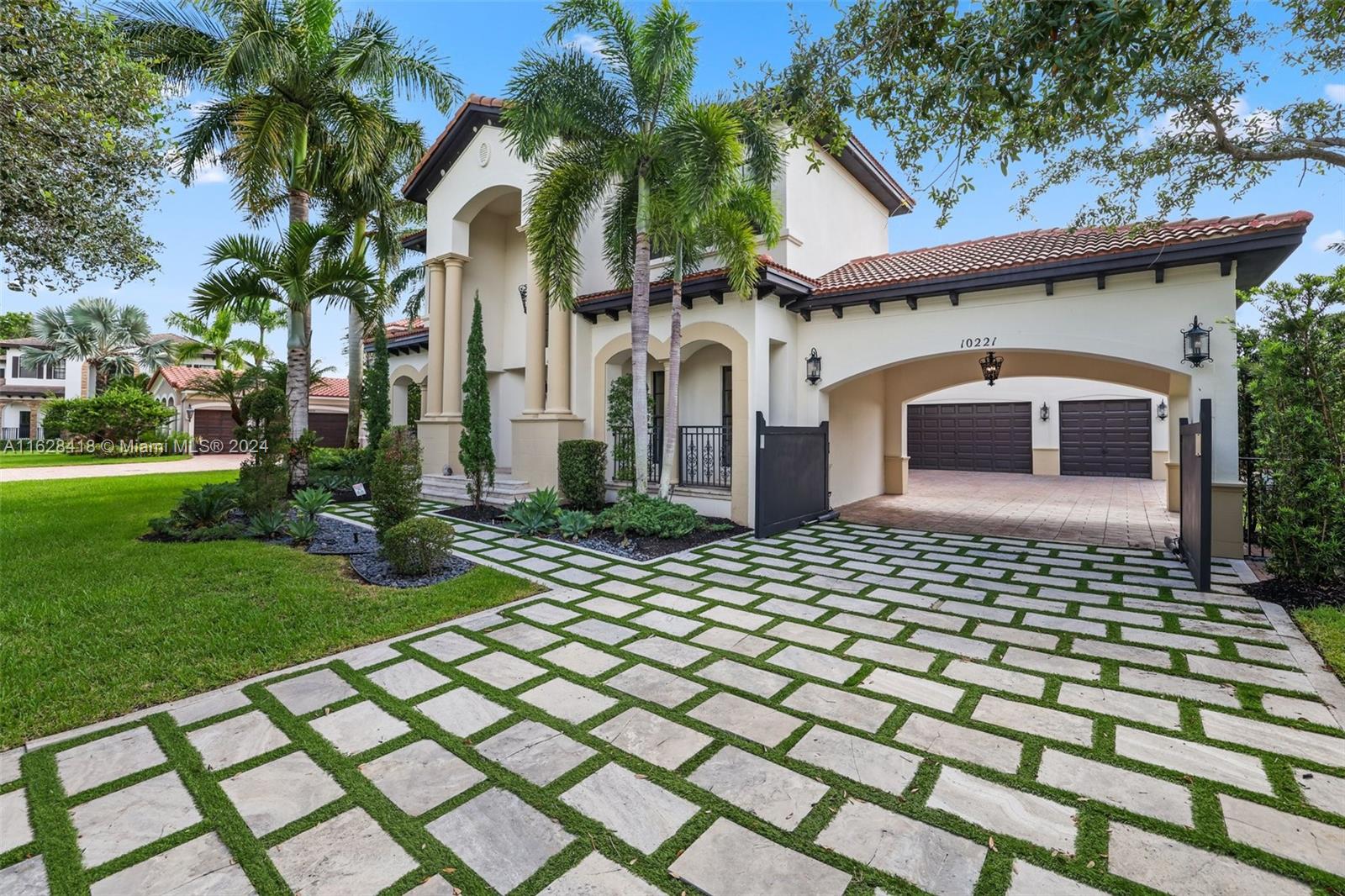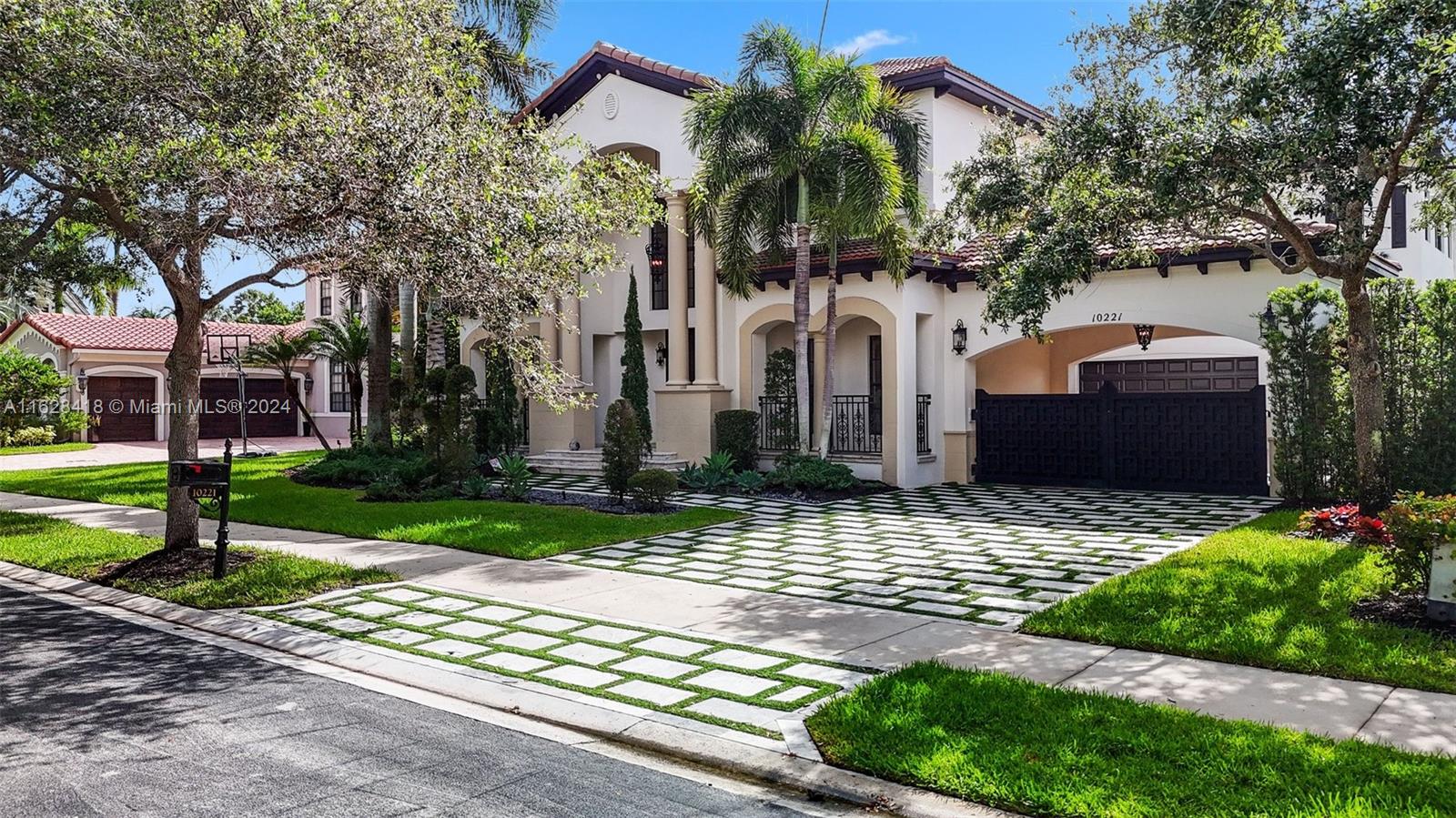 Gorgeous curb appeal at the front, not a single neighbor to the back, and completely turnkey! Welcome to your new home in the intimate enclave of Parkland Estates. Featuring 5 Bedrooms, 4.5 Bathrooms, over 4,200 sq ft of living space, this property is truly a head-turner. Meticulous landscaping with a modern marble driveway are punctuated by well-placed accent lighting and a custom gate into the courtyard. From the front door, you are struck with double height ceilings, a soaring fireplace, and countless impact windows that offer safety while bringing in tons of natural light, that can be easily dimmed at your convenience with remote blinds. The open kitchen and living space looks out onto the sunny backyard and pool/spa. Walk or bike to Parkland's A-Rated schools and best parks.