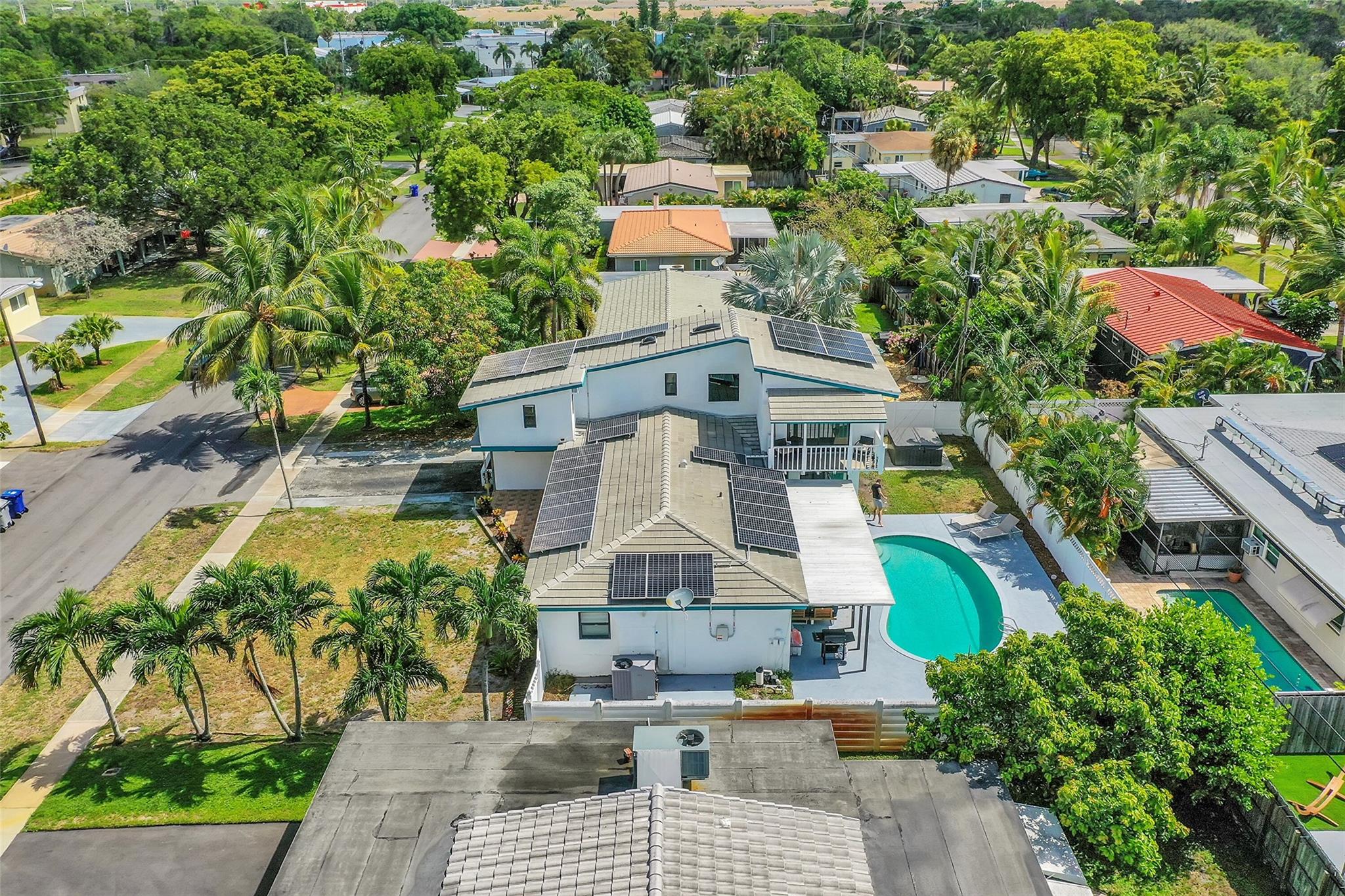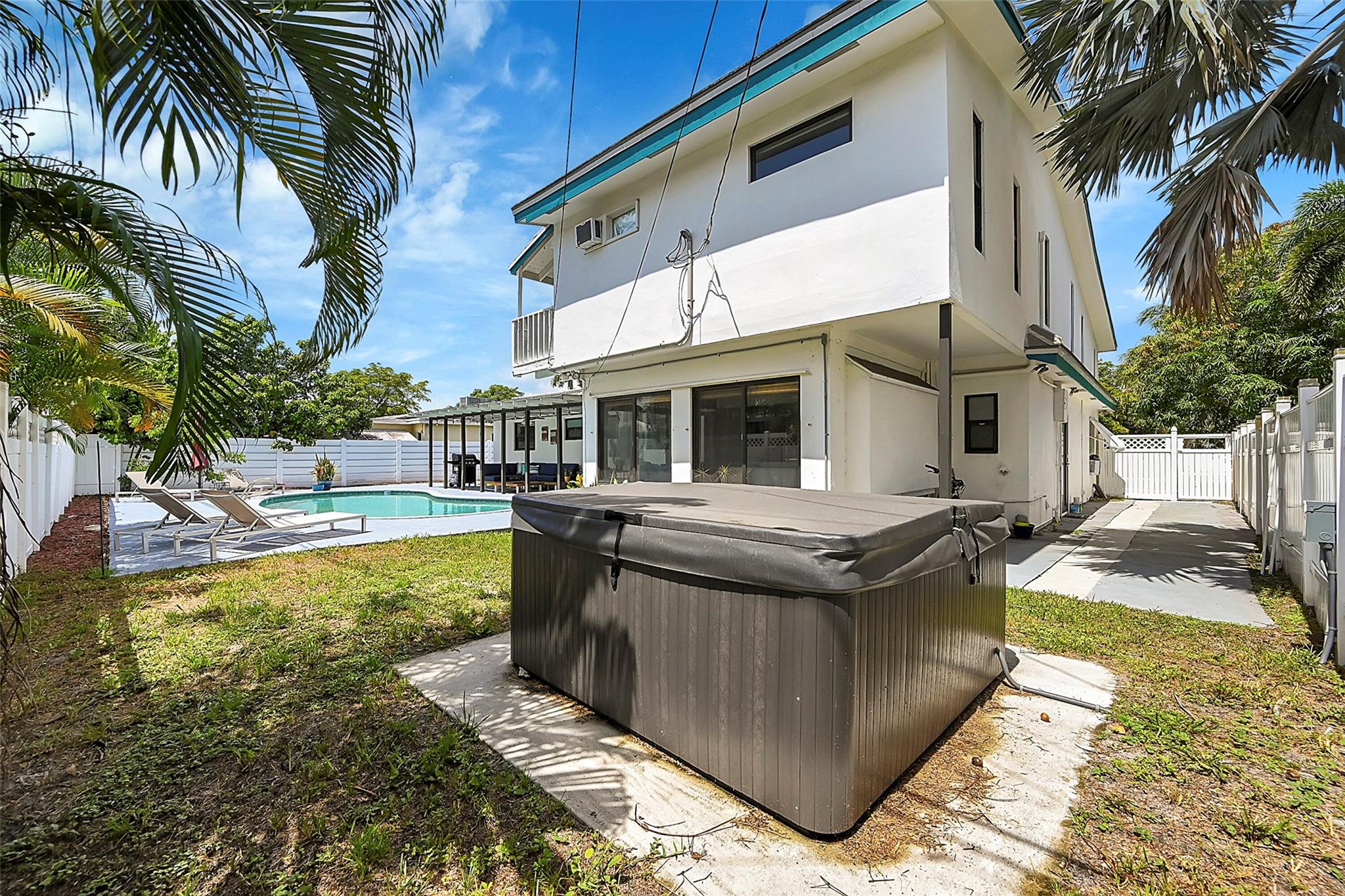 Large two story home with a pool, hot tub and great backyard perfect for entertaining in Lyons Park. Almost 2500 square ft under air living area with a formal dining area and family room. Kitchen has updated white cabinetry, granite counters, stainless steel appliances. New roof, new ac, solar panels, pvc pipes, and new hurricane impact windows and doors. One primary bedroom upstairs with vaulted ceilings, large walk in closet, double vanity, extra large shower with a deck overlooking the pool. One primary bedroom located on the first floor. Tile throughout, plenty of storage space. Close proximity to the newly renovated Pompano Beach pier and restaurants. Great home for year round living or Airbnb.