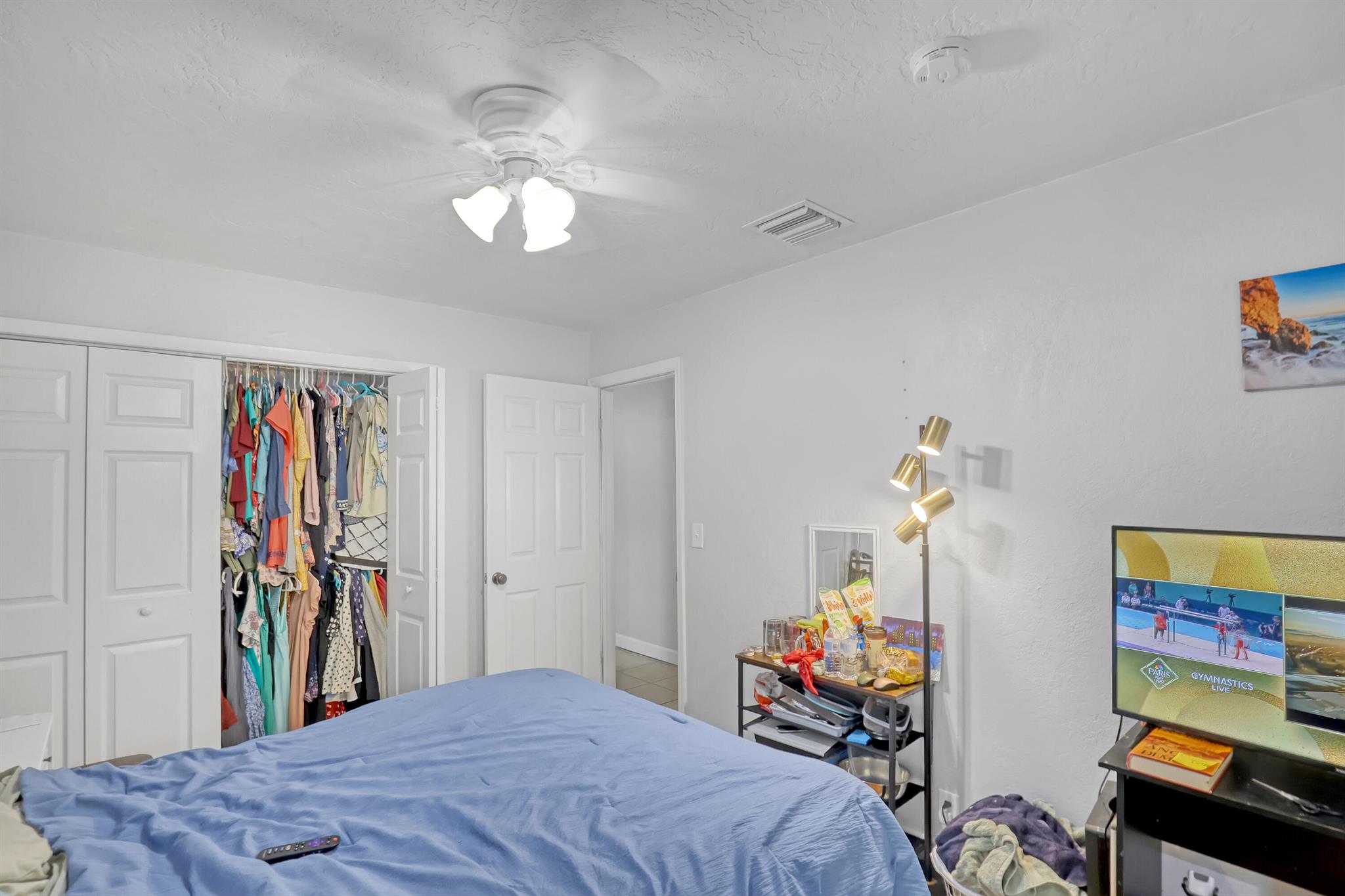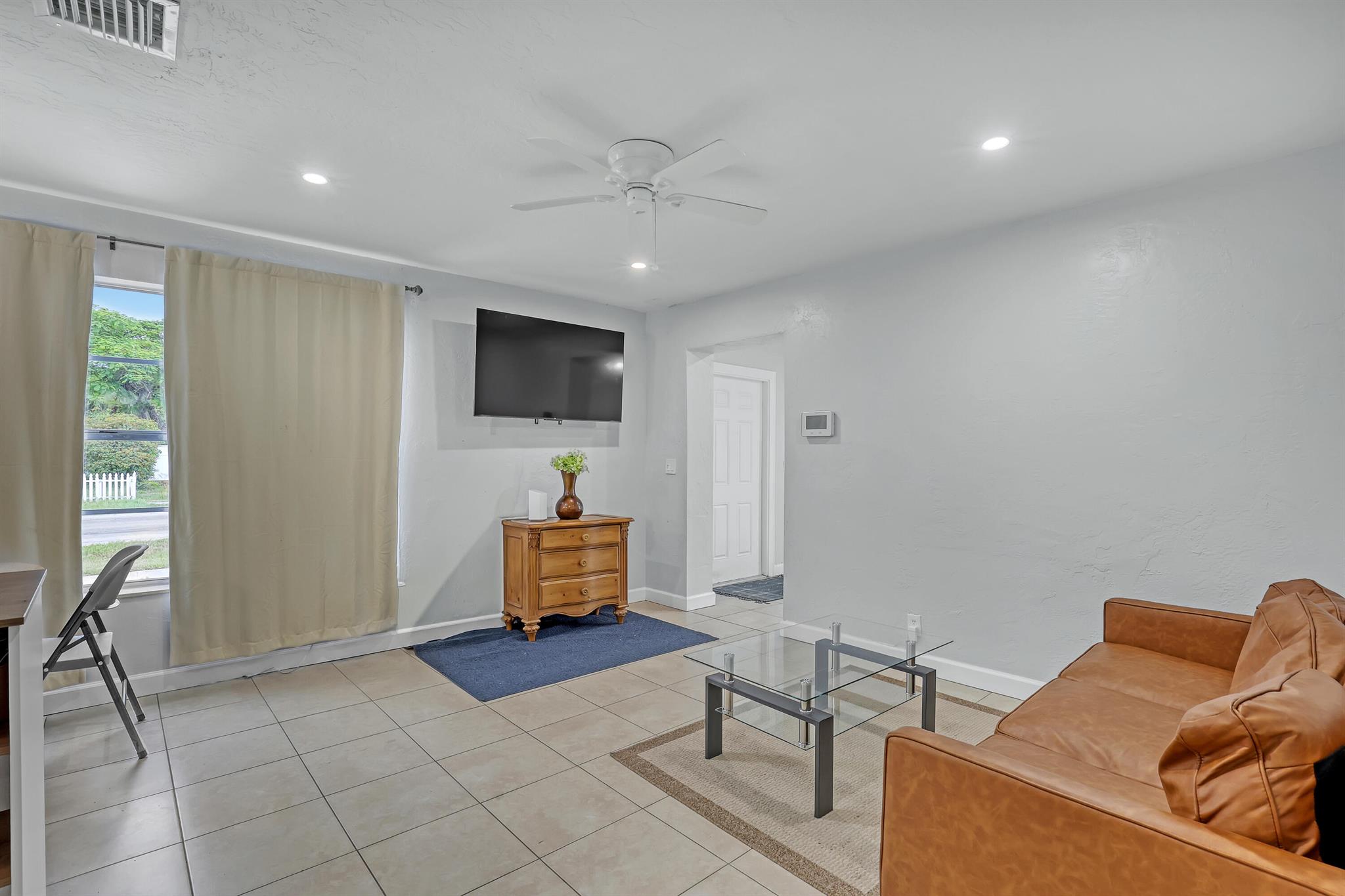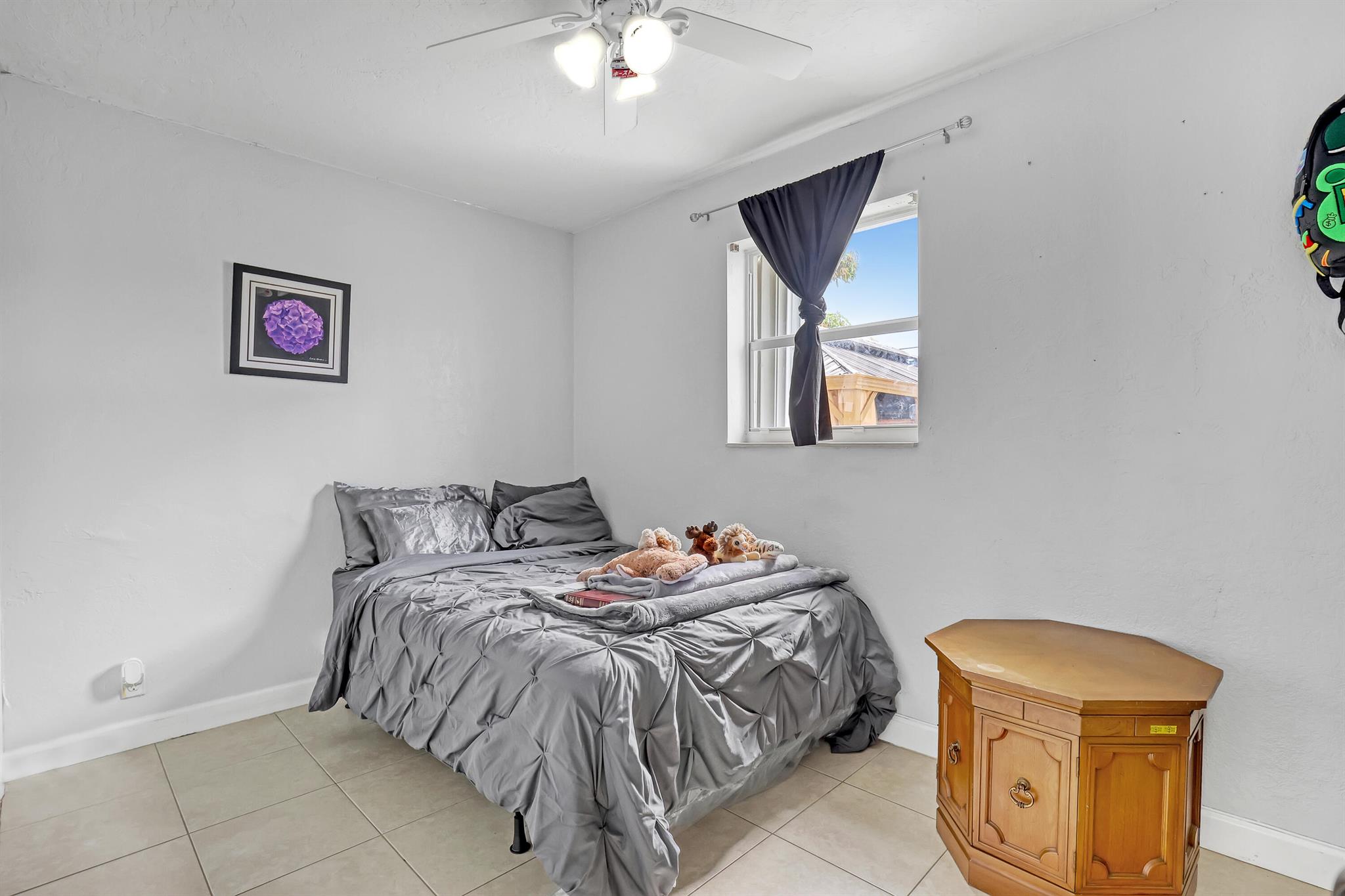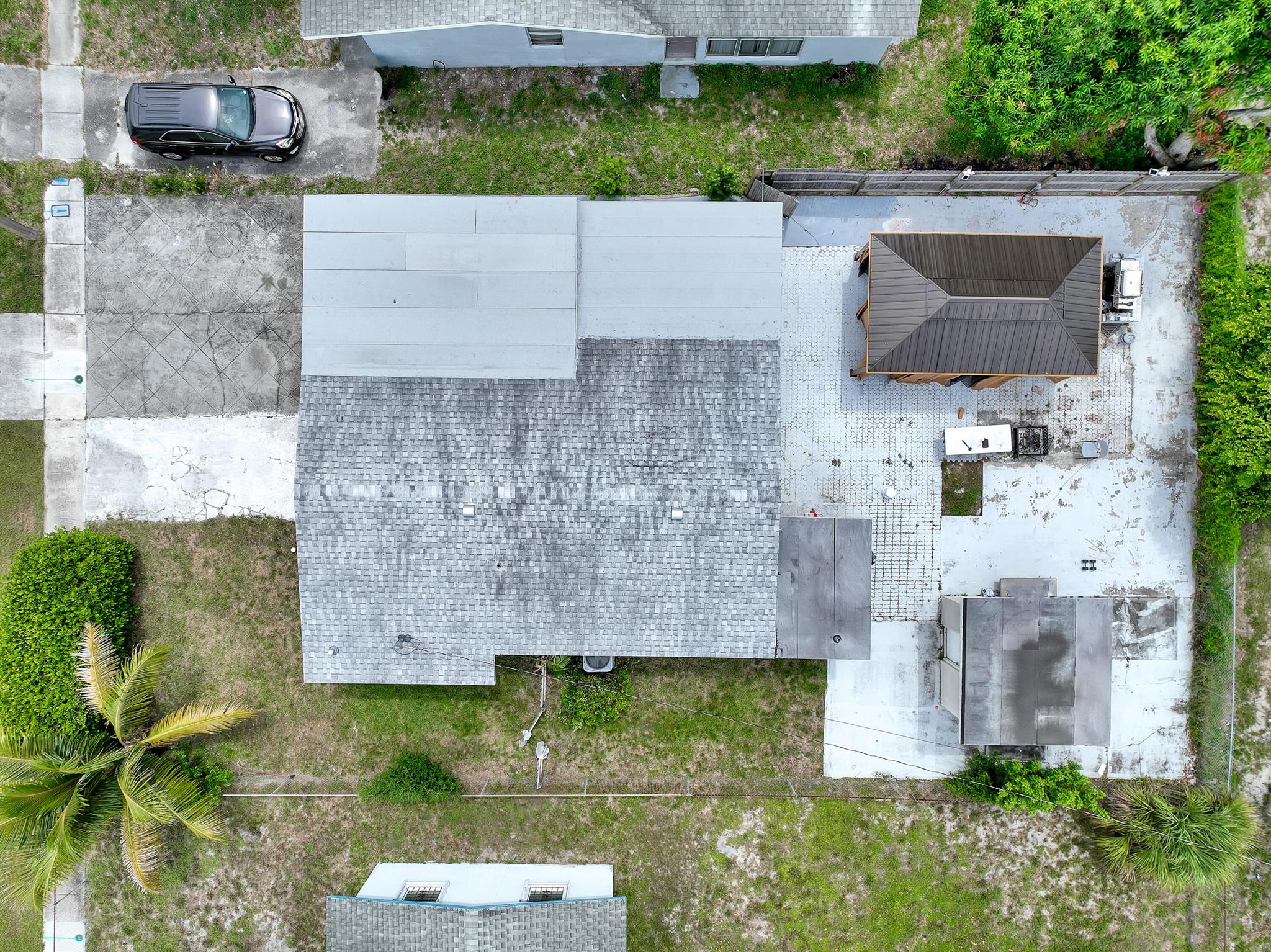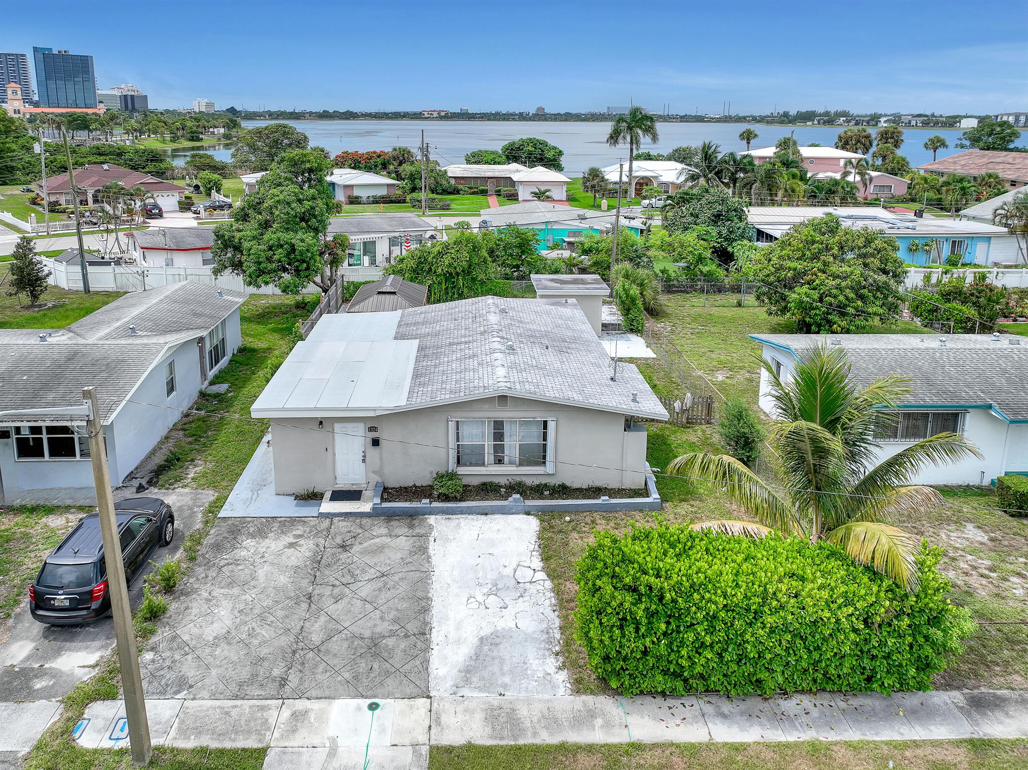 Enjoy this spacious home just a short drive from the outlet mall and downtown West Palm Beach!Spacious Master bedroom with exit door to backyard from master bath. Open kitchen and living room area with granite countertops, accordion shutters throughout. AC recently serviced and roof completely resealed in 2023 for additional life span.Brand new large metal roof gazebo in backyard conveys. Detached laundry room with plenty of storage space. Move in ready!