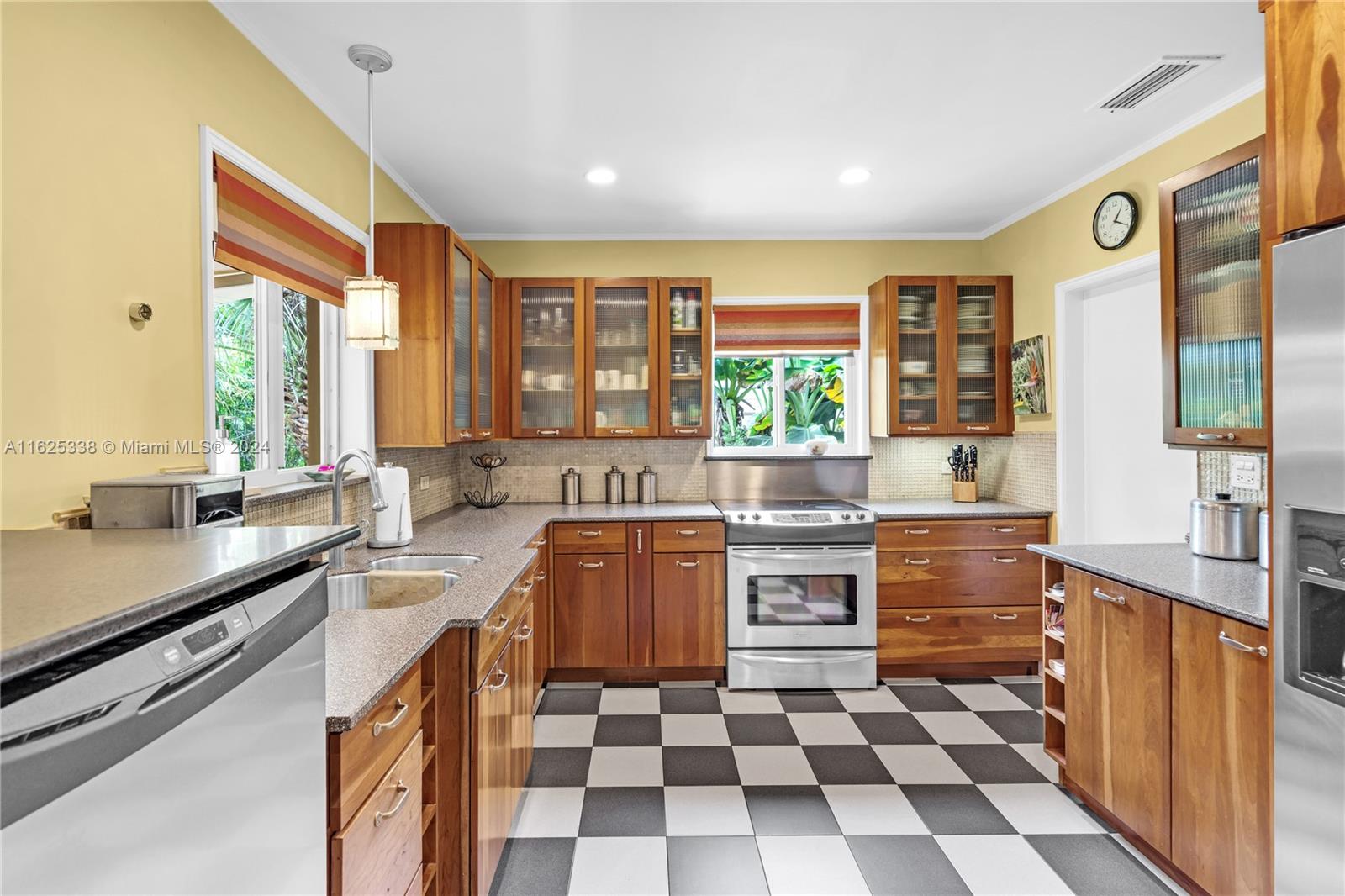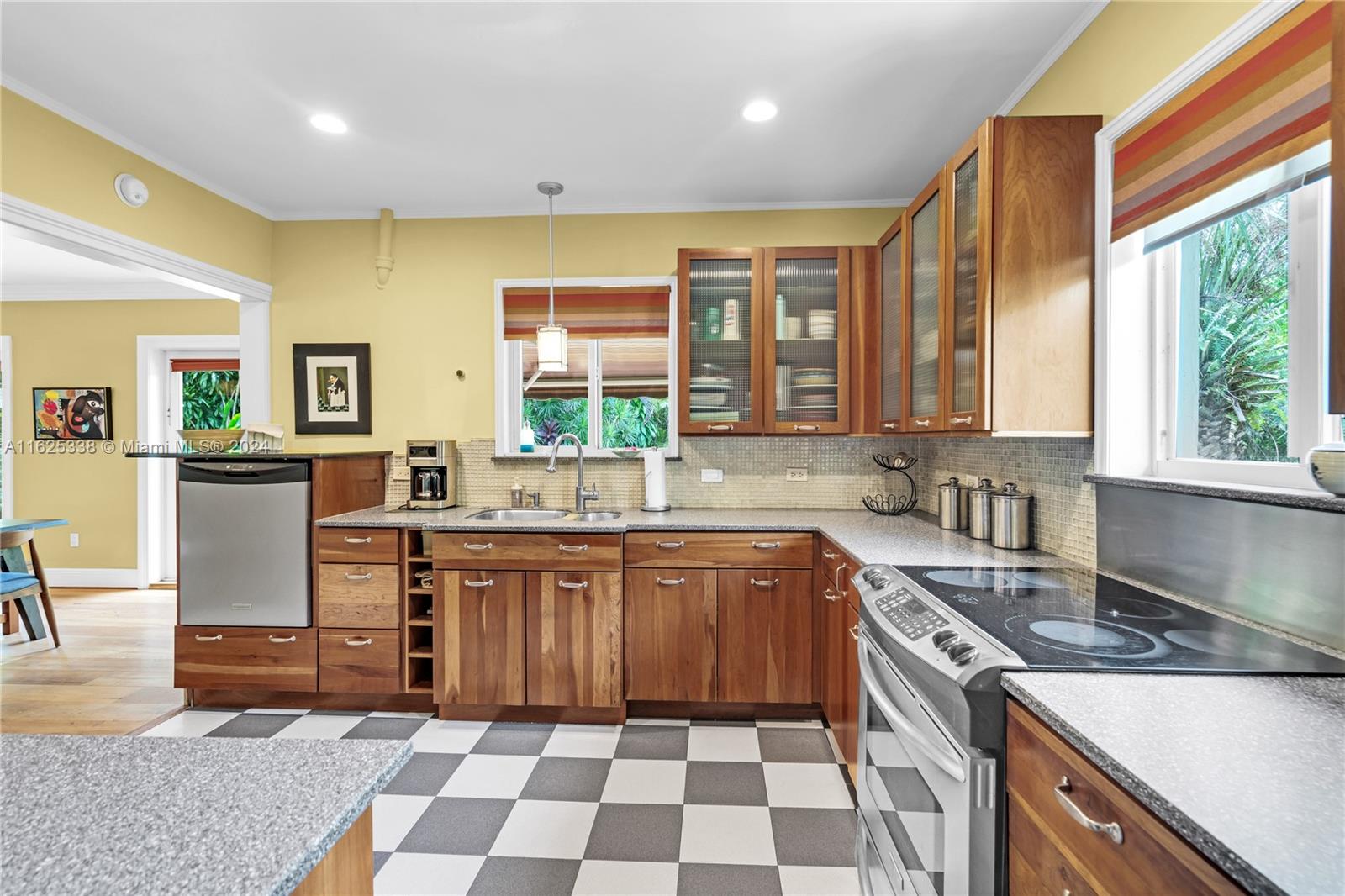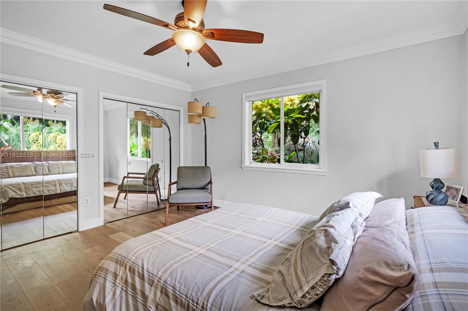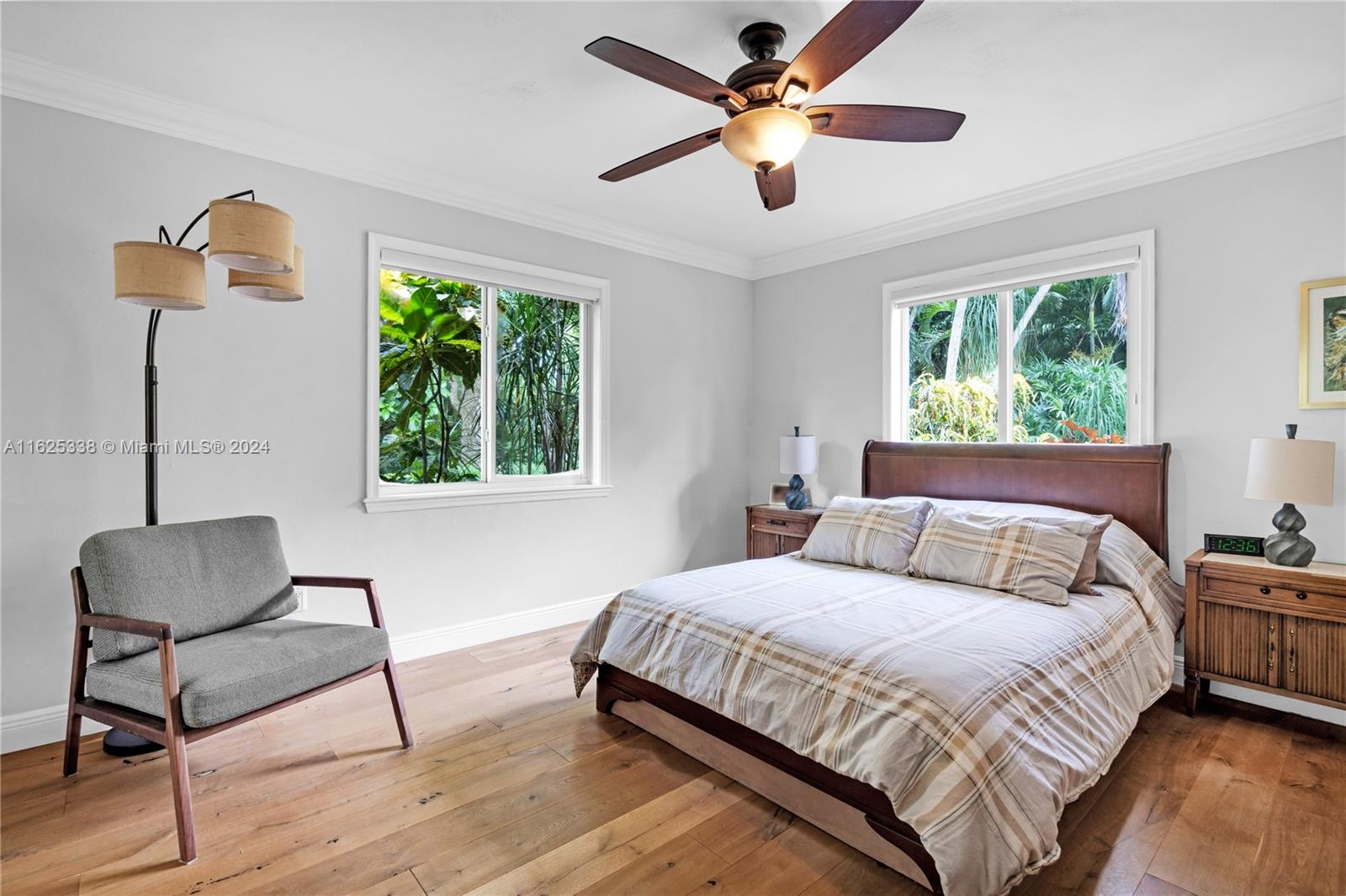 Welcome “Palm Zen Manor” - An updated & sleek single-family on a double lot in prime south Gables location. This residence boasts 1,661 sq ft with an open concept design & tons of natural light opening to relaxing garden views throughout. The moment you walk up you are greeted by a koi pond & fountain. When you step inside the home is decked w/ beautiful Oak Wood Floors, a new AC unit, updated plumbing, impact windows & doors, newer kitchen w/ S/S appliances. Spacious bedrooms & primary suite. The meticulously landscaped yard is a serene escape, ideal for relaxing or hosting gatherings & is the ultimate private escape. The home has an expansive deck ready for a possible addition. Covered lenai with sunsetter awning. Room for pool. Minutes from South Miami & Downtown Coral Gables.