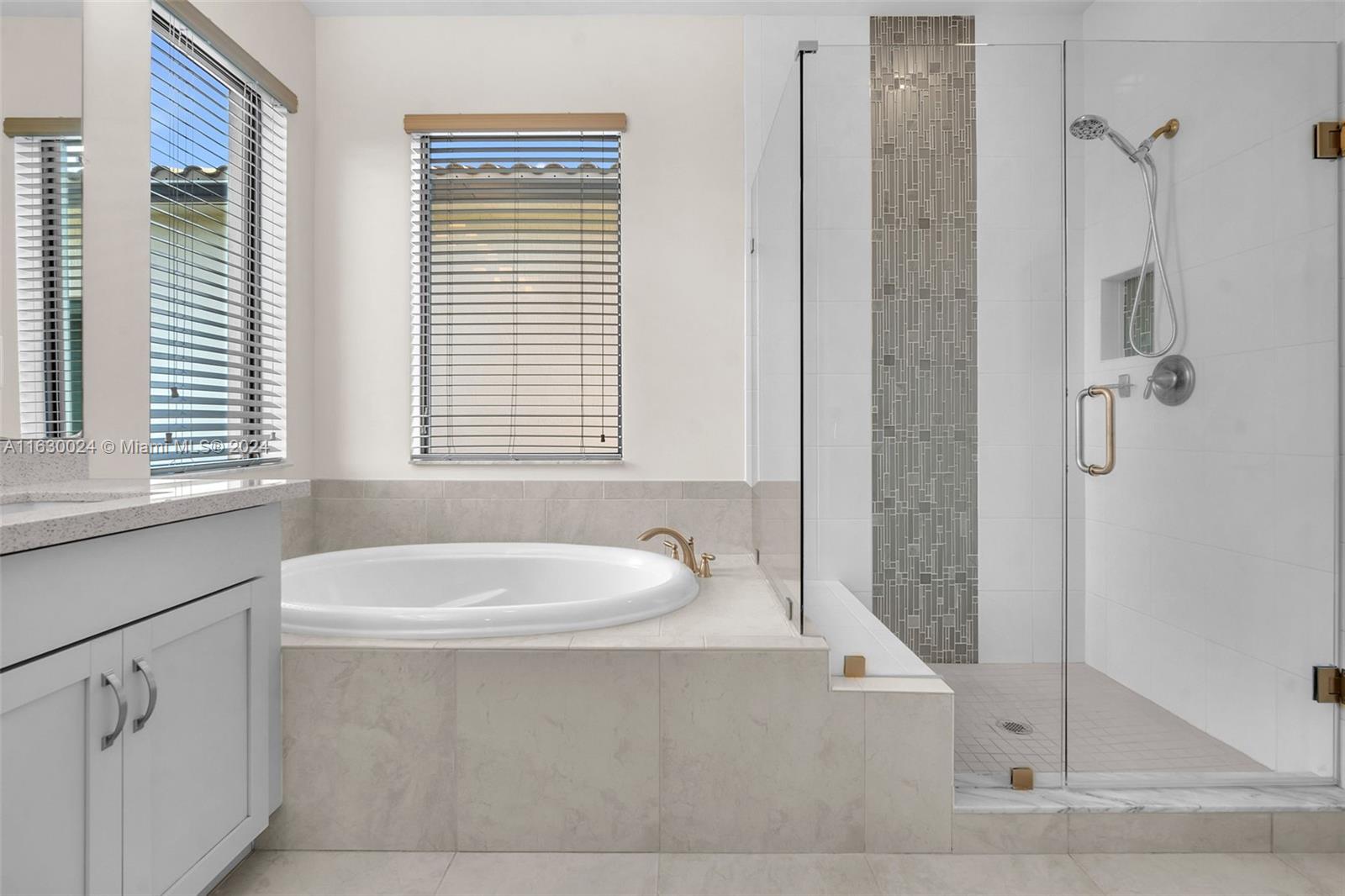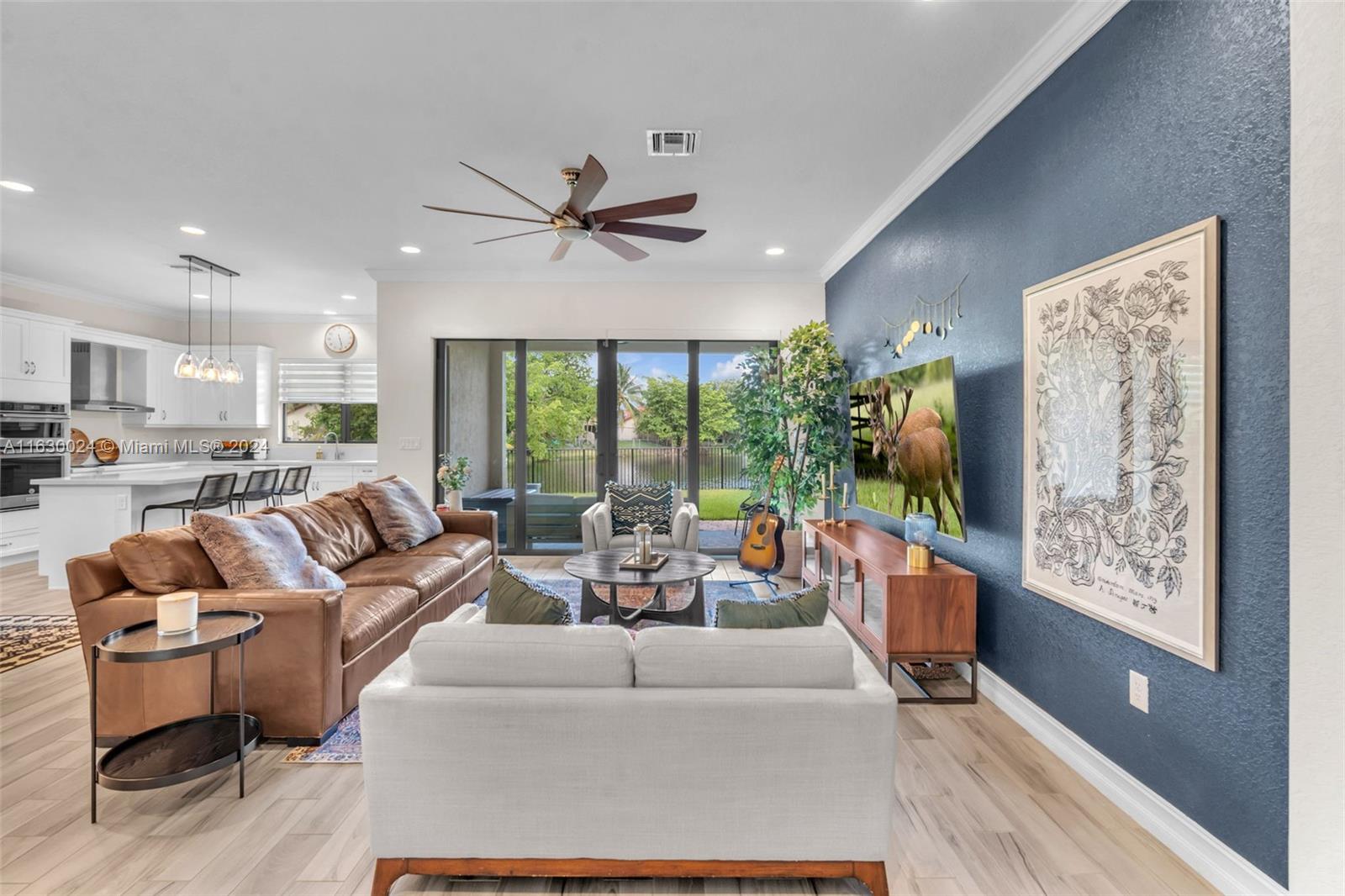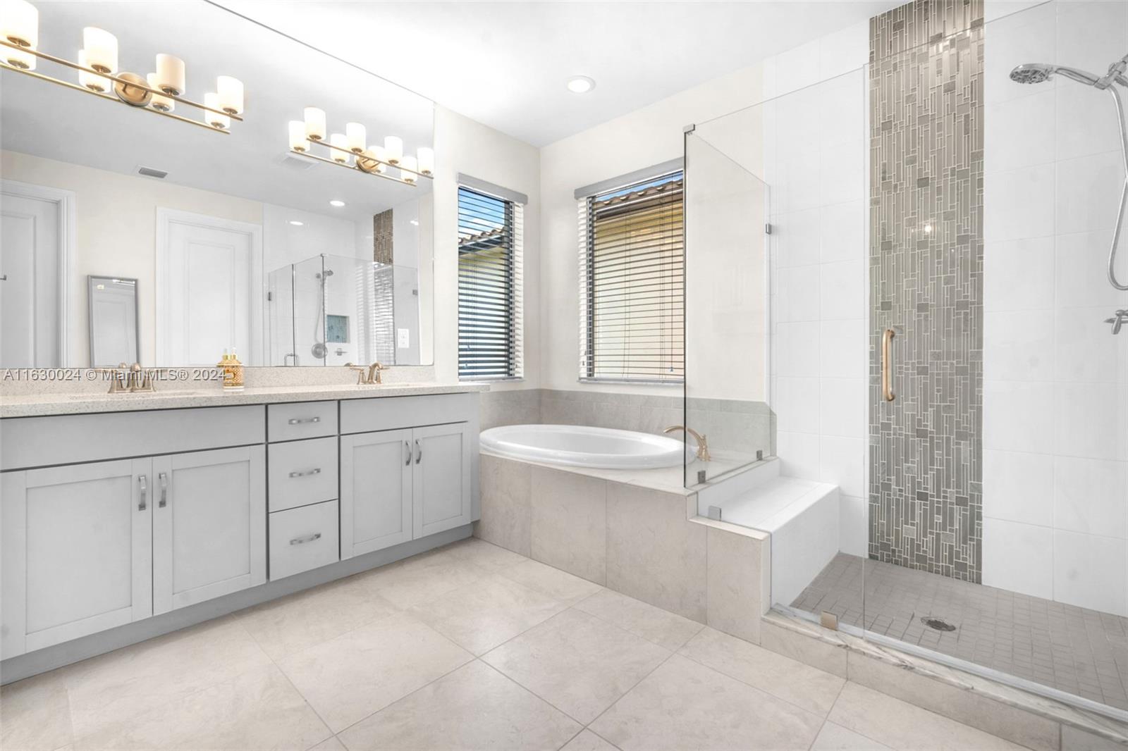 Exquisite modern 4 bed/3 bath home on end lot w/impact glass throughout. Enter through lush green walk & step through front door to open concept living space with clear view to lawn & lake out back. Look left to stunning kitchen with upgraded Kitchen Aid apps, speckled white quartz counters w/counter top stove & in wall ovens + sleek center isle with cabinets. Ground floor has light wood tiles throughout & elegant ceiling fans & light fixtures + white zebra blinds. Convenient bedroom & full bath on 1st floor; extra storage space. Upstairs carpeted. Spacious mezzanine +3 bedrooms & laundry with tub & linen closet. Master has glass enclosed shower, soak tub & lovely finishes. All bedrooms have ceiling fans. This wonderful home is close to shopping, I75 Gated Community, has heated pool & gym.