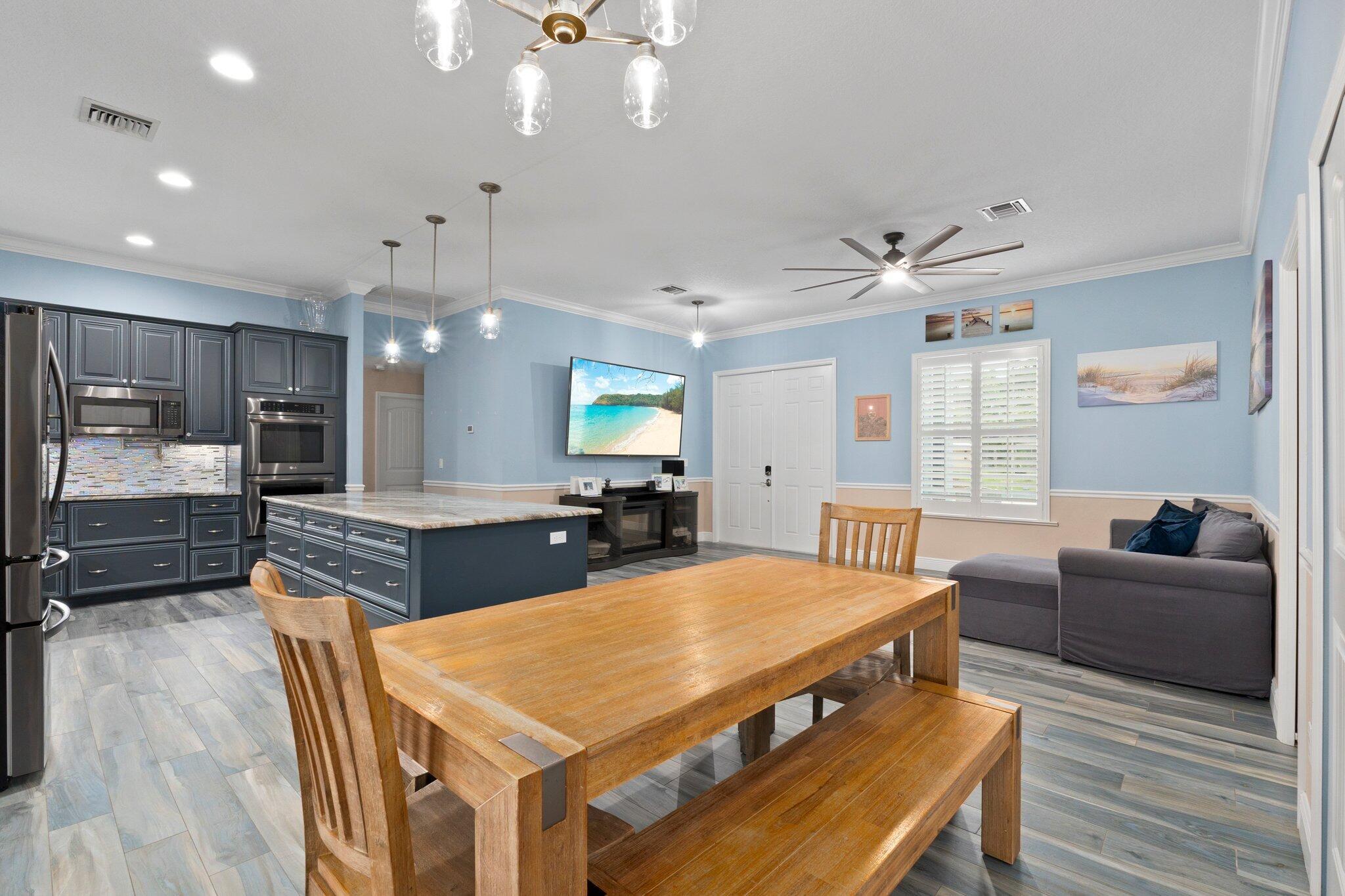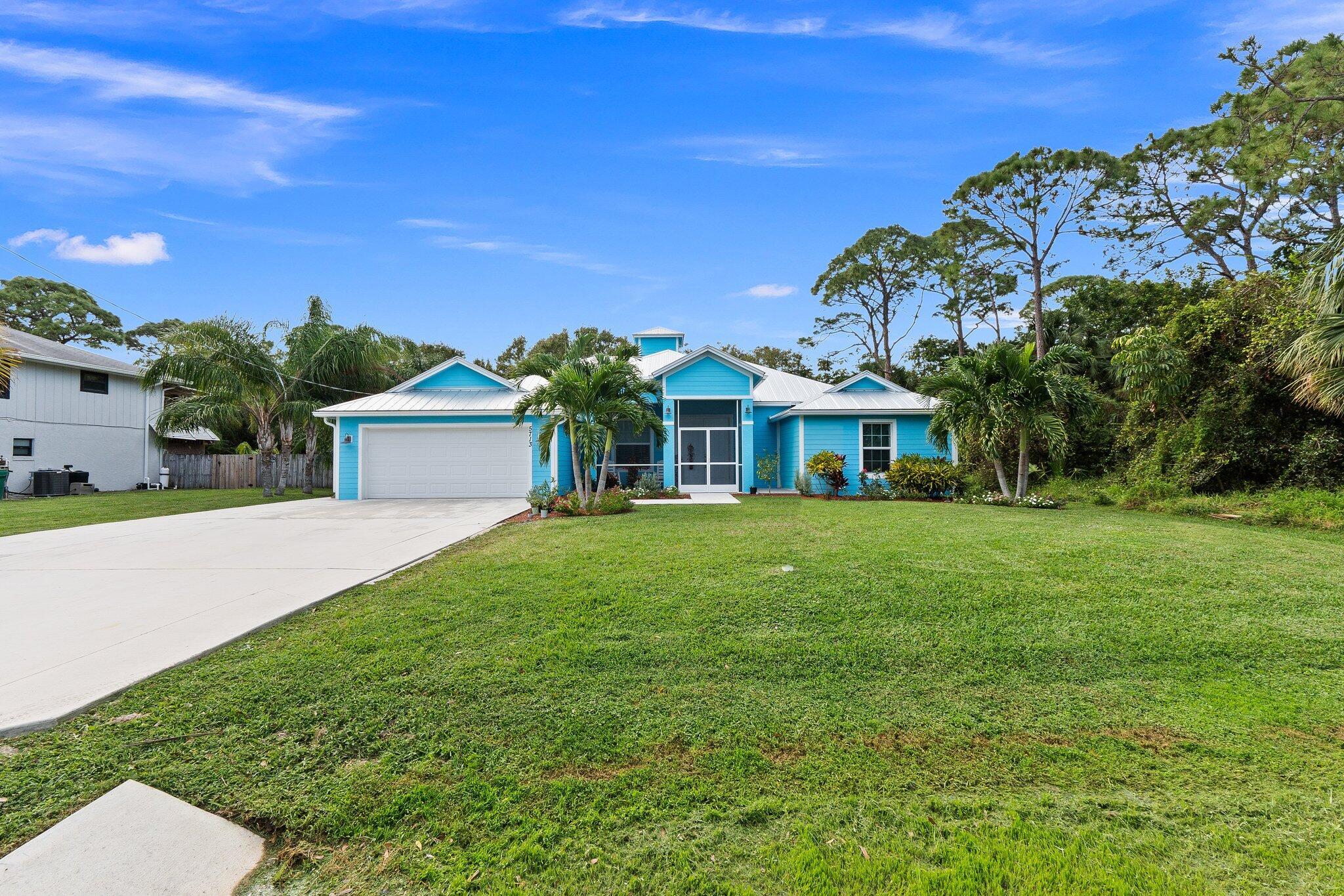 Stunning 2019 Custom-Built Family HomeProperty OverviewThis practically new, rare offering is a completely custom-built 2019 concrete block home featuring a wide-open, family-friendly floor plan. The residence boasts five spacious bedrooms and three full bathrooms, all thoughtfully situated on a generous quarter-acre lot.Exterior FeaturesDesigned for durability and safety, this meticulously crafted home is built to withstand storms with its solid concrete block construction, a robust metal roof, and hurricane impact windows and doors. The massive concrete driveway provides ample space for your boat or RV. Beyond the driveway, a spacious backyard awaits, fully sodded with Floratam/St. Augustine grass.