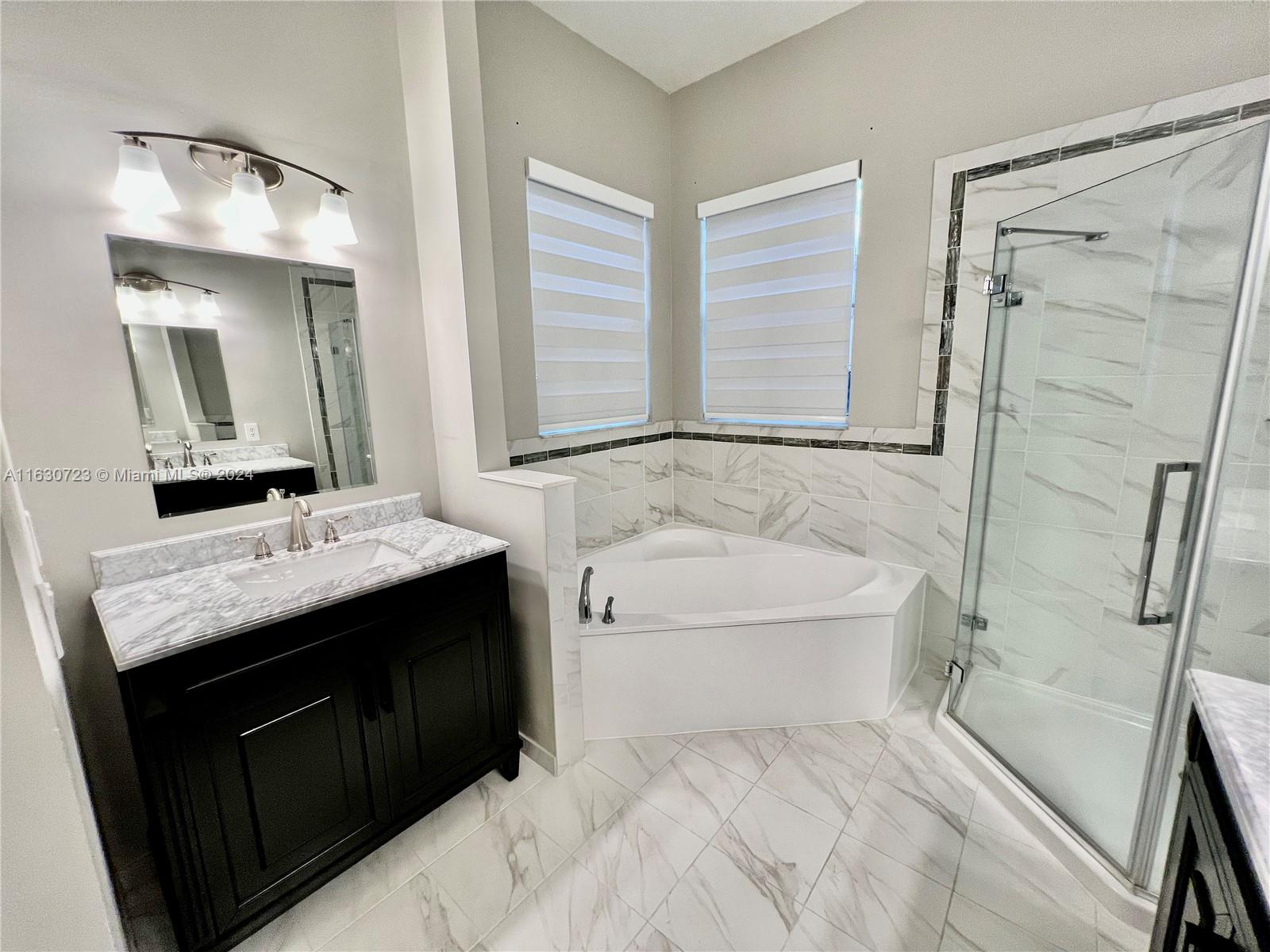 Spacious home in Vizcaya Gated Community, 4 bedroom, 2 bath, with a 2 car garage, over 2100 sq. ft. of living space ,enjoy the bright and airy open floor plan, perfect for both relaxation and entertaining. The large living room flows seamlessly into the dining area and kitchen, creating a welcoming atmosphere for gatherings, with plenty of updates as crown molding throughout, vaulted ceilings, new zebra blinds, spacious master bedroom, master bath features roman tub and shower, remodeled kitchen with granite counter top, covered terrace, and spacious backyard, close to everything, low HOA fee.