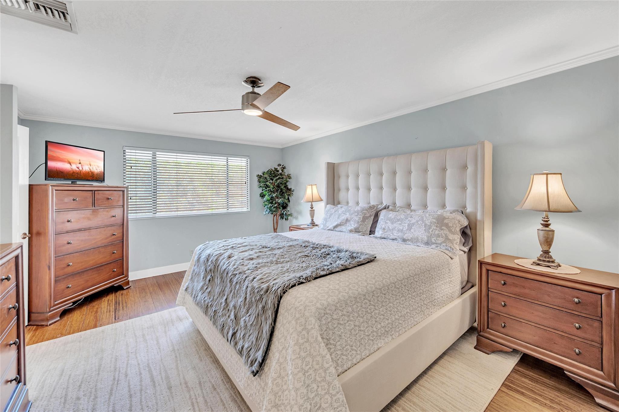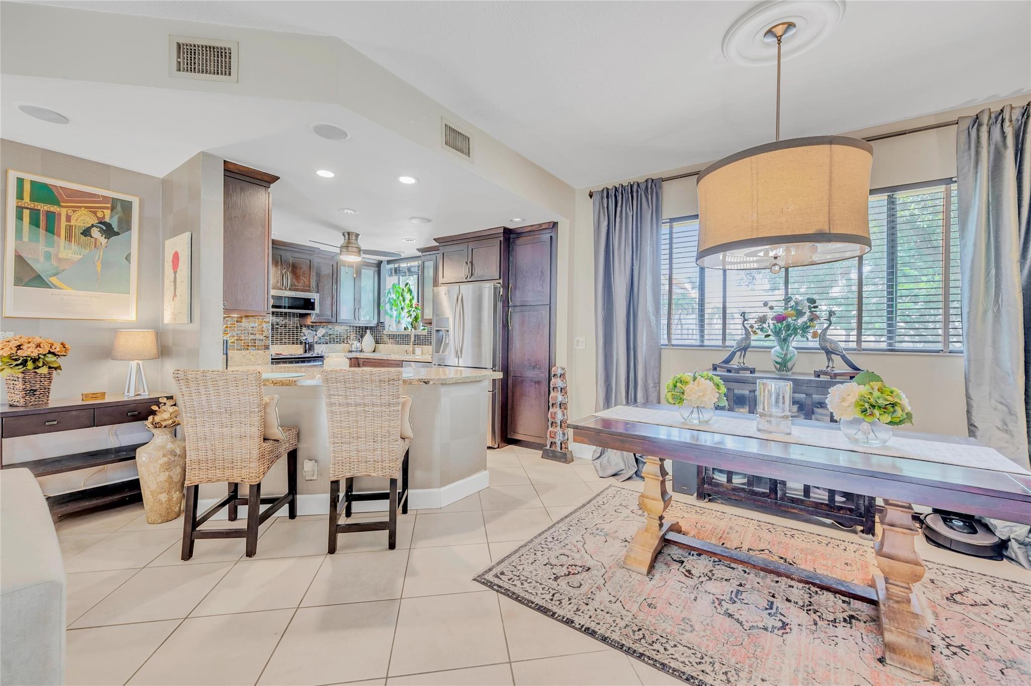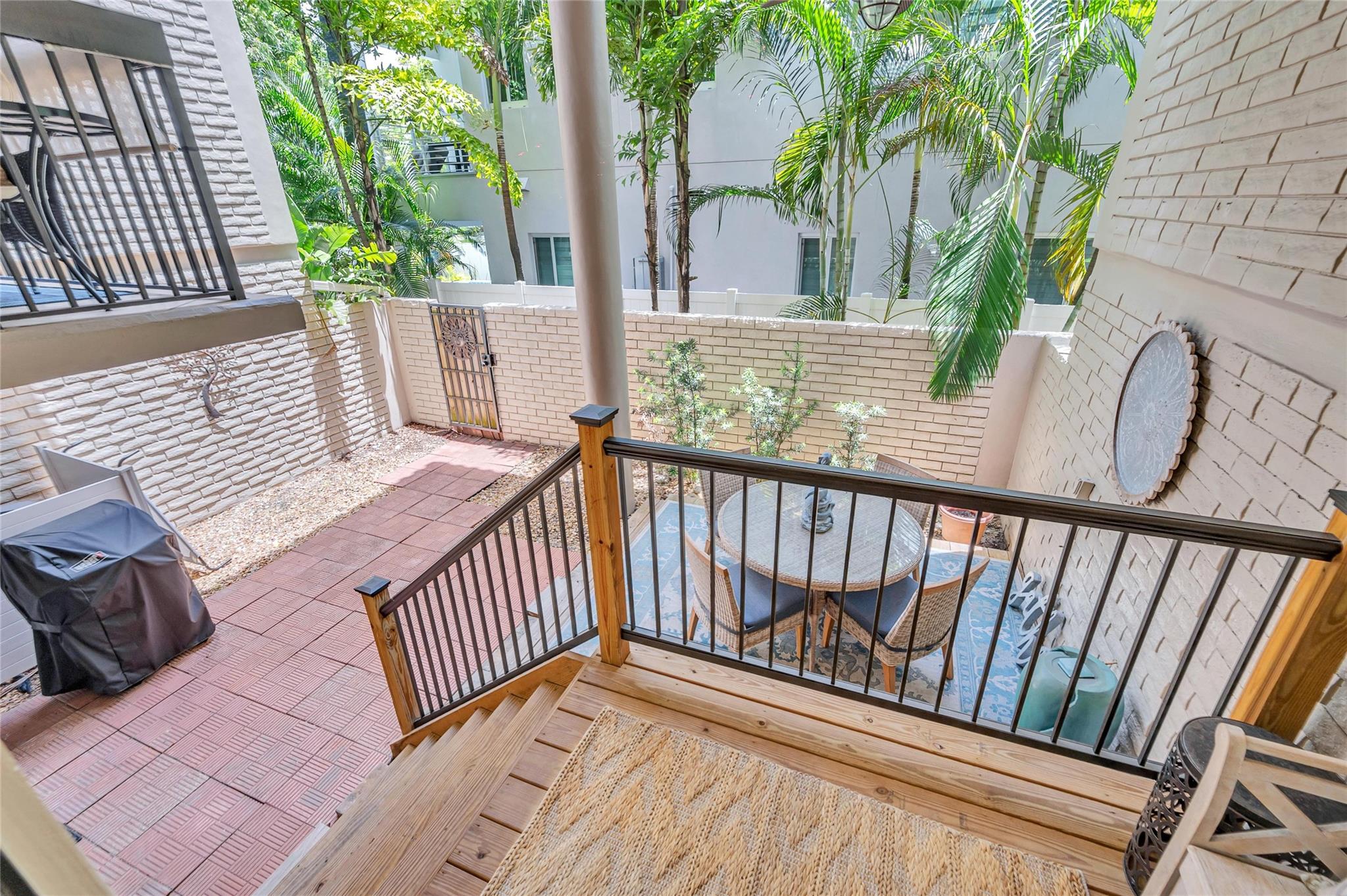 This fabulous, light-filled townhouse offers three bedrooms, its own driveway, and a two-car garage. Designer finishes adorn the spacious living-dining room and modern open kitchen, with a large window, pantry, and breakfast bar. Also, a renovated powder room and an open stairwell with skylights. Wide sliders open to a balcony overlooking a newer terraced deck and private walled courtyard. The first-floor foyer provides access to the wide garage and under-stair closet. The top floor features a spacious primary suite with a large shower and closet, plus a full-size laundry. A guest room, full guest bath, and potential 3rd bedroom, currently used as a den, are also on this level. The roof is recently new, and the home is next to Holiday Park, a library, and the Panthers' Iceplex.