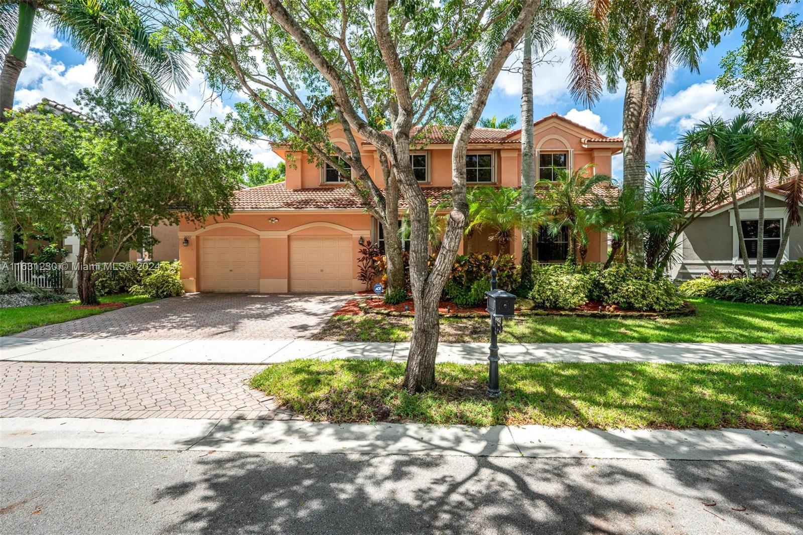 HUGE home in sought after Heron Ridge in "The Ridges". With almost 4000 sf of living area this is hard to find in Weston at this price. Featuring 5 bedroom PLUS fabulous primary suite with sitting area AND size-able private space that can be used for nursery, office or gym. Perfect layout with bedroom and full bath downstairs...great for multi generational living. Kitchen has wood cabinets and granite with added counter space. All living areas are BIG. Plenty of room for everyone! Very private lot with berm and trees (no neighbors in back) Sparkling screened pool and patio for entertaining. Gated community has pool, tennis, play and more. Zoned for excellent Weston schools includes Falcon Cove and Cypress Bay. Terrific location with easy access to Weston Road, shops and restaurants.