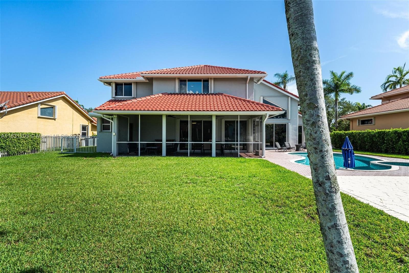 Huge 4/3.5 with bonus room, pool and lake. Nestled in the quaint, gated Sunset Isles section of Silver Lakes with just 39 homes. Fantastic floor plan ~ big rooms & foyer entry. First floor has ensuite bedroom, 1/2 bath & handy laundry room. Primary has dual sinks & separate shower & tub. Upgrades include beautiful porcelain tile downstairs, iron/wood stair railing and wood flooring on 2nd. Bonus room can be used as office or gym. Solid wood kitchen cabinetry with quartz & stainless featuring a cooking island with sink. Step outside to a true Florida paradise. Screened & covered patio leads to big green area, sparkling pool & pretty view of lake & fountain. Insurance discounts with Roof 2021, Accordion shutters & rated garage door. Zoned for terrific schools including West Broward High.