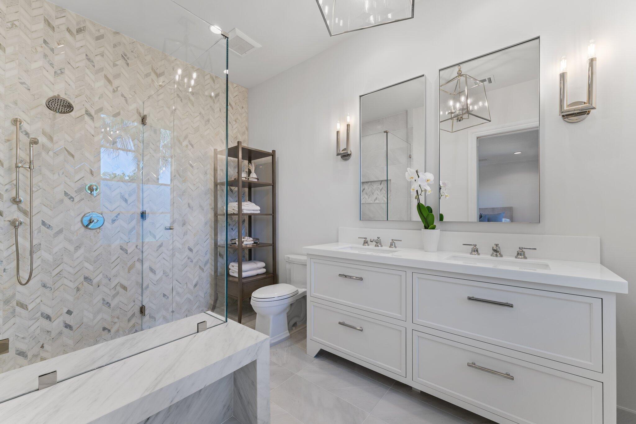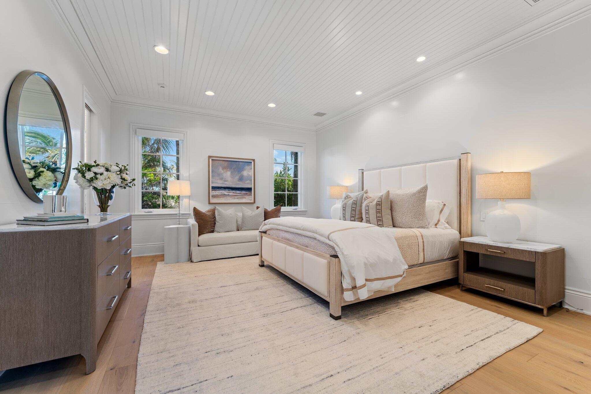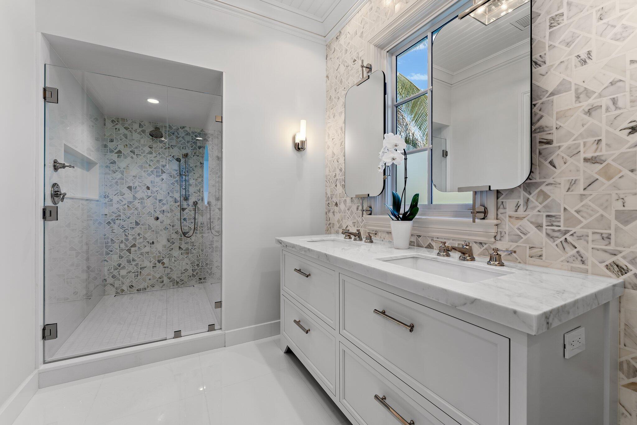 This oceanfront home in Lost Tree Village, just meticulously reimagined with no expense spared, offers unparalleled luxury. Ideal for multigenerations, the lushly landscaped property provides a secluded retreat with five bedrooms, each with an en suite bathroom, and a total of six and a half baths. The brand-new kitchen features a butler's pantry, dual dishwashers, a 36-inch Miele refrigerator, 36-inch Miele freezer, and a 60-inch Bluestar 6-burner range, to note. Ocean views from the expansive vaulted-ceiling living areas are breathtaking, as are the details in the custom cabinetry and beautiful oak floors throughout. The elegant Billiards Bar boasts custom lacquered cabinets and stunning brass shelving. Outside, a 75-foot pool with a sunken fire pit and hot tub is set amidst a spacious