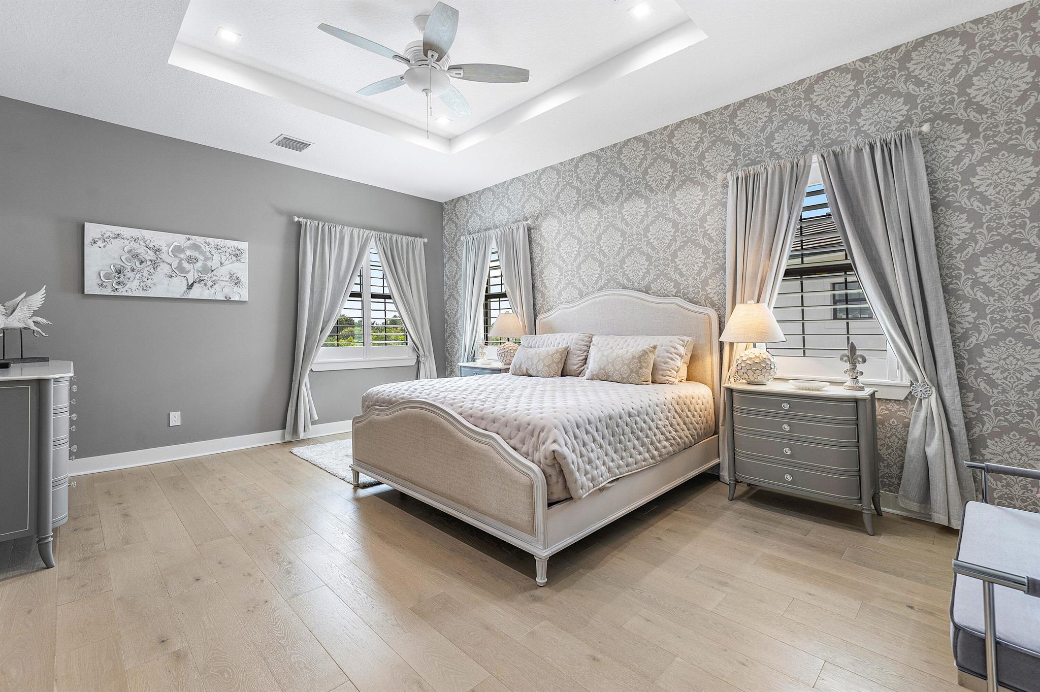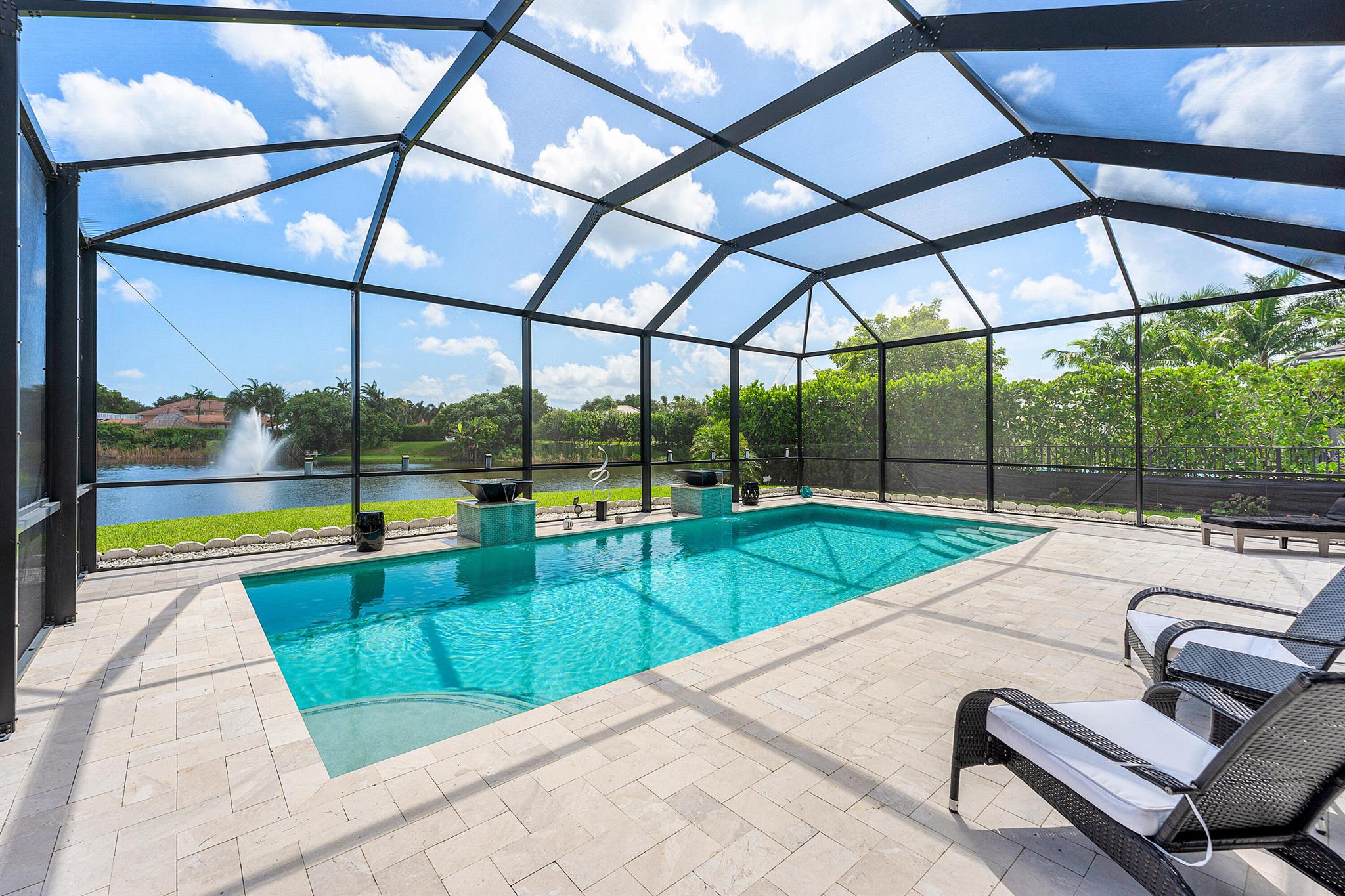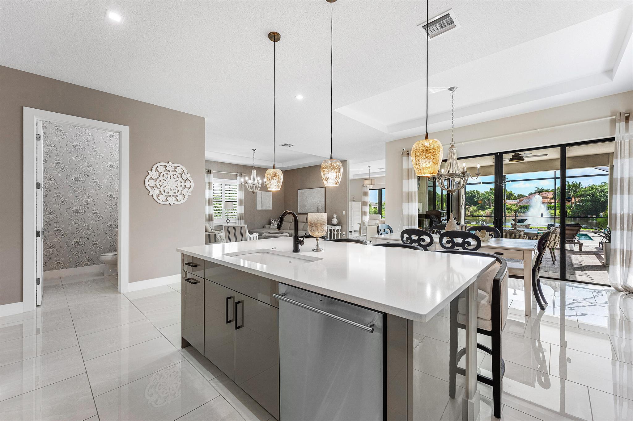 Welcome to the pinnacle of luxury living at The Banyan Cay Resort, a gated community where sophistication seamlessly blends with comfort. Nestled in this exclusive enclave is a meticulously crafted gem residence featuring the Grenada Floor plan, an open design layout that exudes elegance and functionality. This stunning home offers 3 bedrooms, 3.5 baths, and a 2-car garage, all complemented by a fully upgraded gourmet kitchen. The property stands out with one of the most premier water and fountain views, set on an ultra-large private lot. The custom saltwater heated pool with spa jets and a screened backyard provides a serene oasis for relaxation and entertainment. The spa-like primary suite is a true retreat, featuring two walk-in closets and white oak hardwood flooring throughout the...