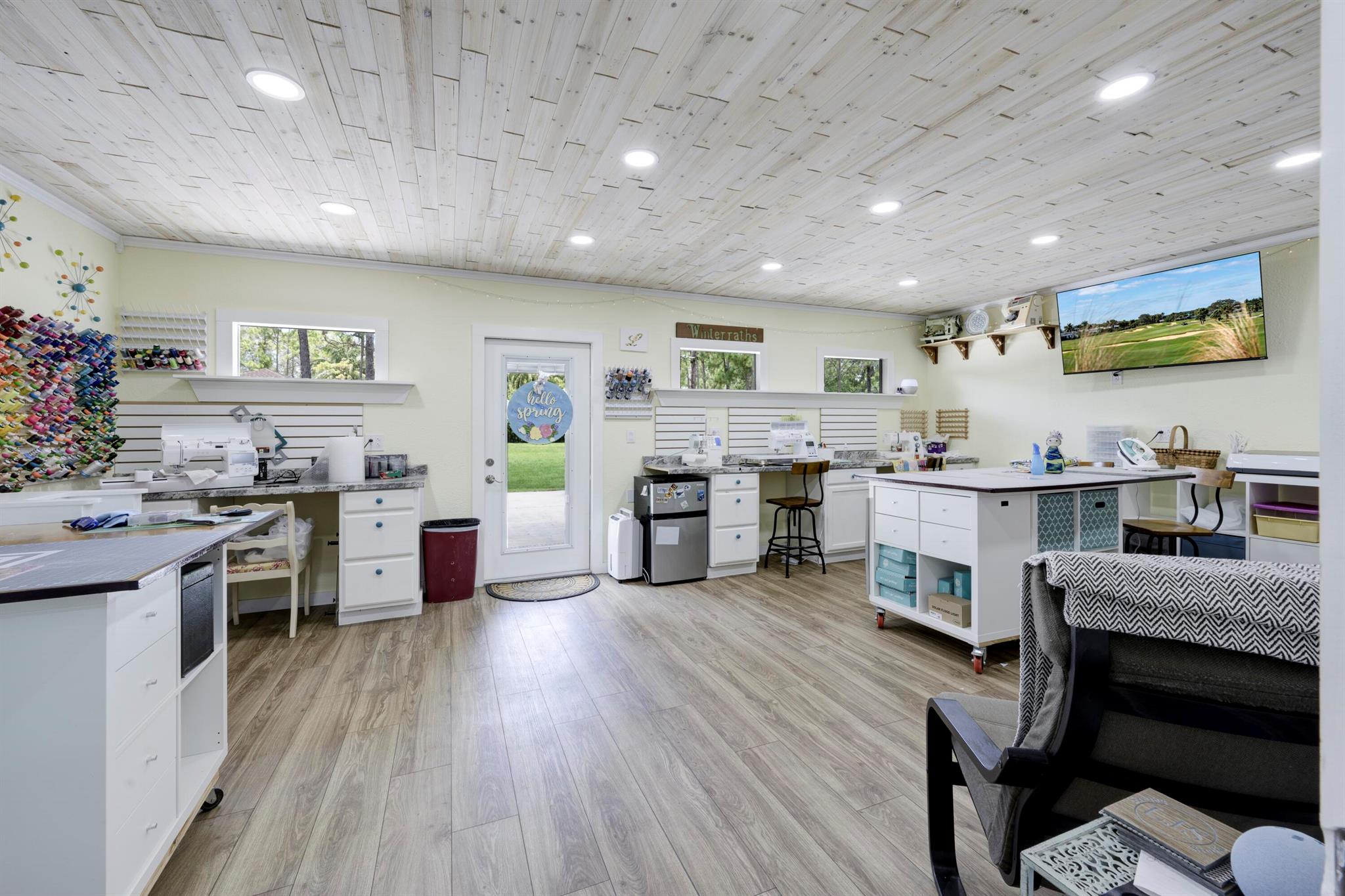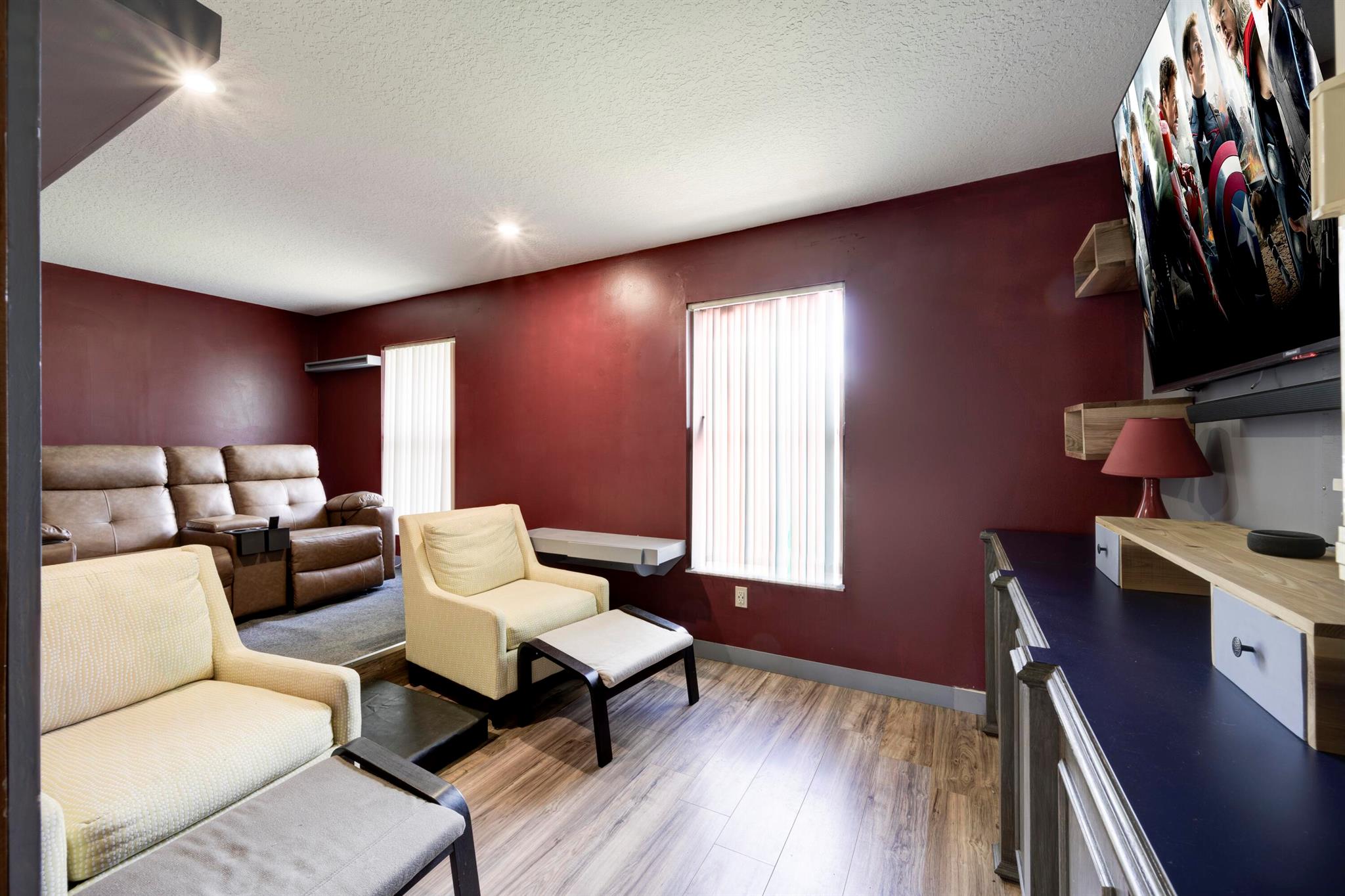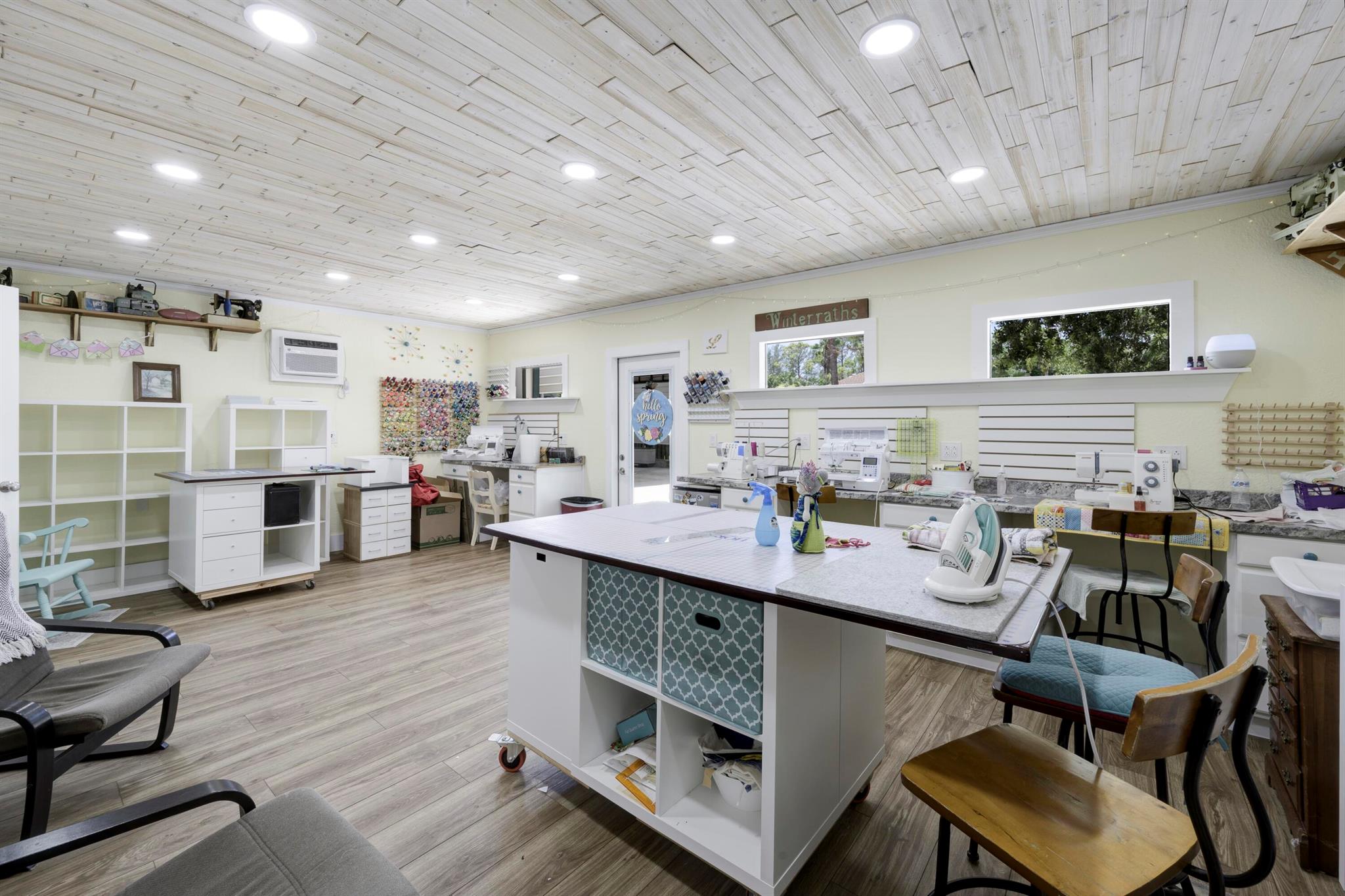 Discover your dream home with this ranch-style property, offering over an acre of versatile space and every amenity you could desire. This residence features four spacious bedrooms and 3 bathrooms, ensuring comfort and privacy for the entire family. At the heart of the home you can find the kitchen with open living to the family and formal dining room. A cozy movie room, perfect for family movie nights and entertainment, while an oversized sewing/ room offers endless possibilities for hobbies, projects, or additional living space. For those with a passion for craftsmanship or entrepreneurship, the impressive 900 sq/ft steel building workshop is a standout feature. This workshop is equipped with air conditioning, emergency lighting, a built-in vacuum/dust system for wood working