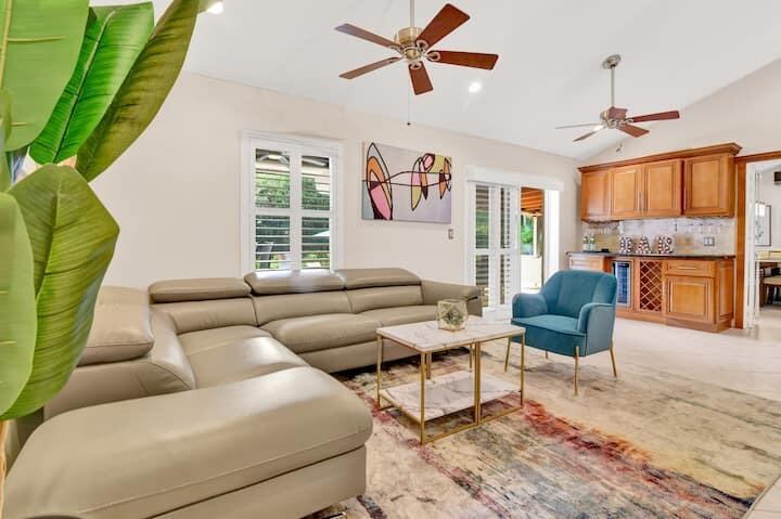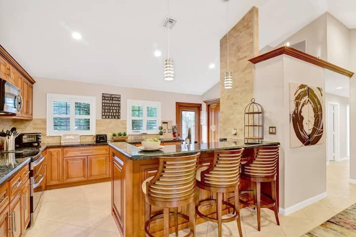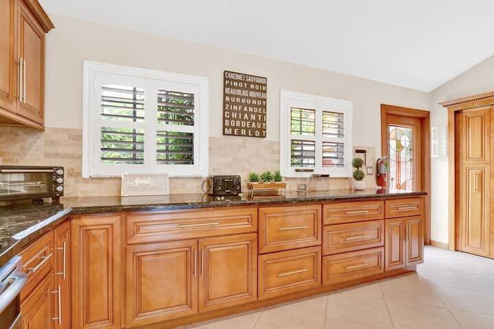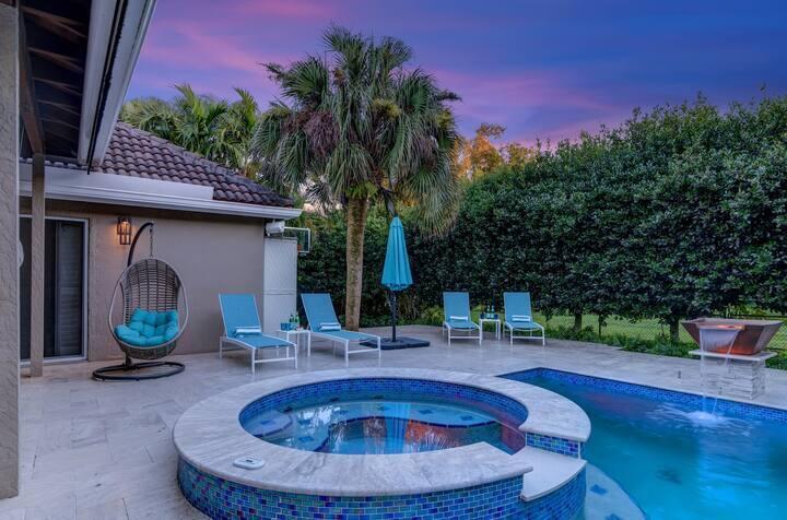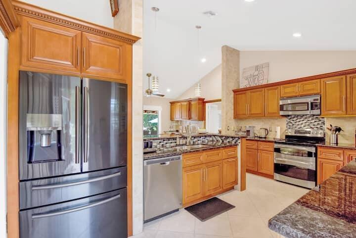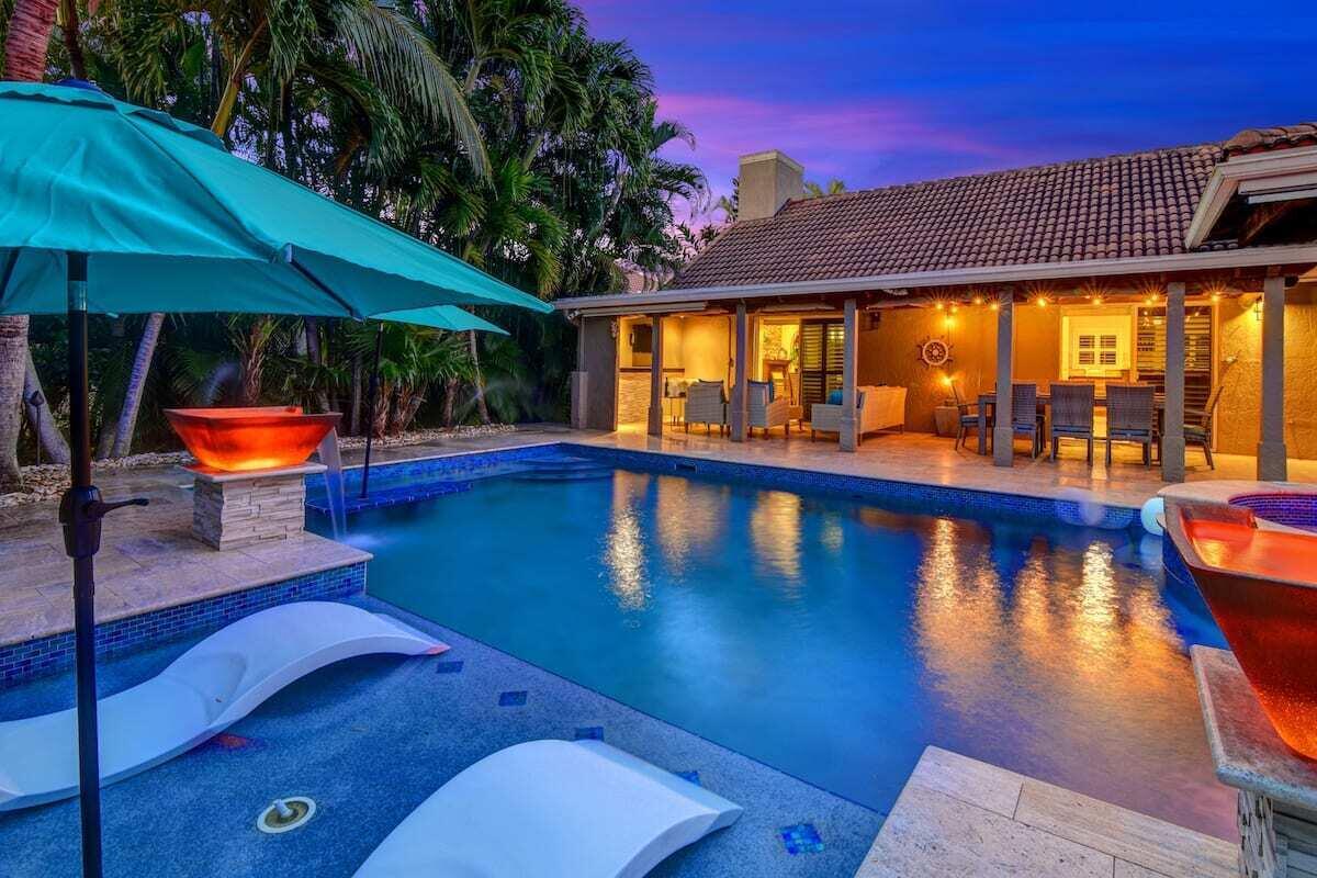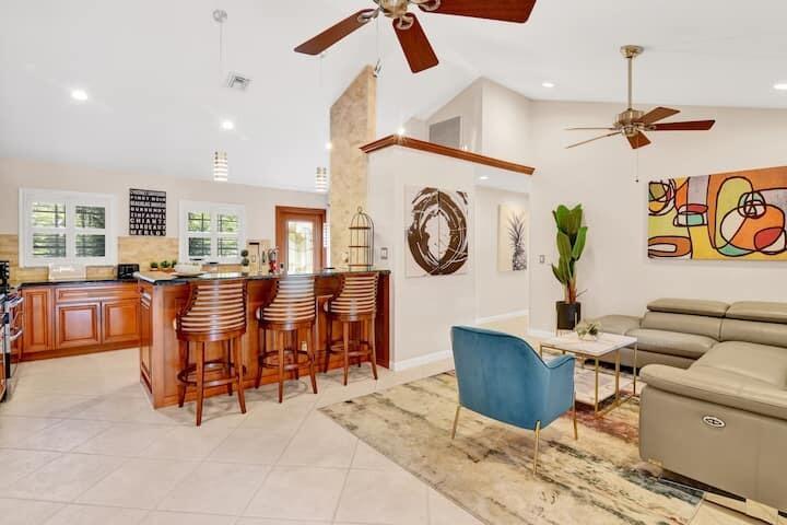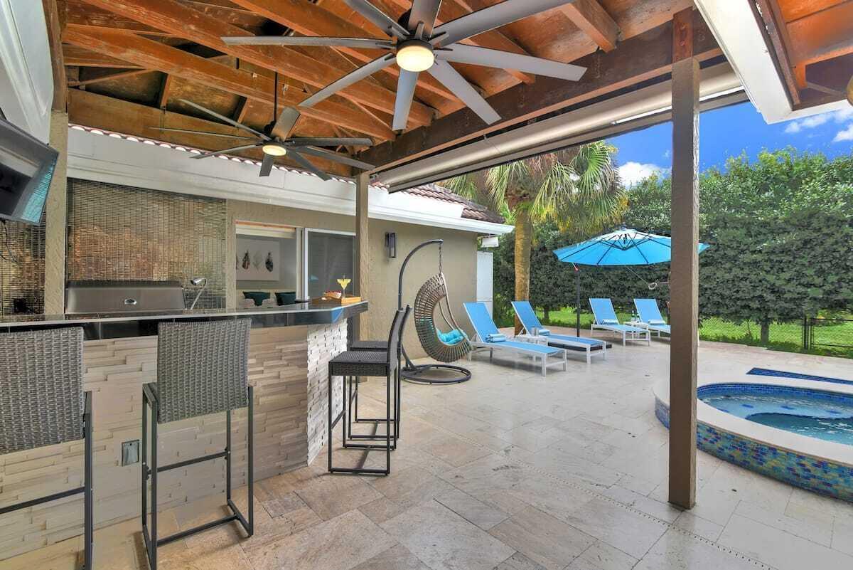 Grab your bathing suit and get ready to dive into this turnkey South Florida paradise in the hot-ticket Plantation Acres community! A grand driveway and lush landscaping say, ''Welcome home!'' to this meticulously maintained haven with bright, sunny interiors and a backyard that's practically begging for a party. The custom kitchen is a chef's dream, featuring wood cabinets, granite countertops, a breakfast bar, and a built-in hosting bar (because who doesn't love a good kitchen party?). The spacious master suite has a bathroom so luxurious, you'll feel like you're at a spa--complete with a shower and his-and-hers sinks.
