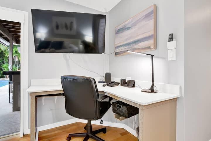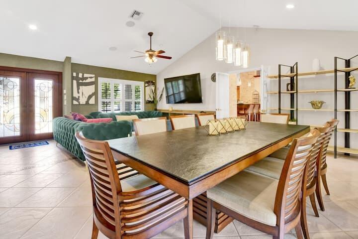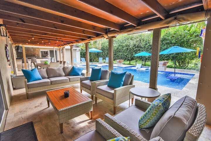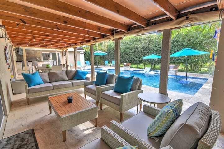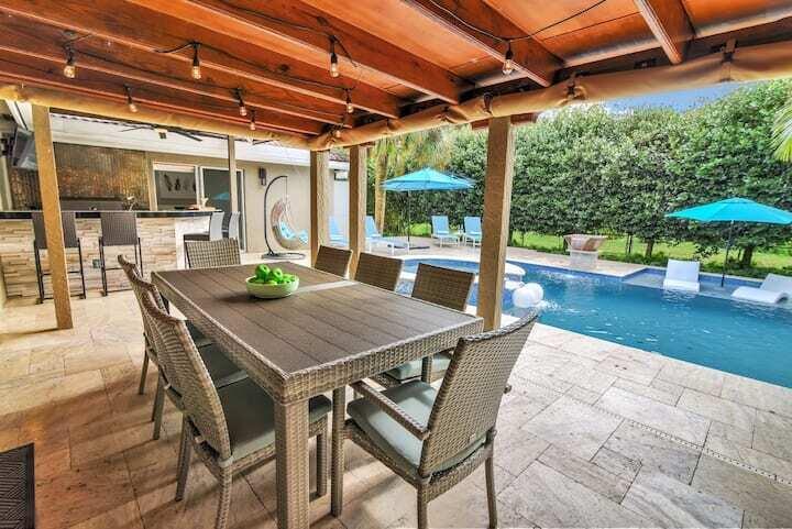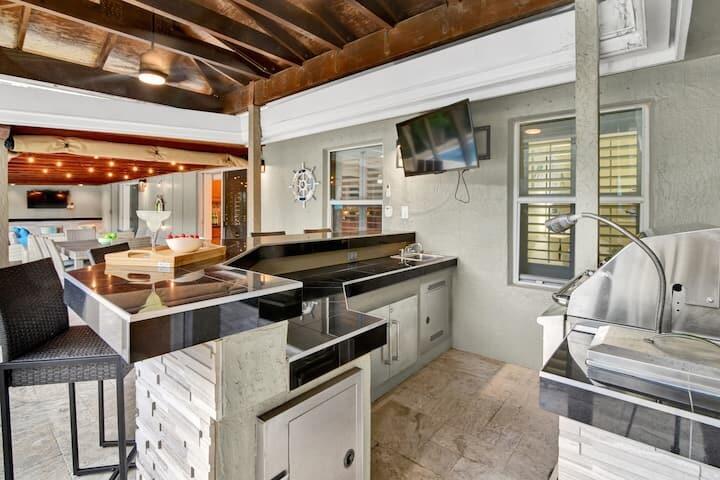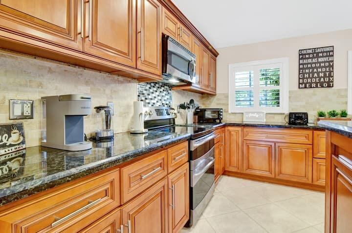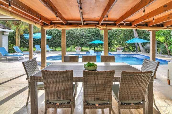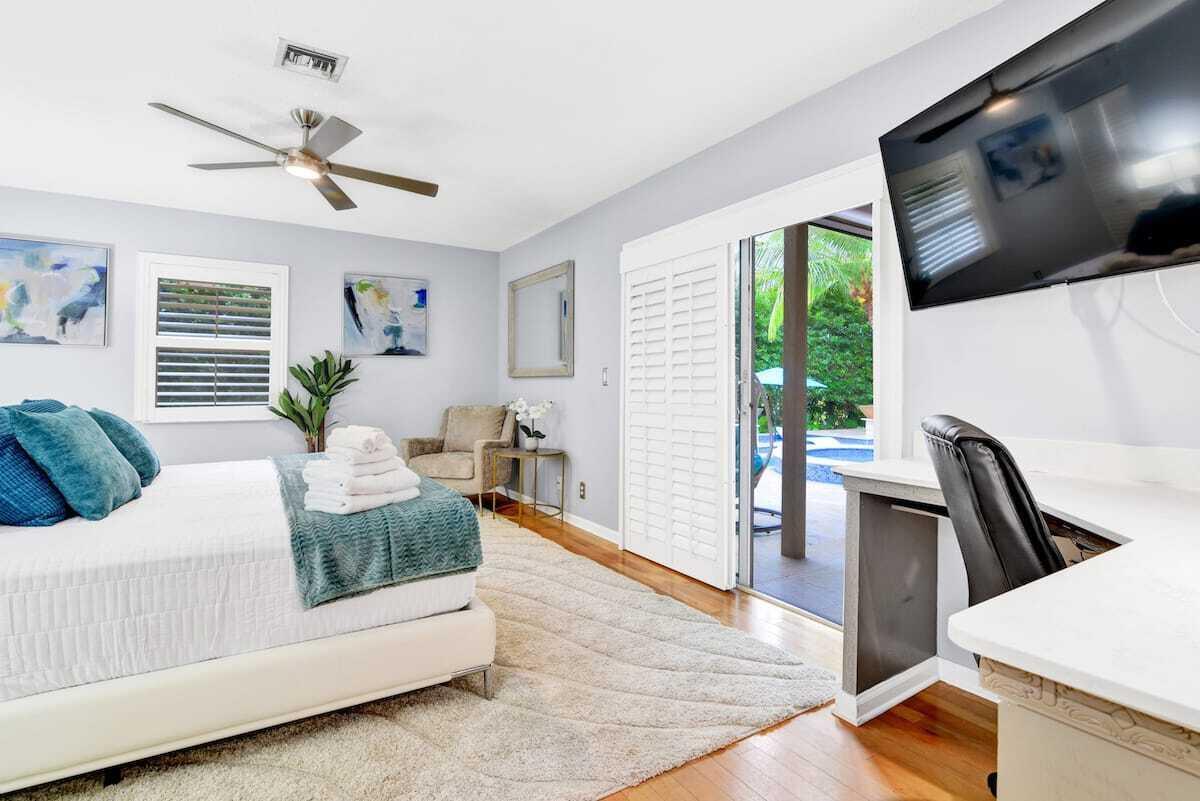 Grab your bathing suit and get ready to dive into this turnkey South Florida paradise in the hot-ticket Plantation Acres community! A grand driveway and lush landscaping say, ''Welcome home!'' to this meticulously maintained haven with bright, sunny interiors and a backyard that's practically begging for a party. The custom kitchen is a chef's dream, featuring wood cabinets, granite countertops, a breakfast bar, and a built-in hosting bar (because who doesn't love a good kitchen party?). The spacious master suite has a bathroom so luxurious, you'll feel like you're at a spa--complete with a shower and his-and-hers sinks.