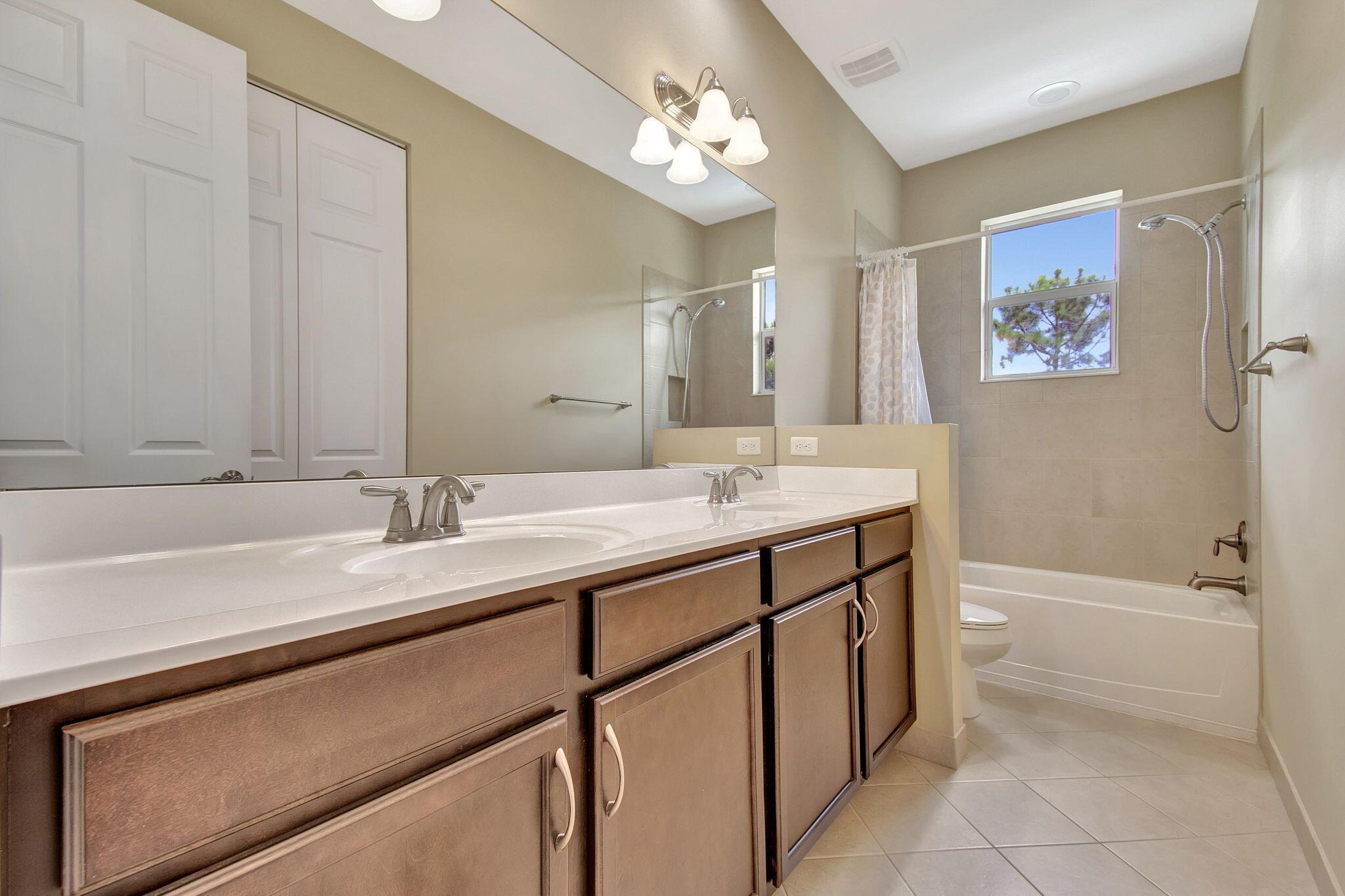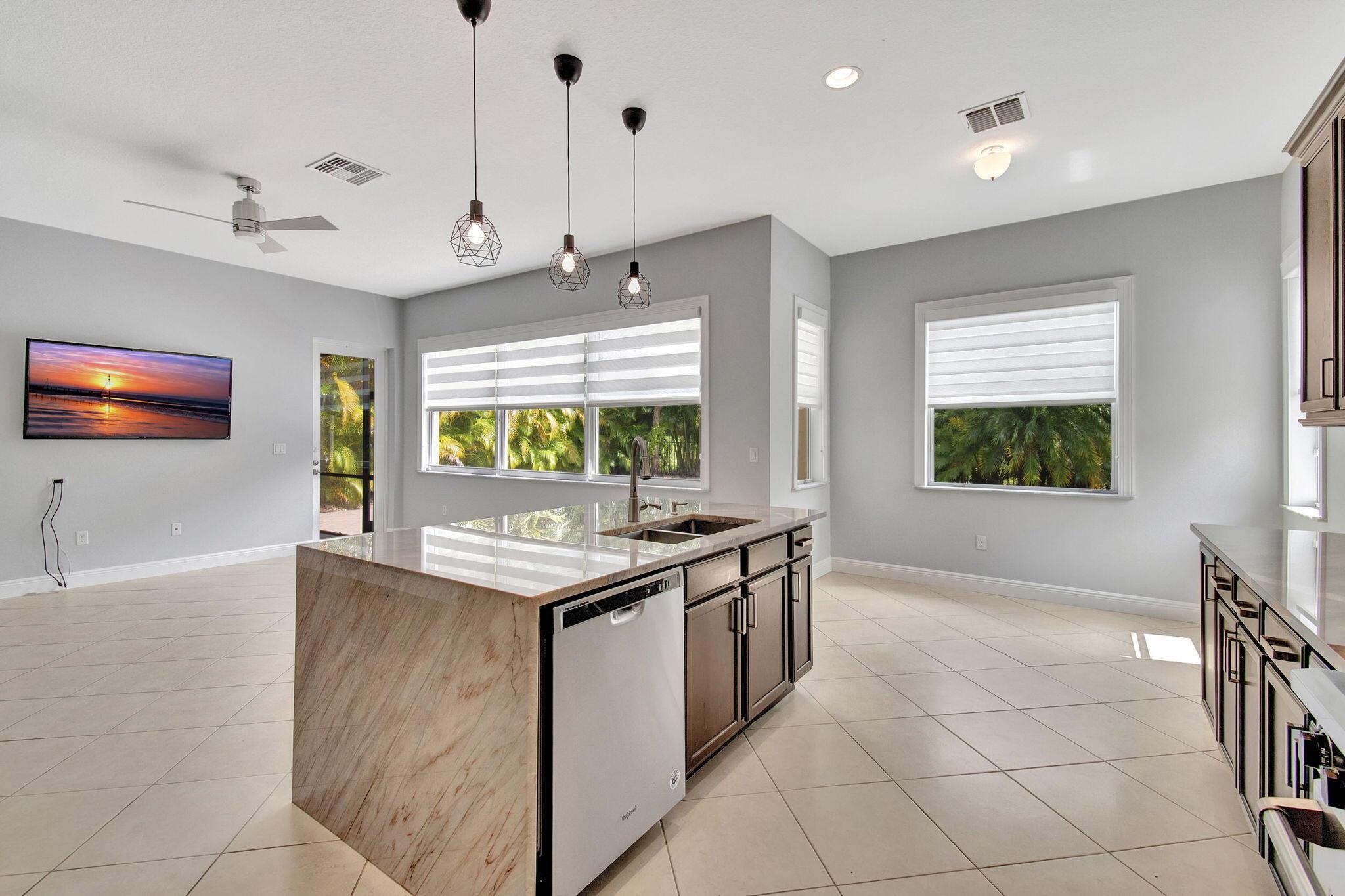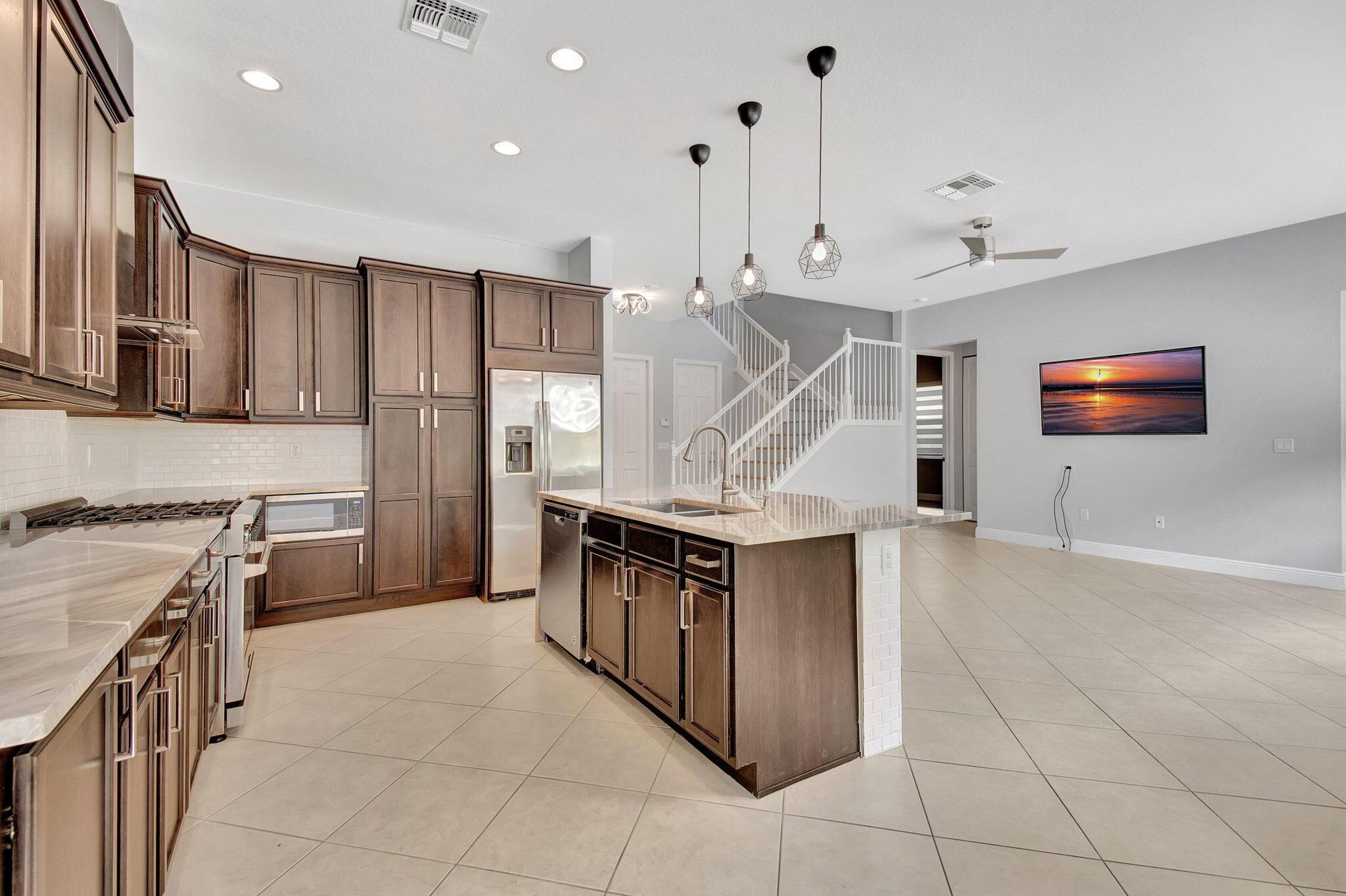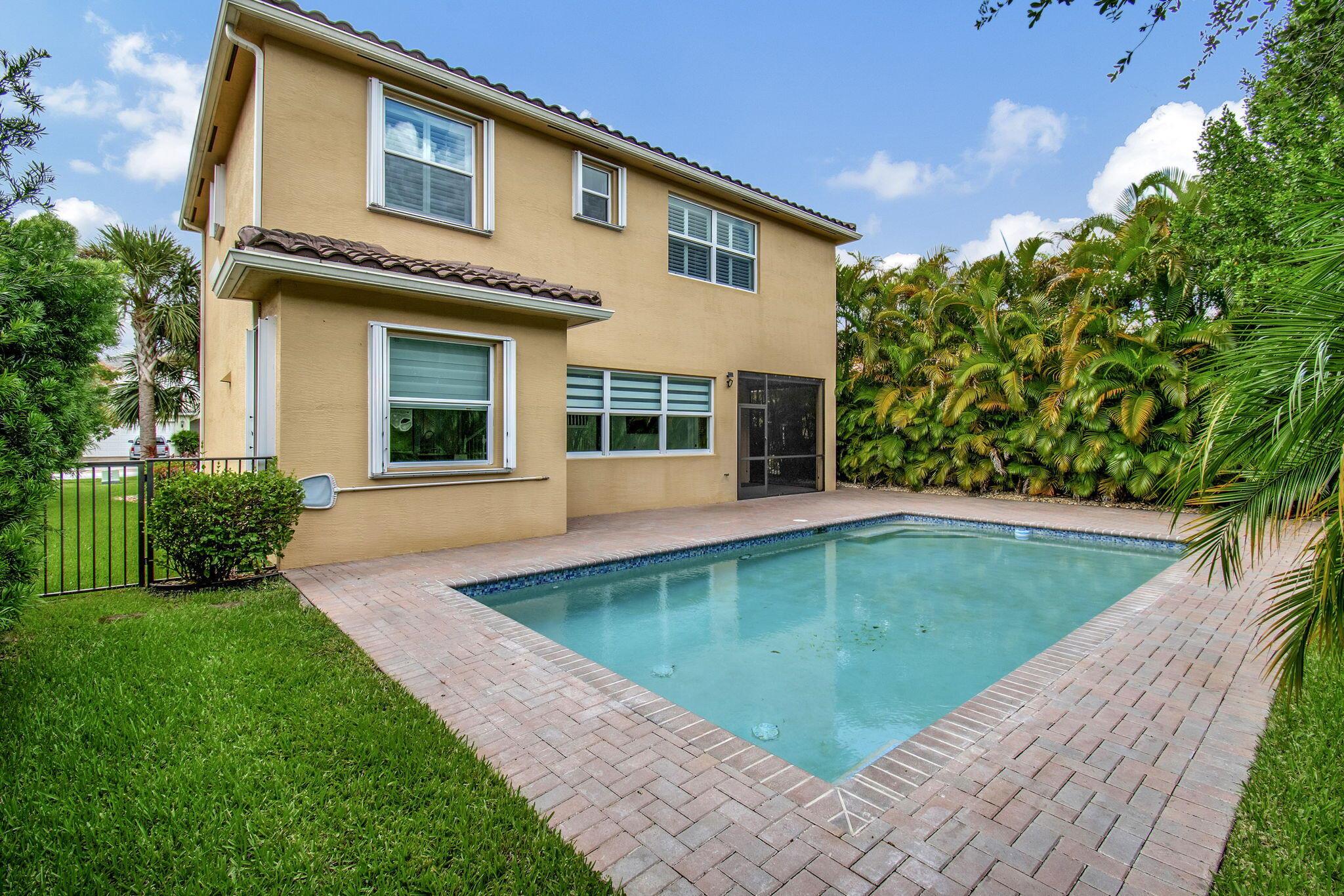 Beautiful 3 bdrm/3 bath home with a loft and pool, located on a private, fenced lot in the desirable gated community of PortoSol. The main level features an open concept living area with high ceilings, an upgraded kitchen with custom cabinets (including pullout shelves, mixer storage and stand), quartzite counters, a large island with a waterfall edge, undermount cabinet and island lighting, a gas range, and SS appliances. The first-floor guest bdrm has ceramic tile floors and a custom bathroom finished in all marble. The unique stairs feature a marble inlay. The second floor has LVP flooring, a sep laundry room, and a master bathroom with his/her vanities and a spacious walk-in closet. Privacy galore in the backyard w/large sparkling pool. 2 car garage is wired for generator, too!