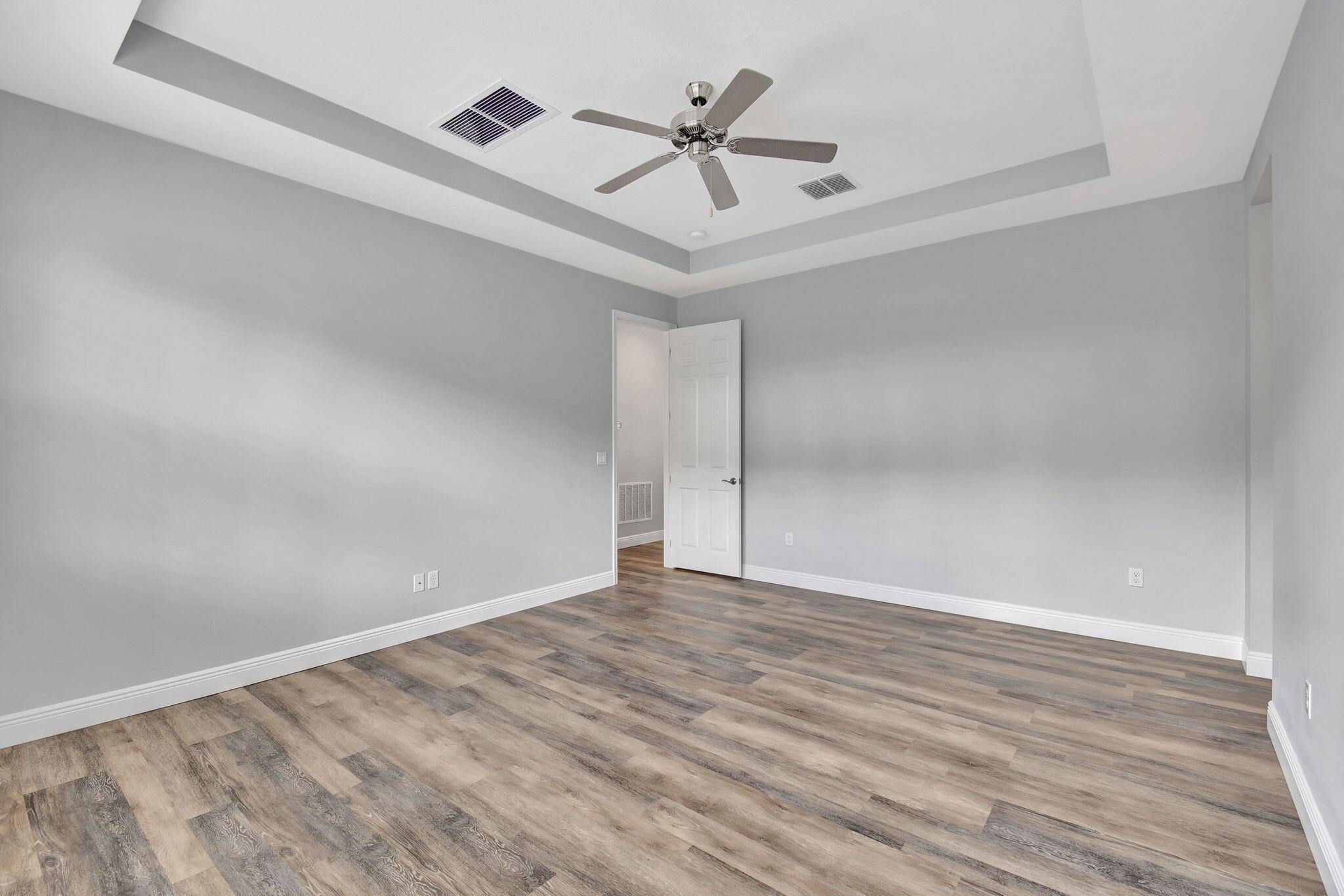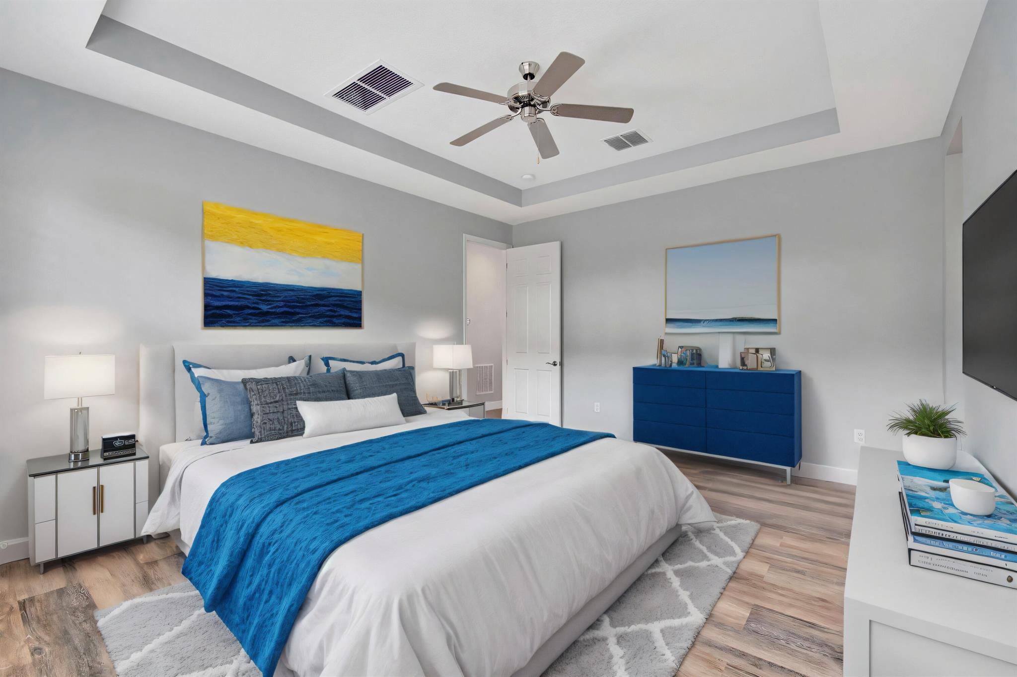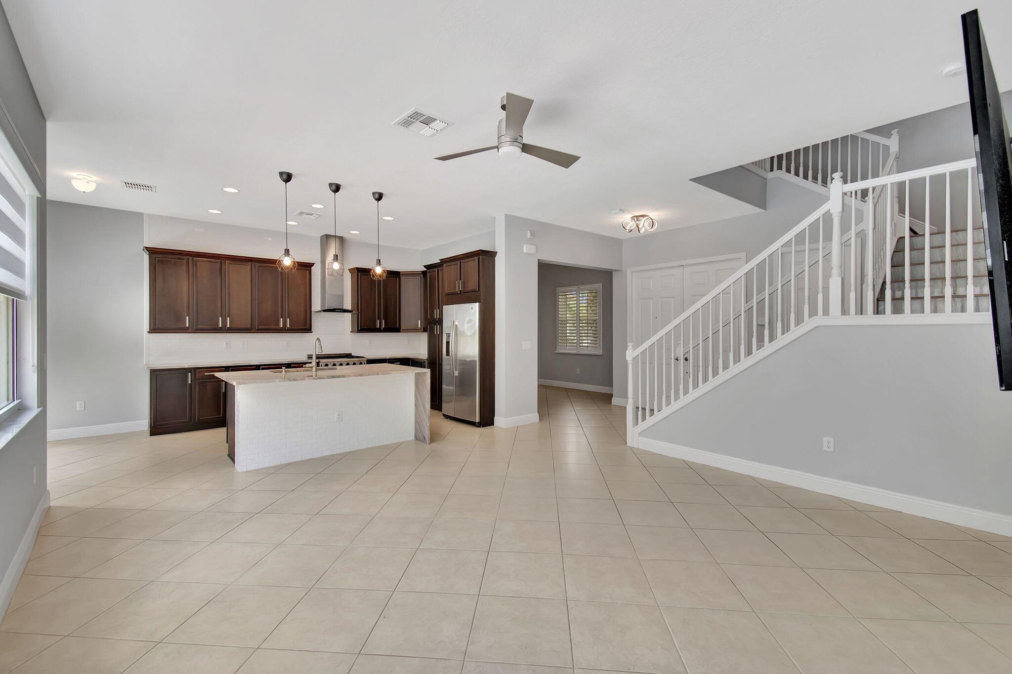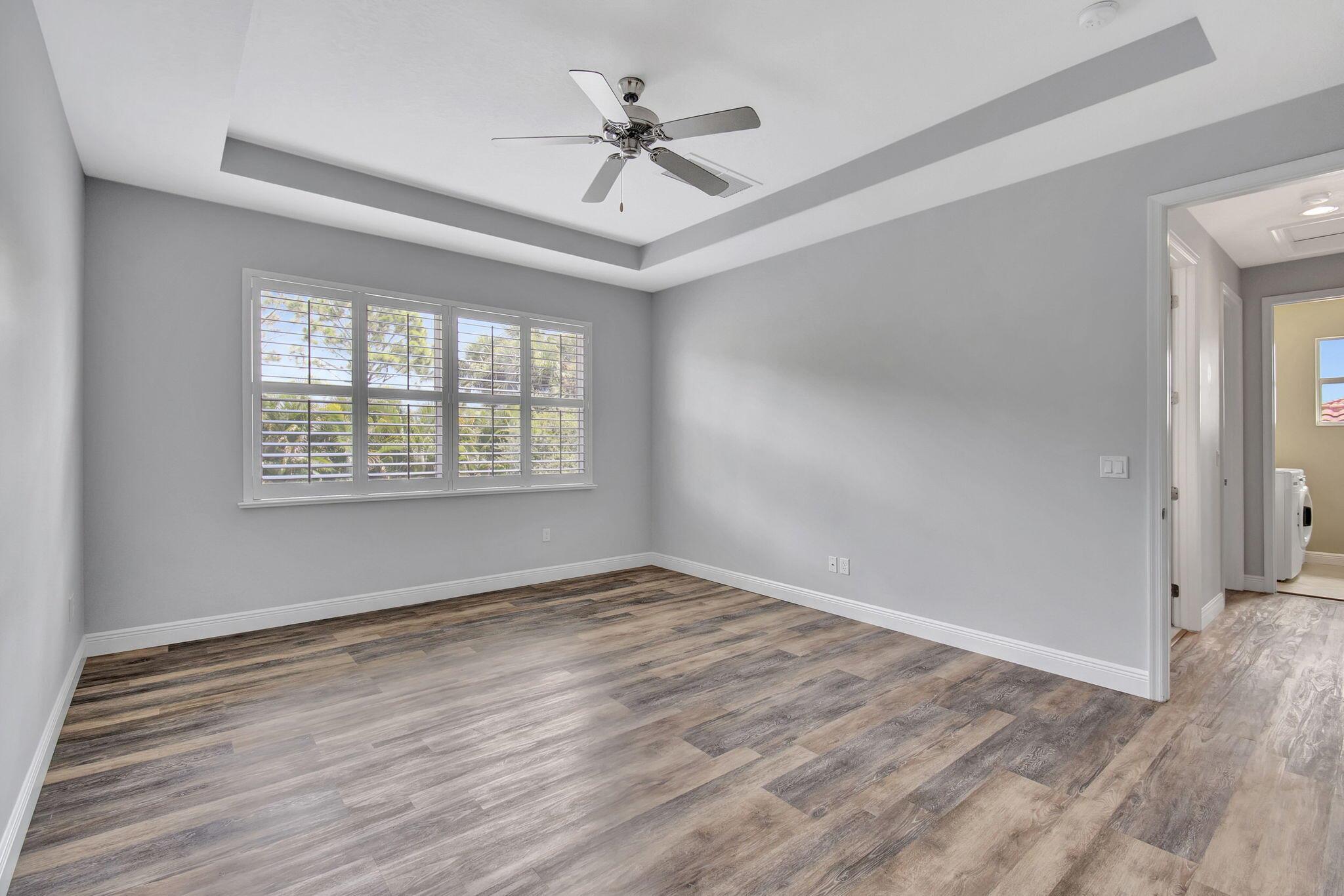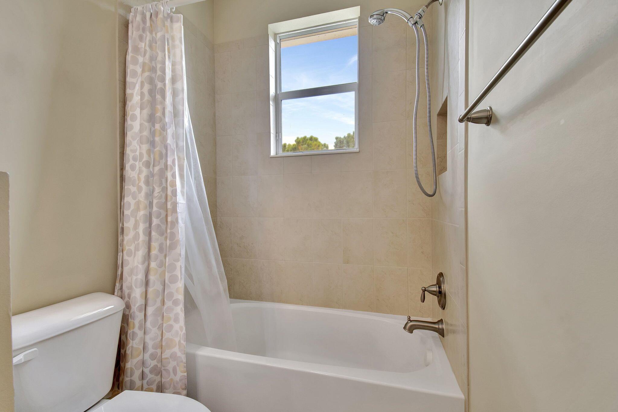 Beautiful 3 bdrm/3 bath home with a loft and pool, located on a private, fenced lot in the desirable gated community of PortoSol. The main level features an open concept living area with high ceilings, an upgraded kitchen with custom cabinets (including pullout shelves, mixer storage and stand), quartzite counters, a large island with a waterfall edge, undermount cabinet and island lighting, a gas range, and SS appliances. The first-floor guest bdrm has ceramic tile floors and a custom bathroom finished in all marble. The unique stairs feature a marble inlay. The second floor has LVP flooring, a sep laundry room, and a master bathroom with his/her vanities and a spacious walk-in closet. Privacy galore in the backyard w/large sparkling pool. 2 car garage is wired for generator, too!