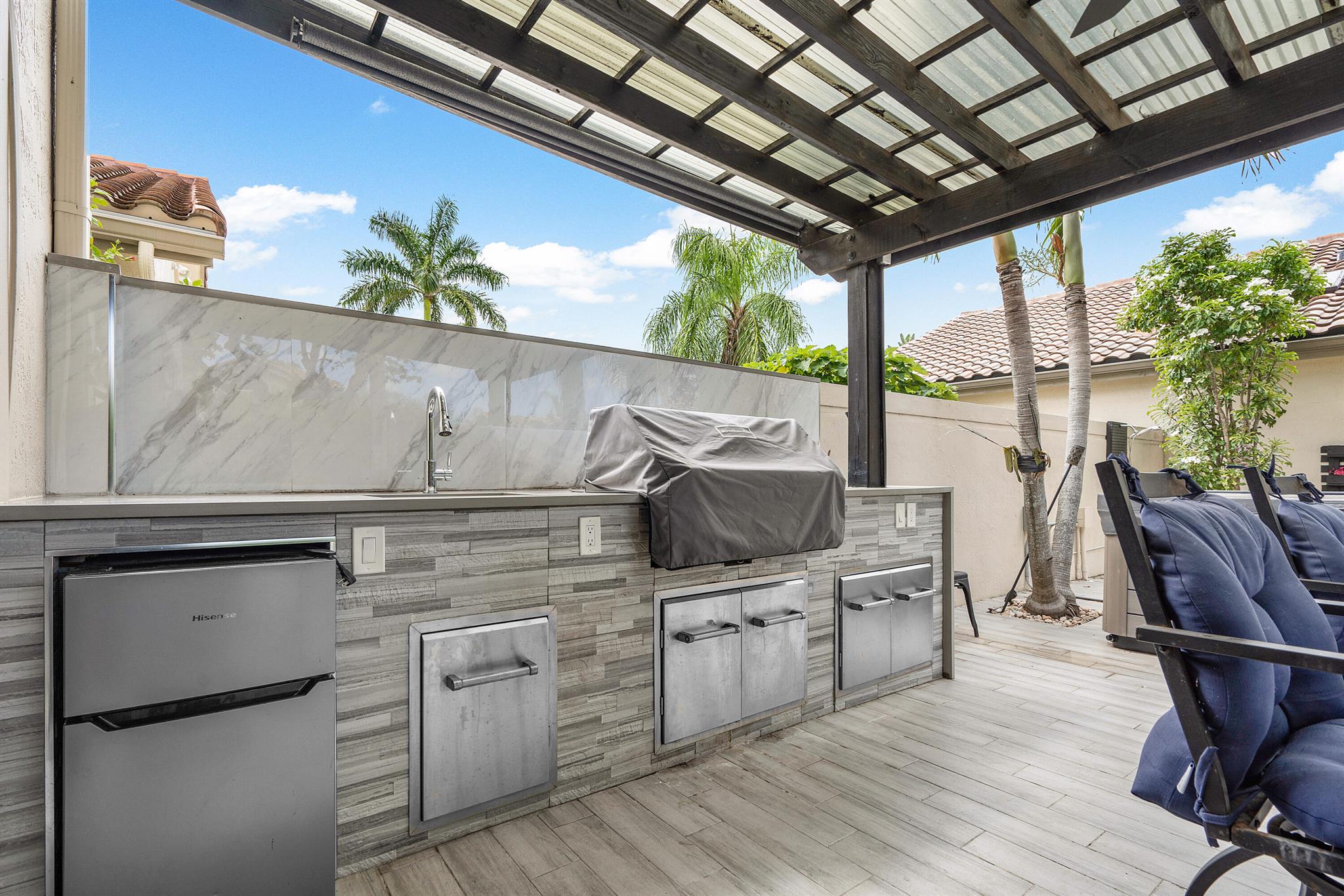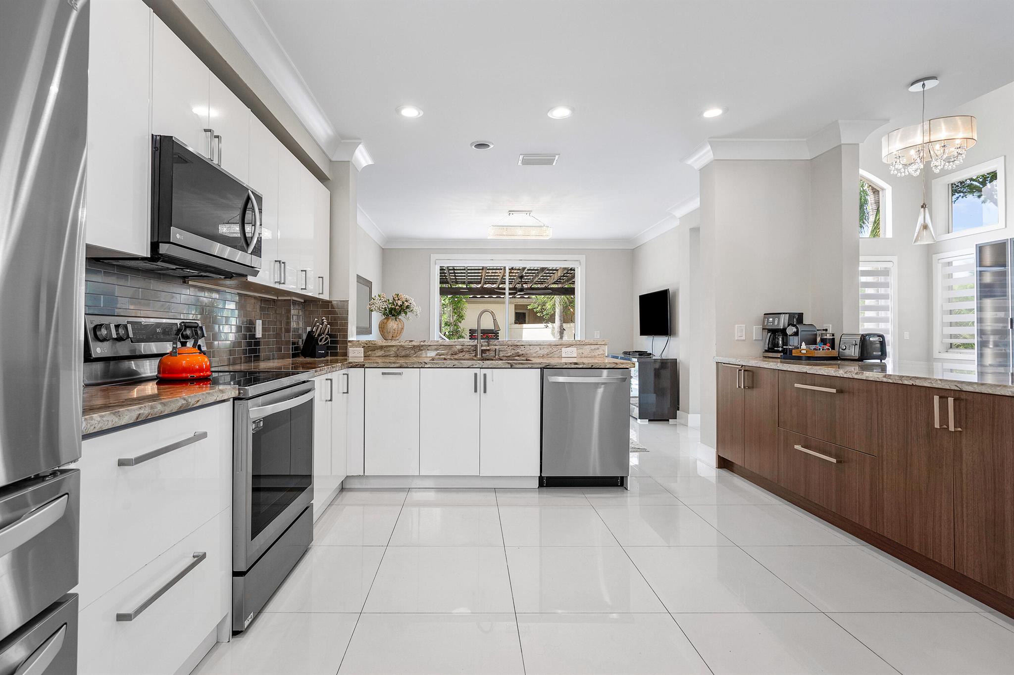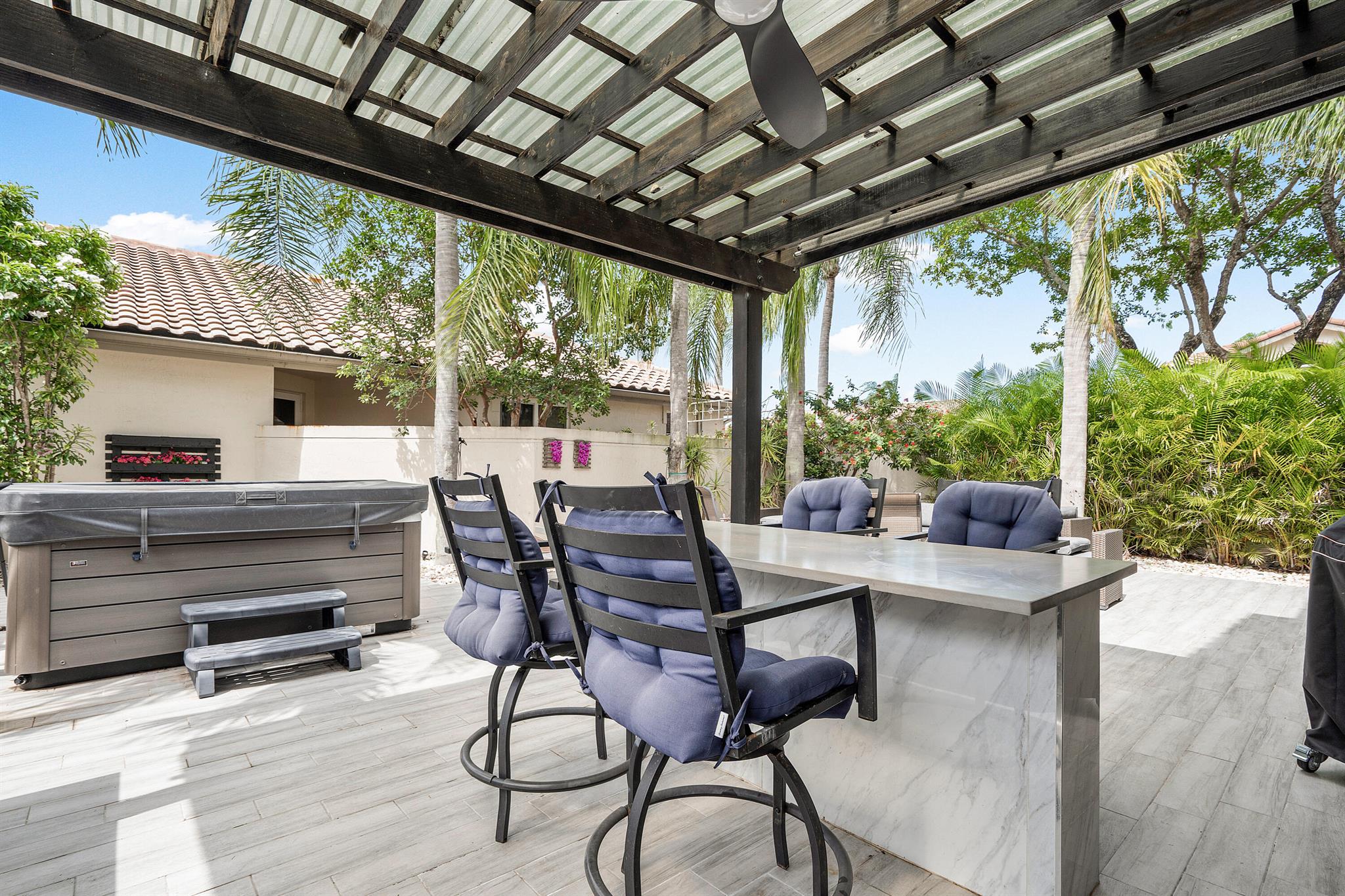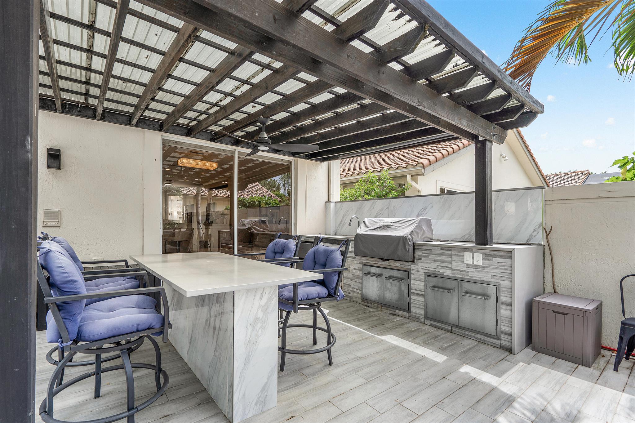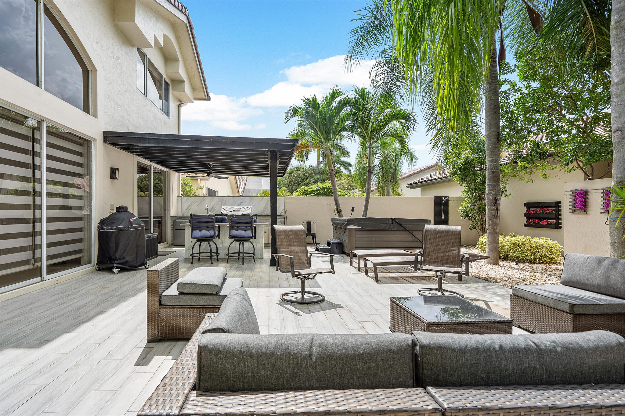 Completely renovated single family home in Broken Sound Country Club with new Roof. This 4 bedroom/4.5 bath home has been totally updated! It is a unique opportunity to get a 4 bedroom home within the main club gates at under $1 million. Tons of windows and high ceilings make it incredibly bright. ALL BEDROOMS ARE ENSUITE including a bedroom/bath on the main level. Upstairs offers a split bedroom plan. Incredibly well maintained with New Roof 2023. The stunning kitchen has been opened up to the family room, with new cabinetry, granite counter tops and stainless steel appliances. All new tile and wood flooring throughout. Amazing outdoor tropical oasis with new outdoor kitchen and pergola. Broken Sound offers a newly renovated